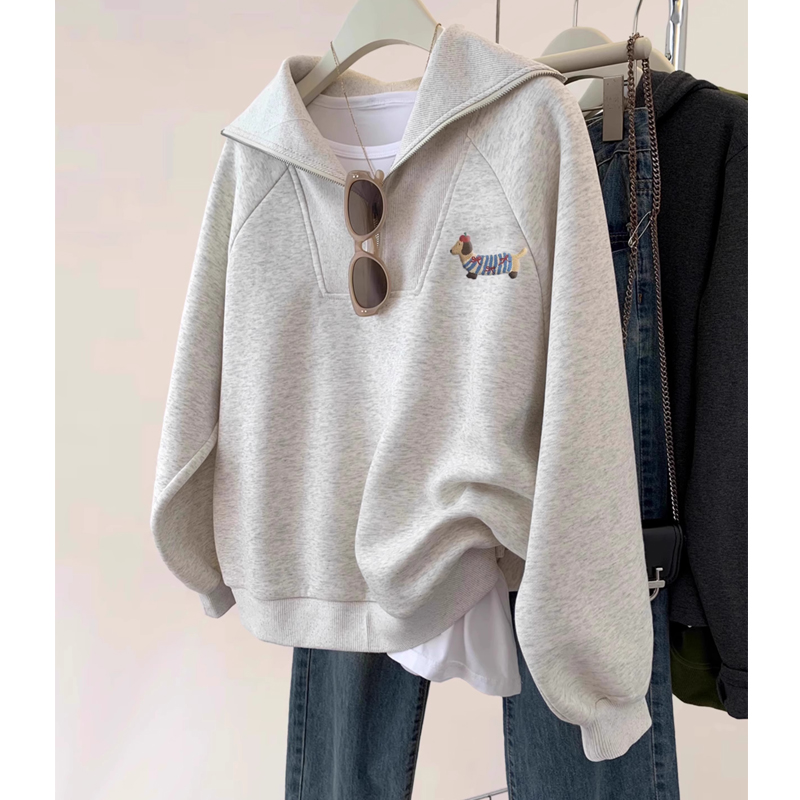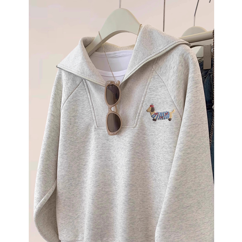 Extra Large 150.00kg Advanced Sense Lapel Half Zipper Cartoon Puppy Hoodie Women Autumn and Winter Idle Style Hoodless Top