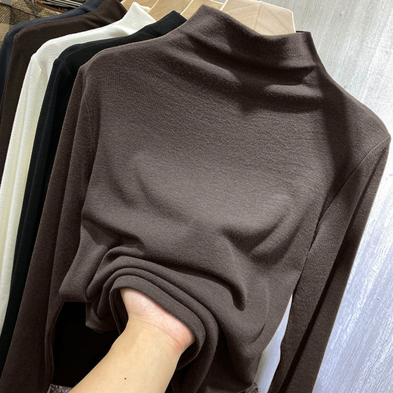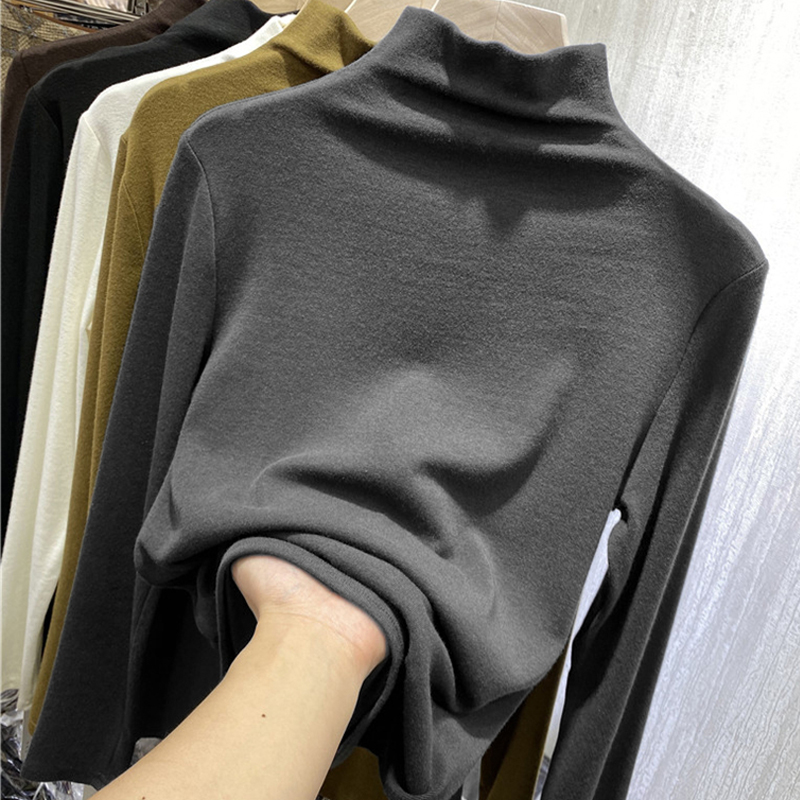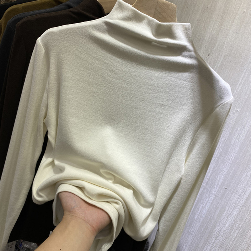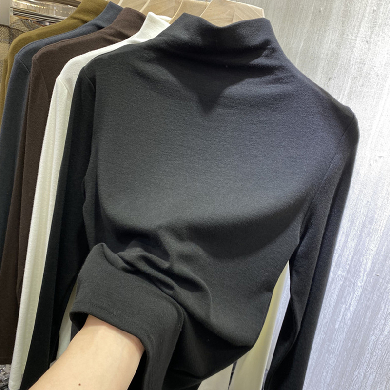 Extra Large Size 1.00 Kg-150.00 kg Dralon Half-High Collar Long Sleeves T-shirt Female Plus Size Ladies Inner Wear Bandage Dress Slim Looking High Elastic Bottoming Shirt Winter