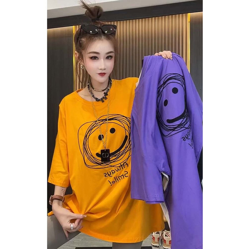 Extra Large Size 1.00 Kg-150.00 kg Fashion Print Letter Short Sleeve T-Shirt Female Plus Size Ladies Summer Orange Slim Fit Versatile Top Tide