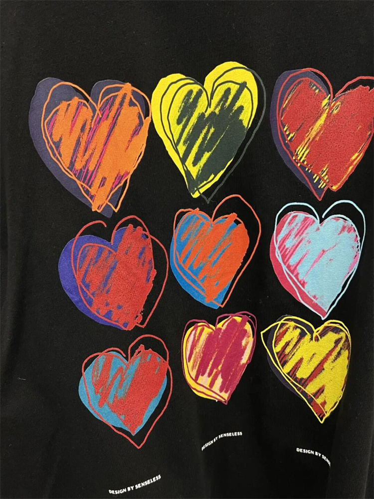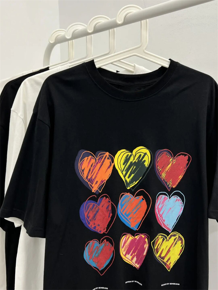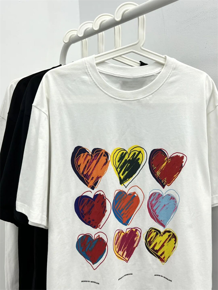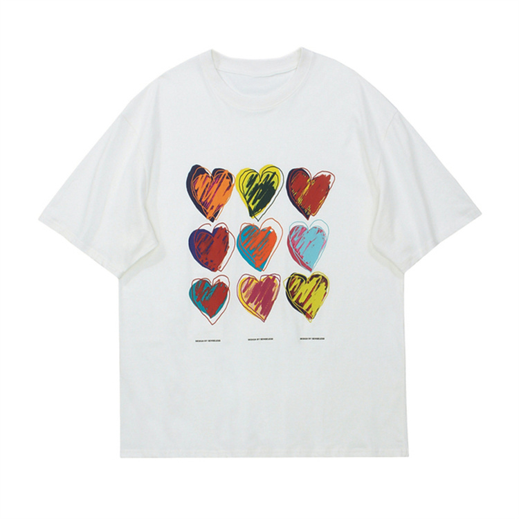 Extra Large Size 1.00 Kg-150.00 kg Summer Heart Color Graffiti Pure Cotton Short Sleeve Women's Chubby Girl Loose Niche Style Couple T-Shirt Fashion