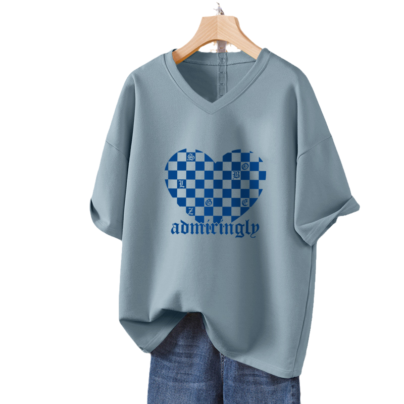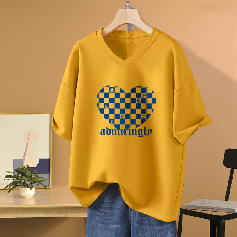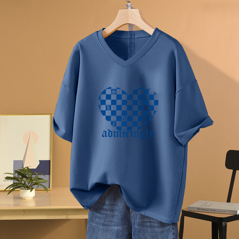 Extra Large Size 120.00kg Plus Size Ladies Cotton Short Sleeve T-shirt Women's Summer 2023 New American Retro Half Sleeve V Neck Top