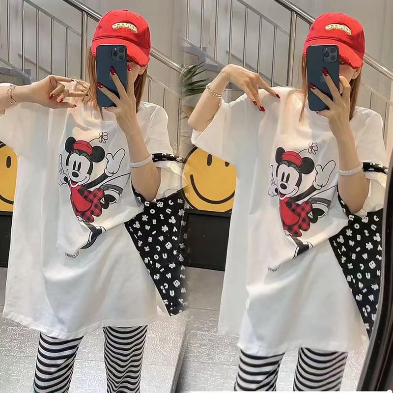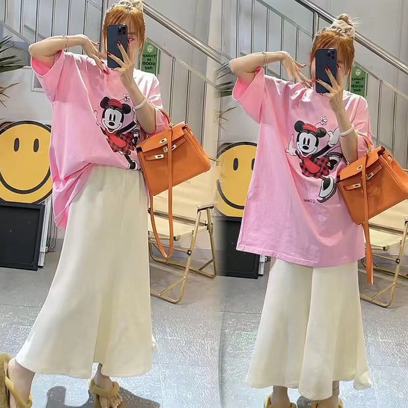 Extra Large Size plus Size 1.00 Kg-150.00 kg Print Short Sleeve T-shirt Women's Summer New Arrival Loose Chubby Girl Mid-Length Tops