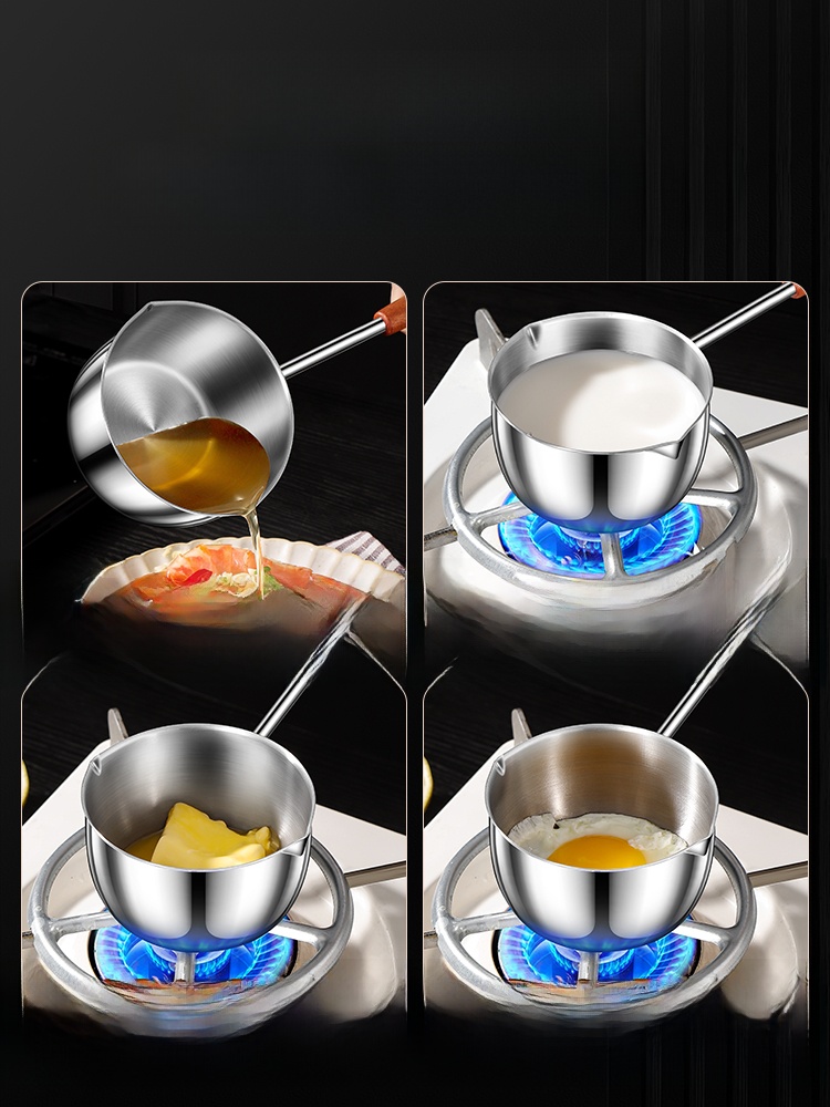 Extra Thick 304 Stainless Steel Long Handle Oven Mitts Oil Pouring Small Pot Hot Oil Dedicated Pot For Home Mini Drip Oil Handy Gadget Neutral