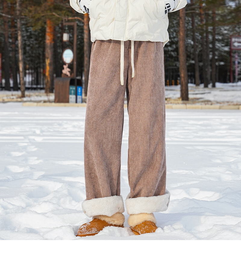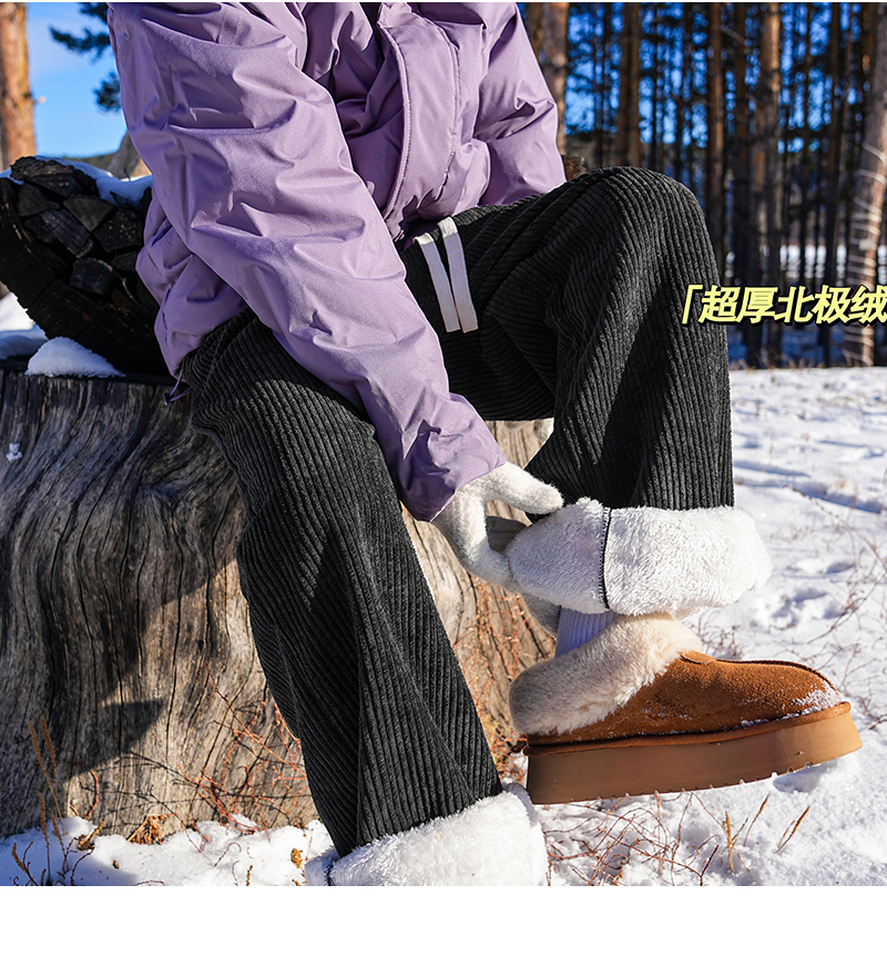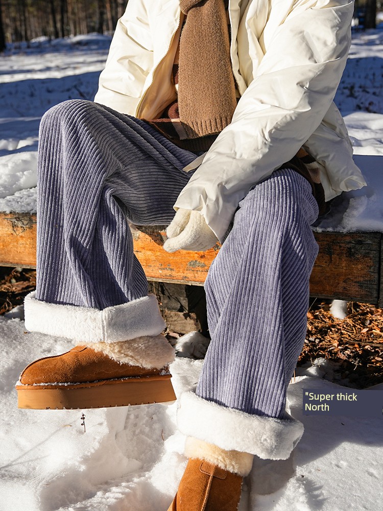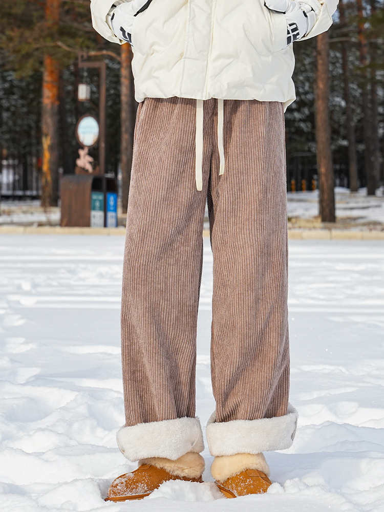 Extra Thick Bejirog Cotton-Padded Trousers Women's Winter Fleece-lined Thick Corduroy Pants Loose Casual Cold-Proof Ski Pants