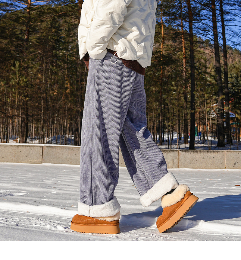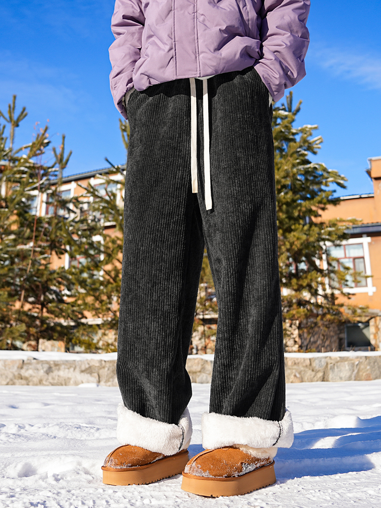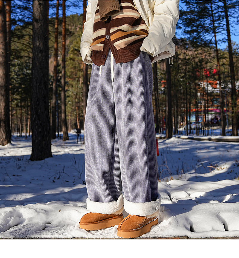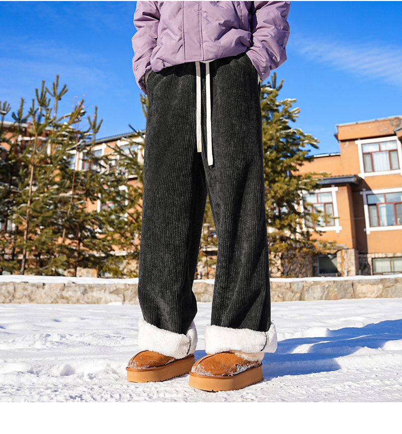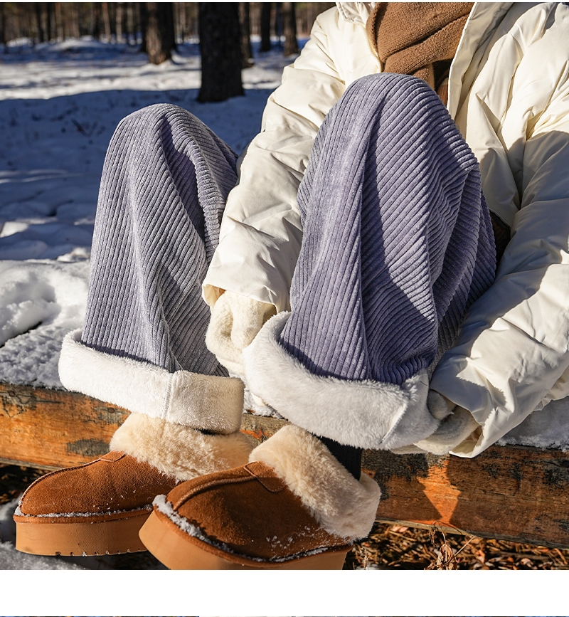 Extra Thick Bejirog Cotton-Padded Trousers Women's Winter Fleece-lined Thick Corduroy Pants Loose Casual Cold-Proof Ski Pants