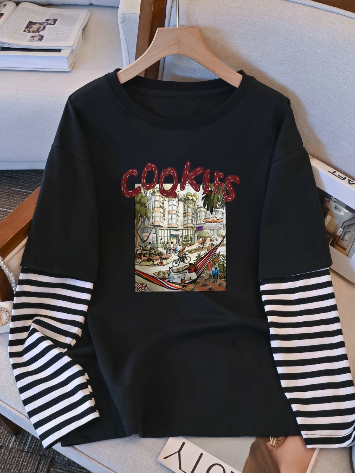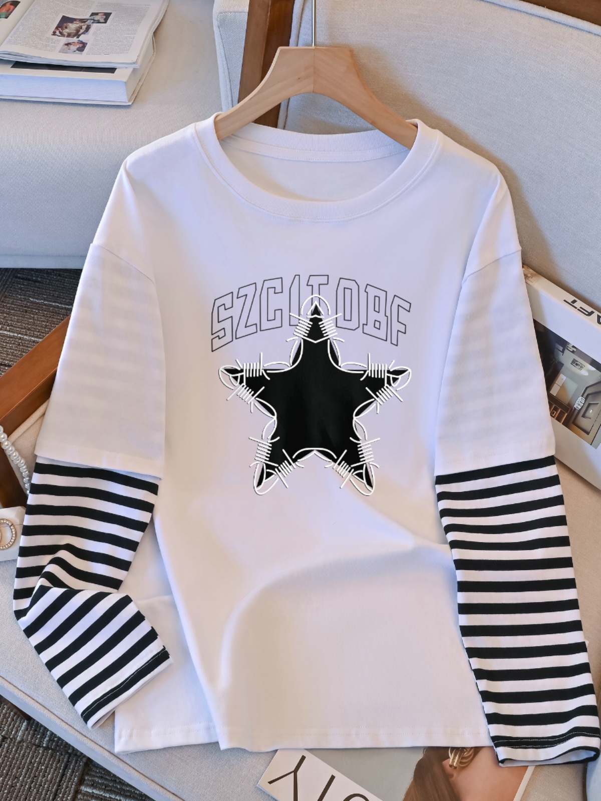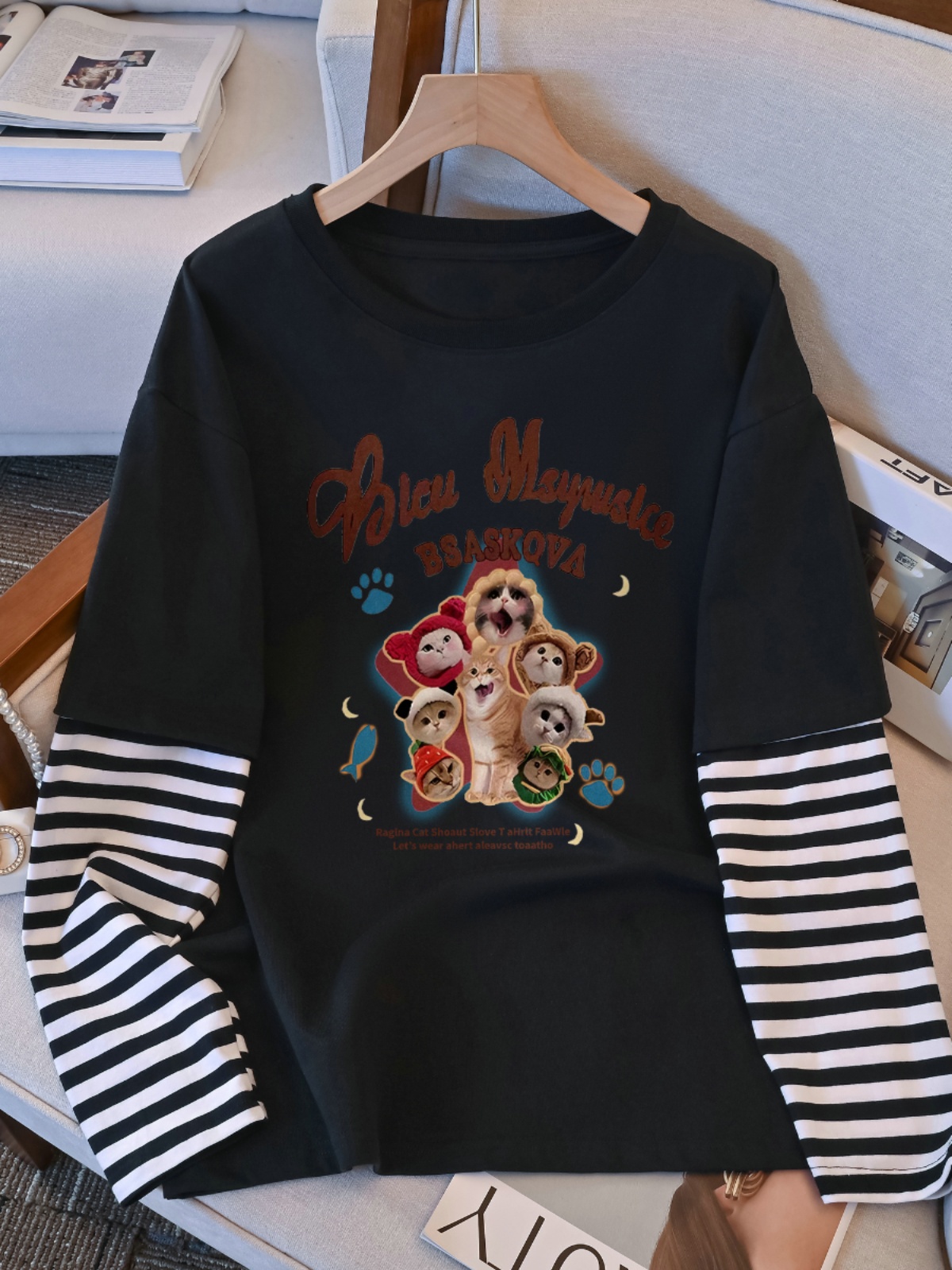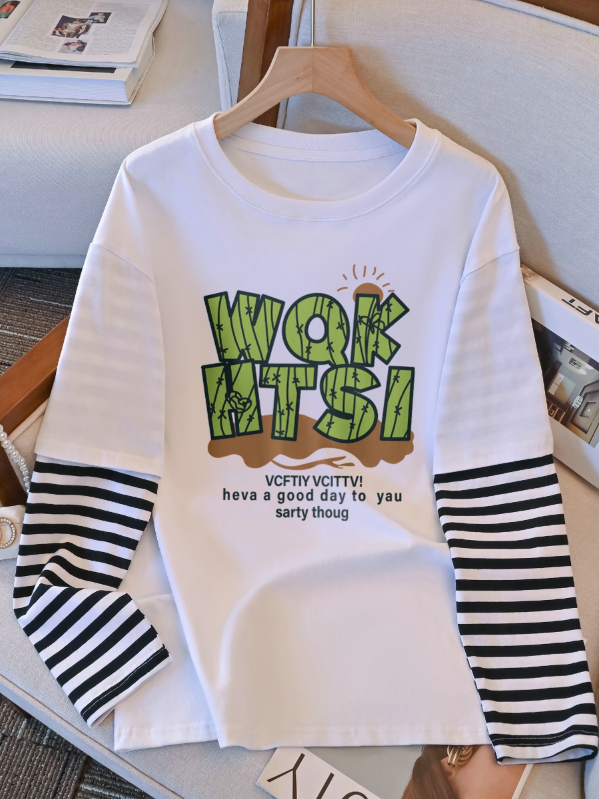 Fake Two-Piece Plus Size Plus Size Ladies Long Sleeves Loose T-shirt Female 2025 Spring & Fall New Design Sense Niche Style Inner Wear Clothes