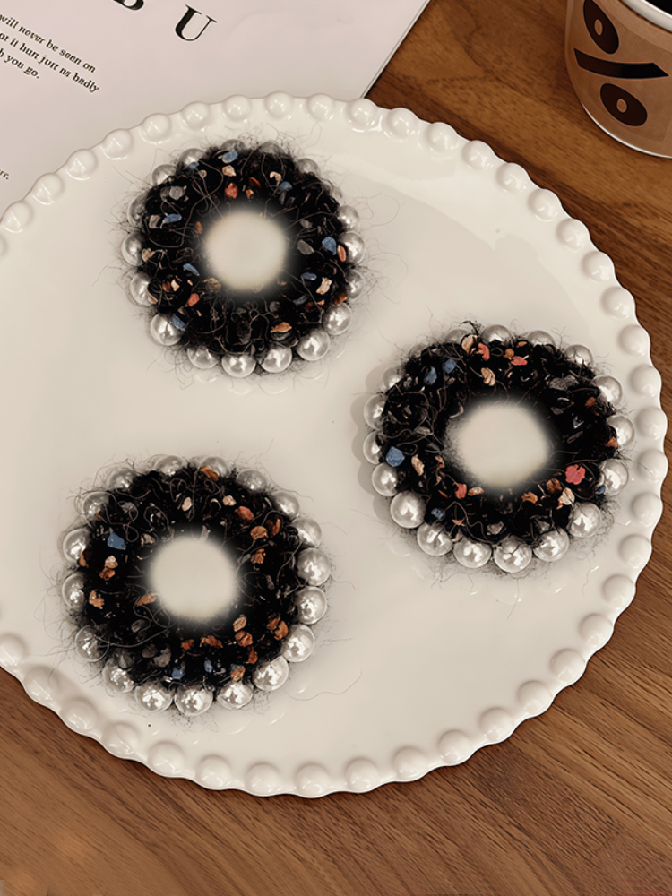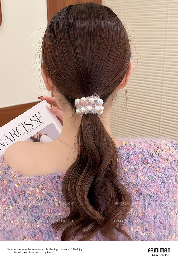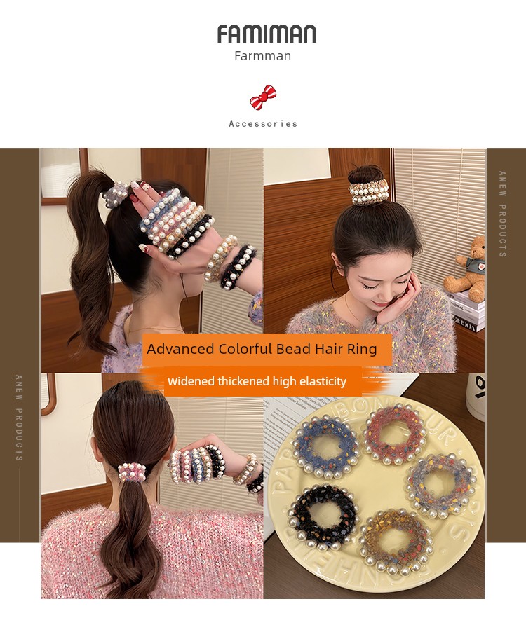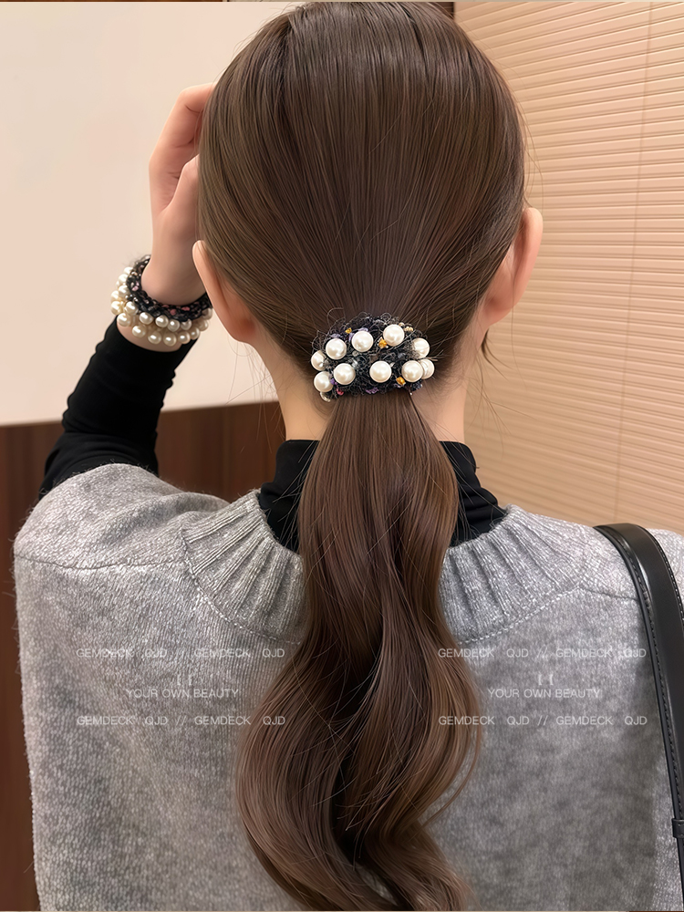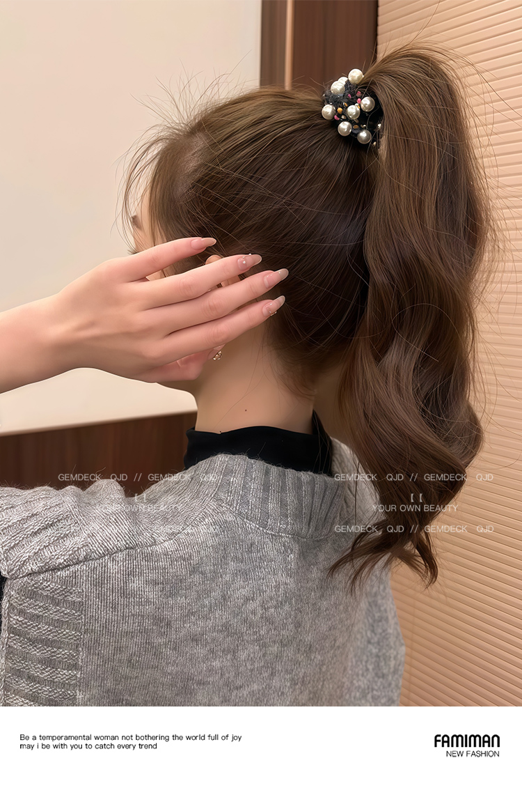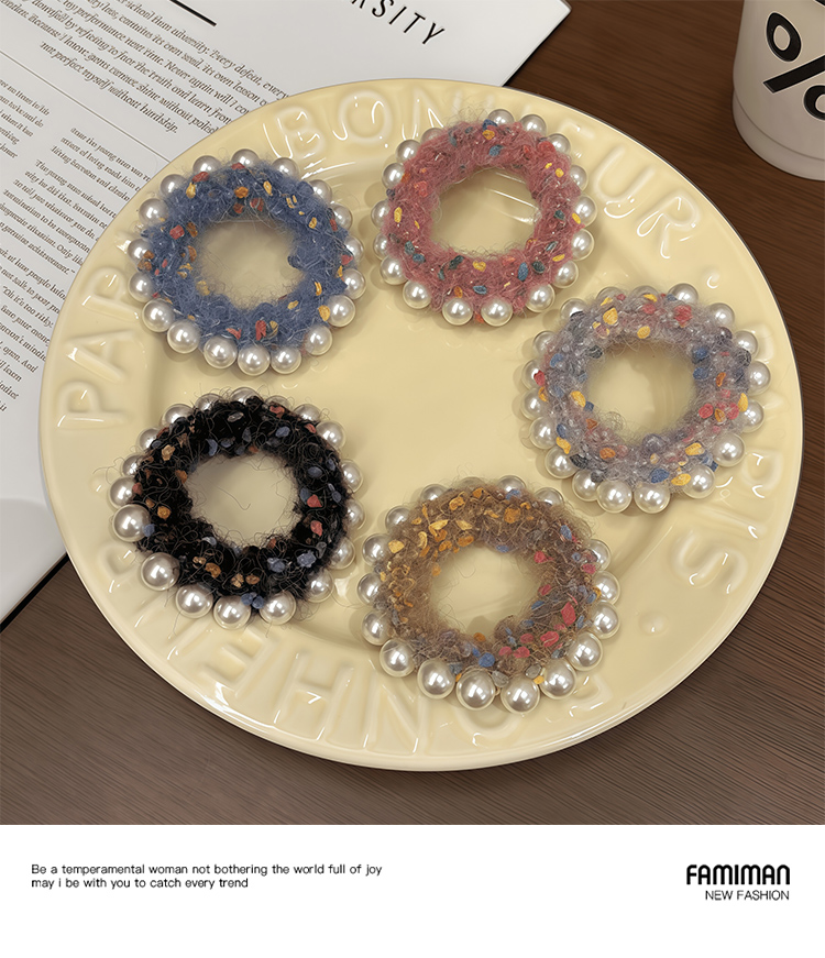 Fall and Winter Color Wool Pearl Hair Band Sweet Beauty High Ponytail Hair String Rubber Band Female Tie Ball Head Rope Rubber Band Headdress