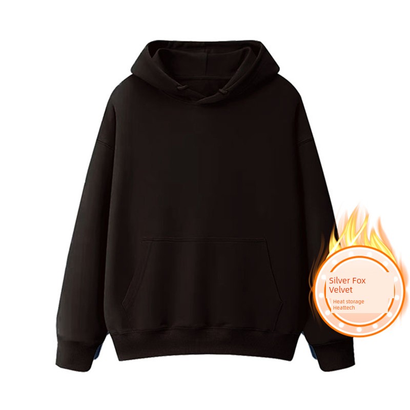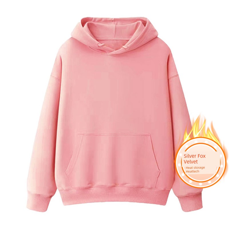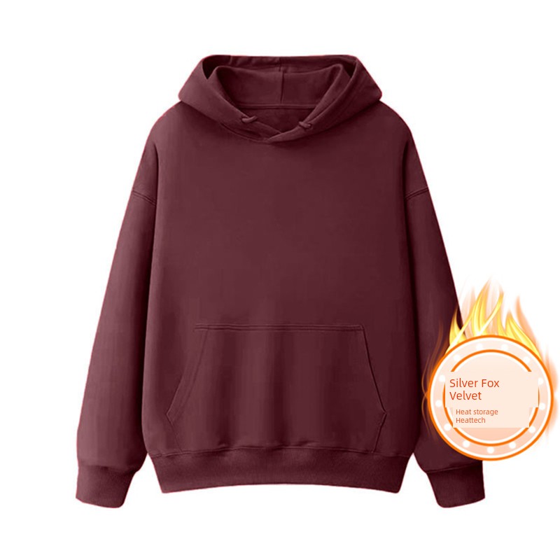 Fall and Winter Fleece-lined Thickened Klein Blue Hooded Sweatshirt Men and Women Brown Loose Easiest for Match Pure Color Light Board Jacket