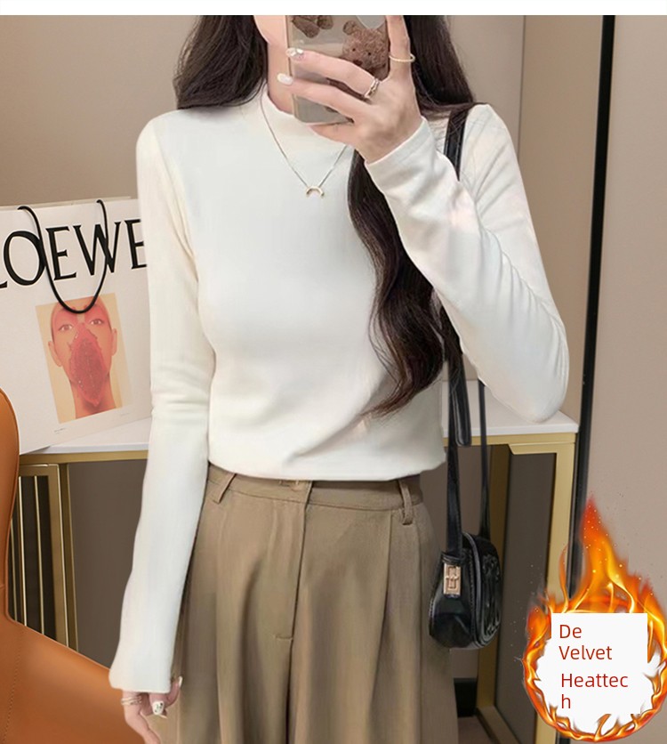 Fall and Winter New Arrival Dralon Half Turtleneck Bottoming Shirt 2025 Long Sleeves T-Shirt Female Inner Match Slimming All-Matching Warm Tops