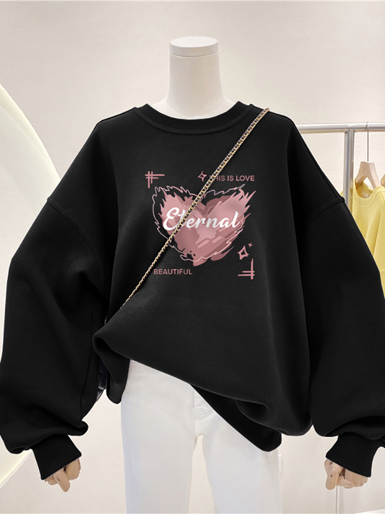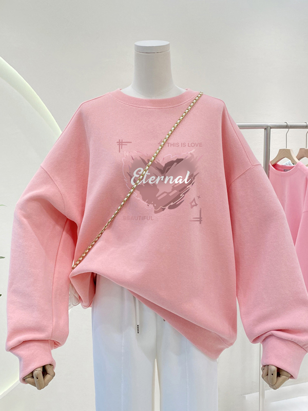 Fall and Winter Plus Size Plus Size Ladies Loose round Neck Sweatshirt Female 2025 New Arrival Fleece-lined Thickened Loose and Lazy Style Coat Top