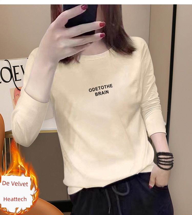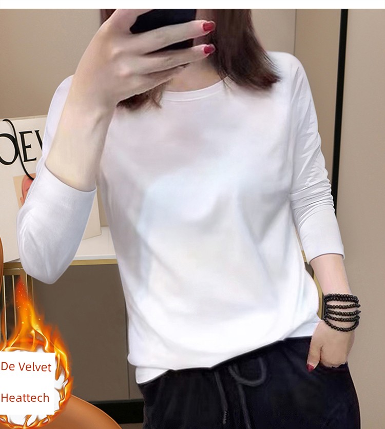 Fall and Winter White Liner T-shirt Dralon Tops Women's Autumn 2025 New Arrival Western Style Youthful-Looking T-shirt Long Sleeve Bottoming Shirt