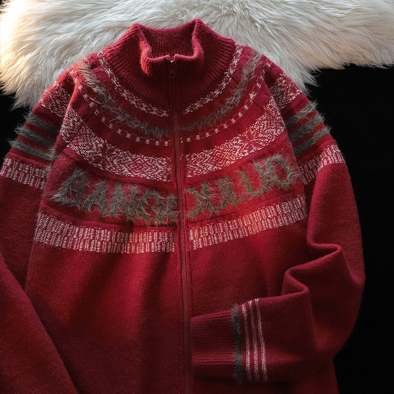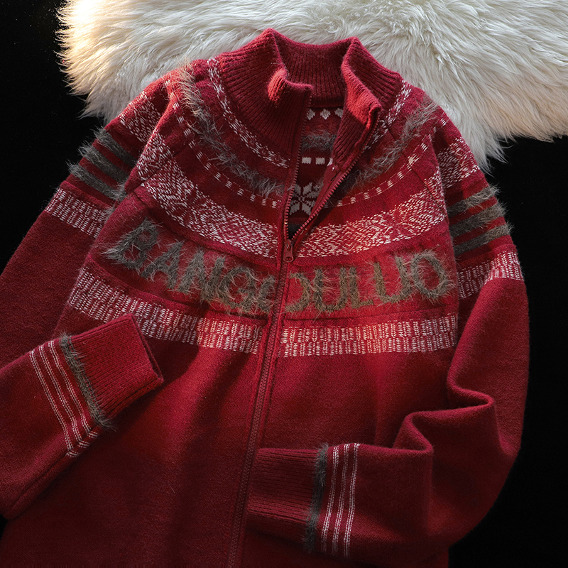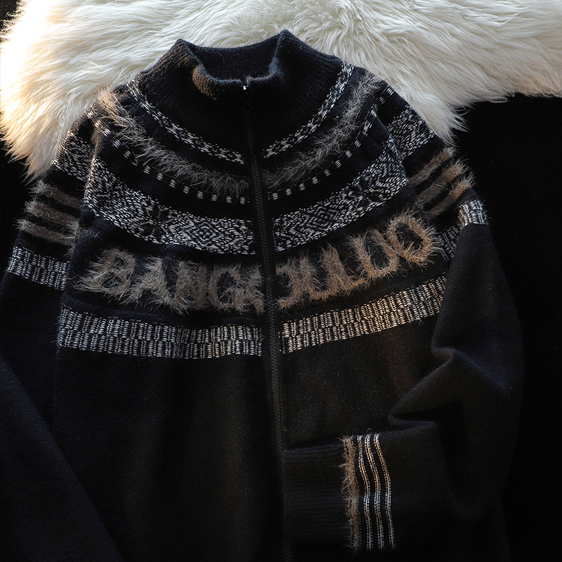 Fancy Stuffed Letter Stand Collar Sweater Outwear Female Autumn Fashion Brand Casual Easiest for Match Niche Style Lazy Knitting Cardigan