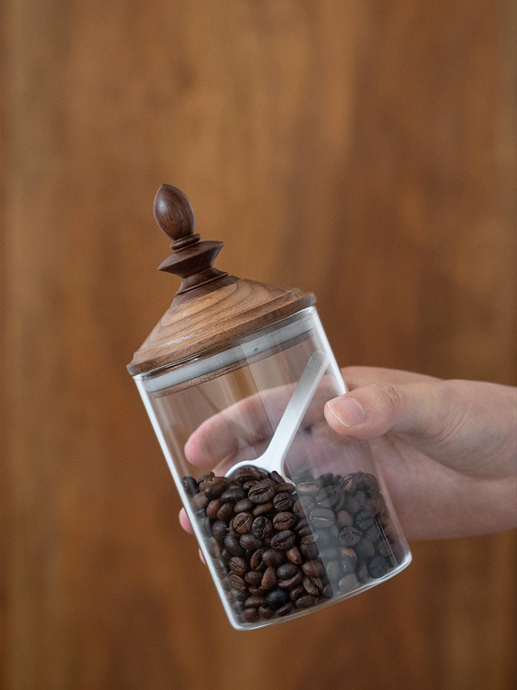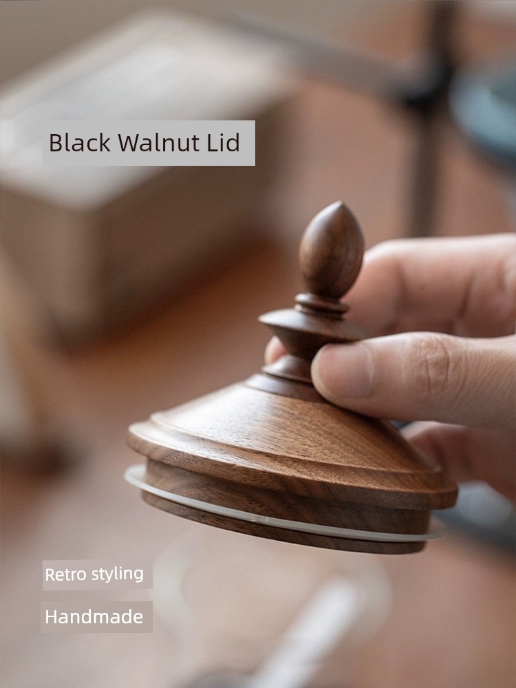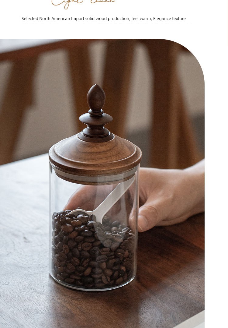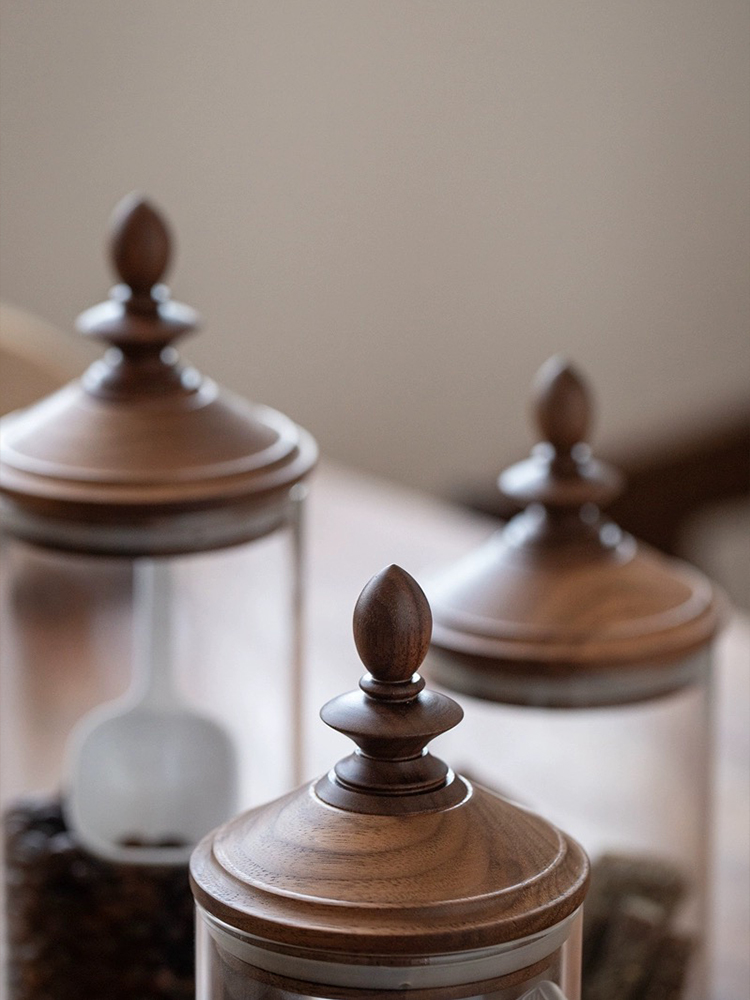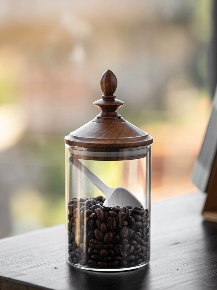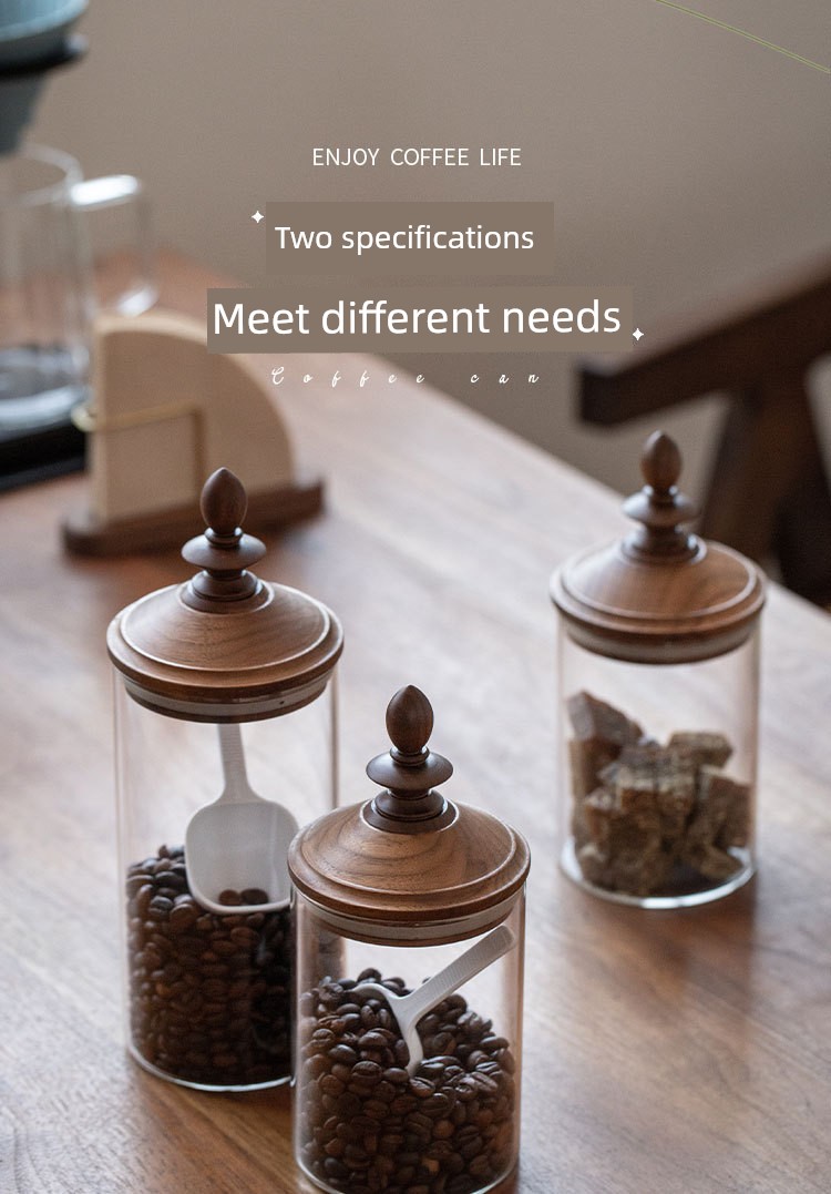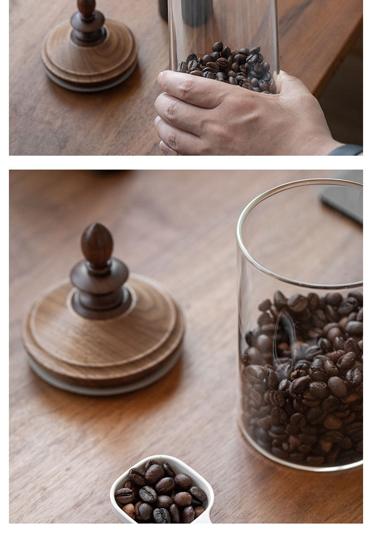 Fanhan Black Walnut Japanese Retro Coffee Bean Storage Tank Wooden Lid Glass Storage Tank Sealed Storage Tank
