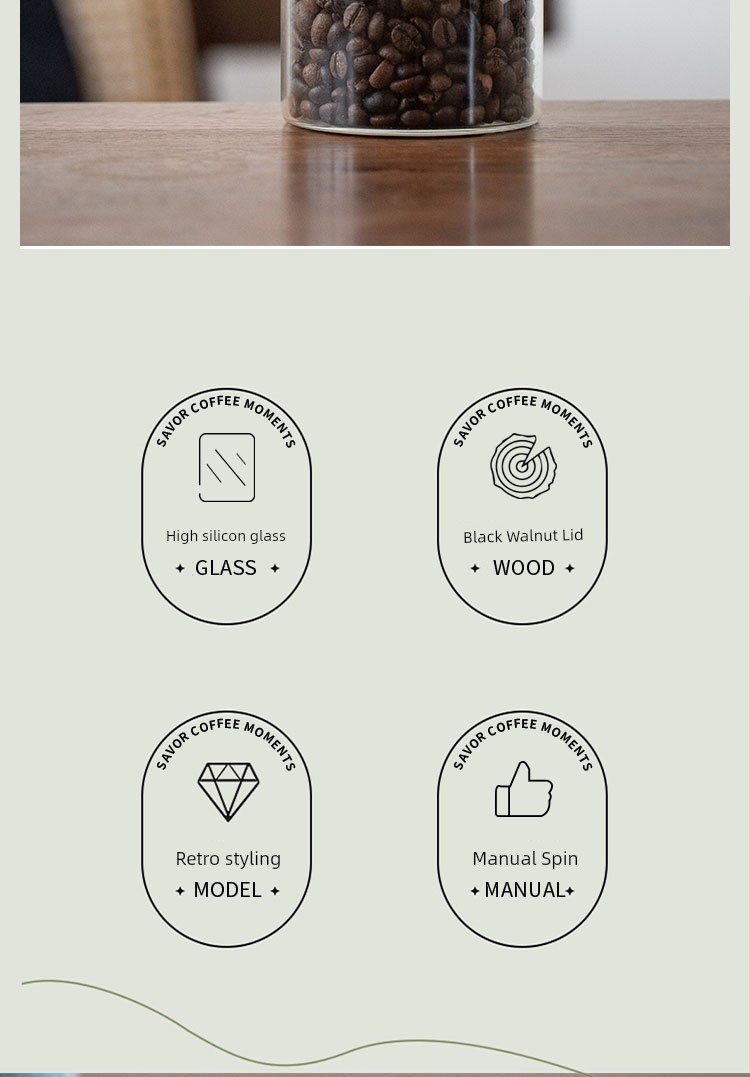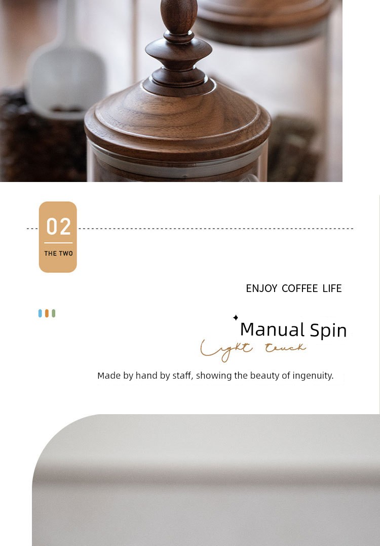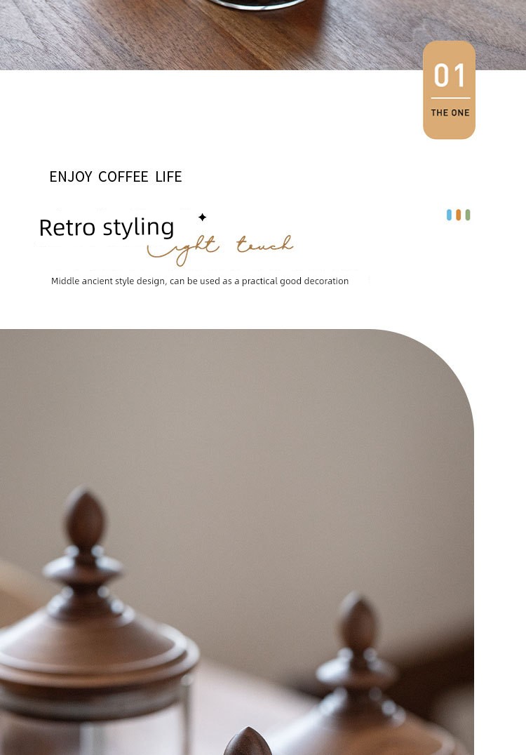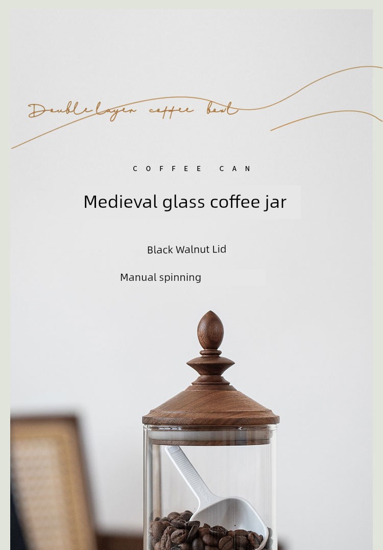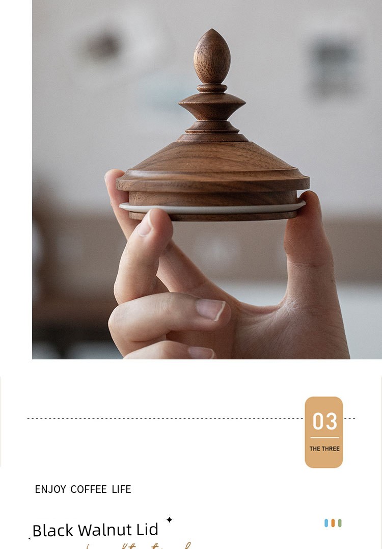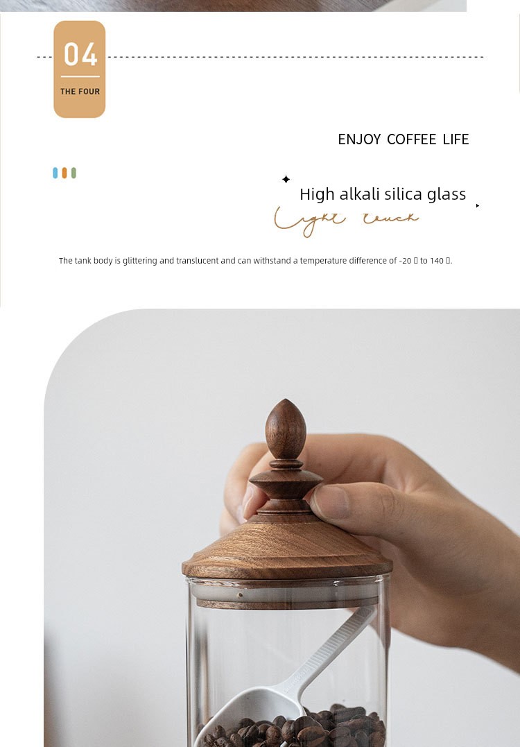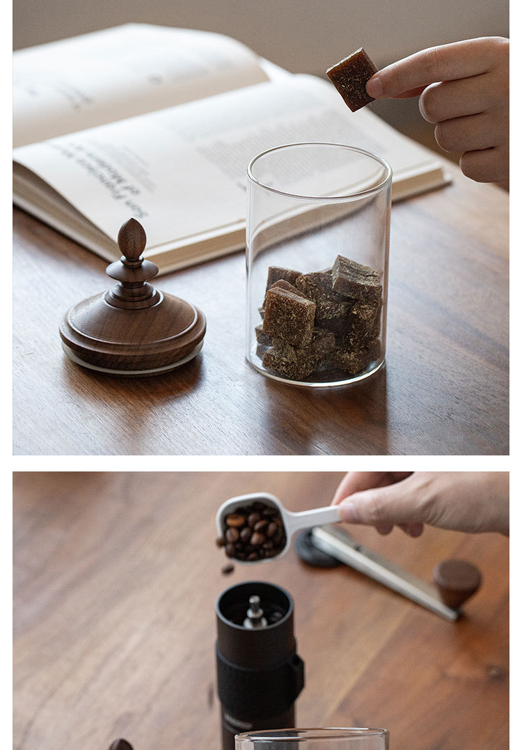 Fanhan Black Walnut Japanese Retro Coffee Bean Storage Tank Wooden Lid Glass Storage Tank Sealed Storage Tank