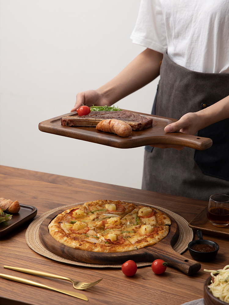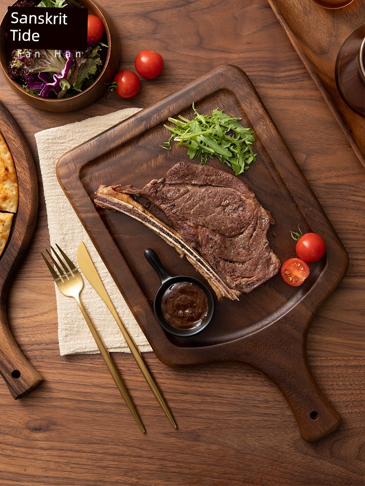 Fanhan Japanese Style Wooden Steak Plate Plate Dish Fruit Bread Board Chopping Board Western Cuisine Plate For Home Pizza Plate Tray