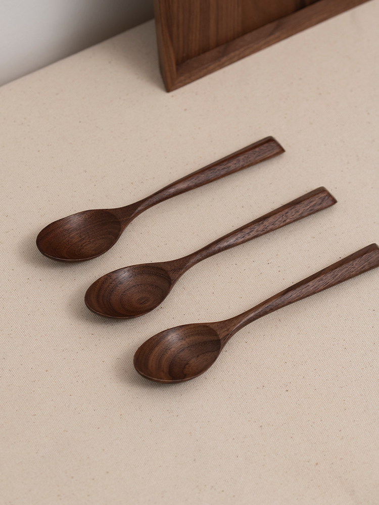 Fanhan Japanese Wooden Spoon Eating For Home Wooden Spoon Honey Black Walnut Wooden Chopsticks Spoon Tableware Suit