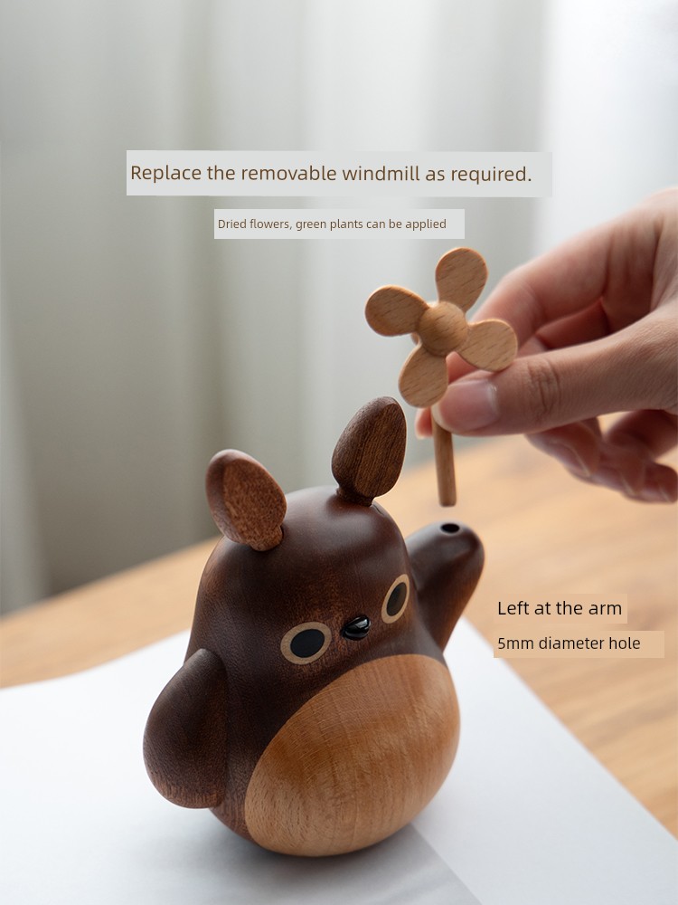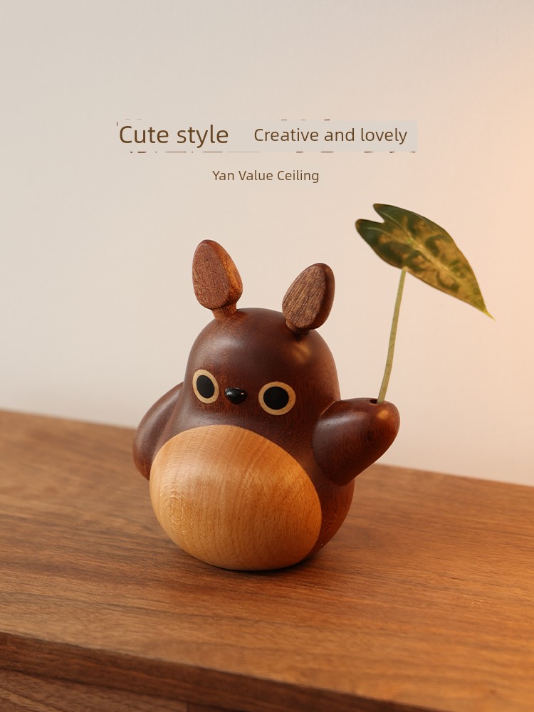 Fanhan Little Totoro Creative Decoration Healing Series Birthday Gift Gift with Hand Gift Solid Wood Cute Table Decoration Doll
