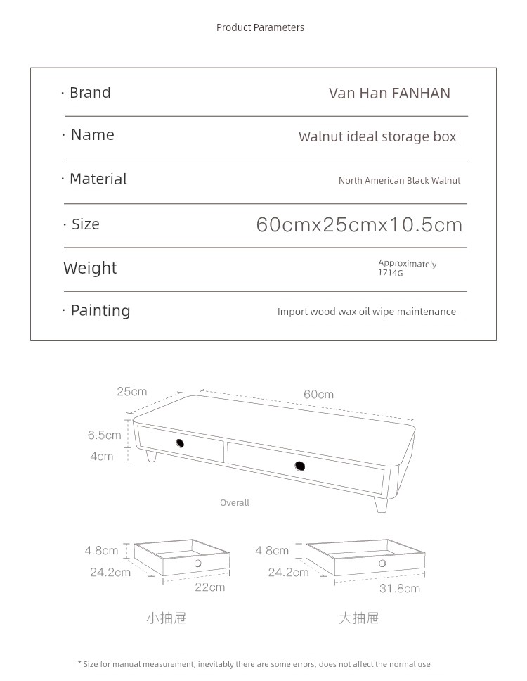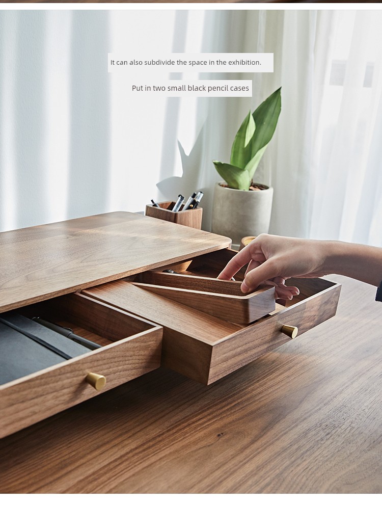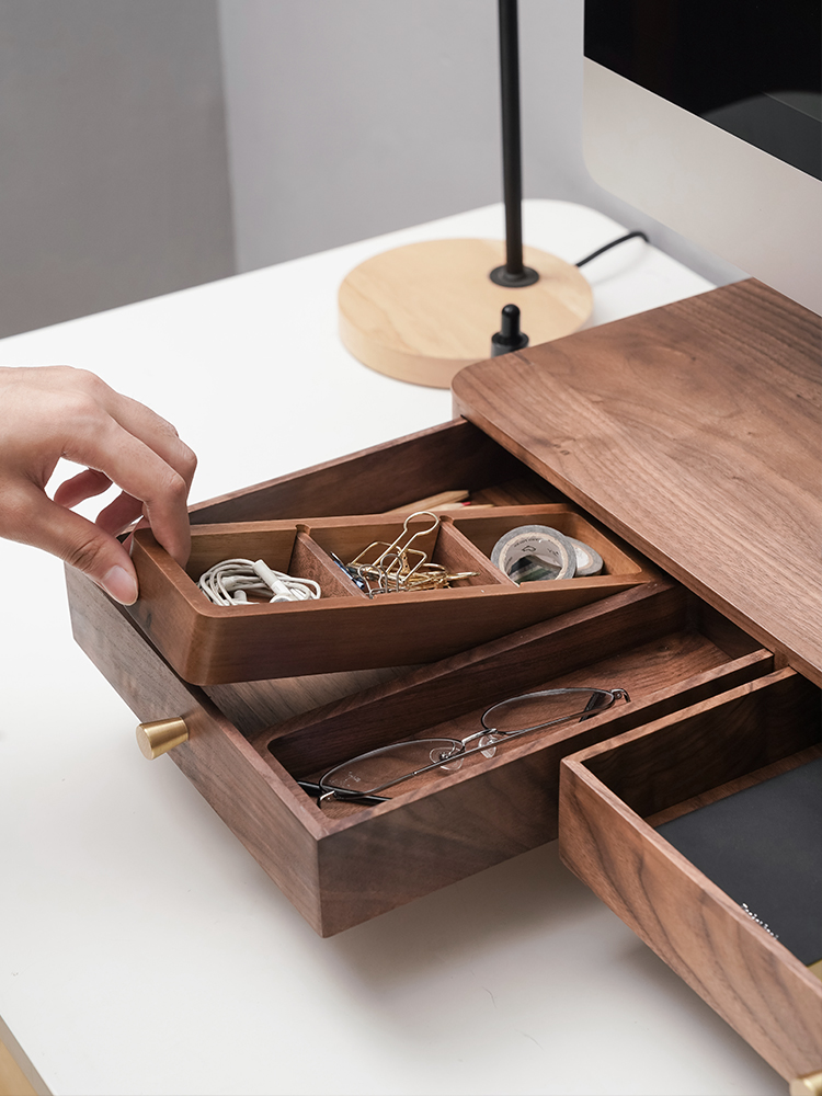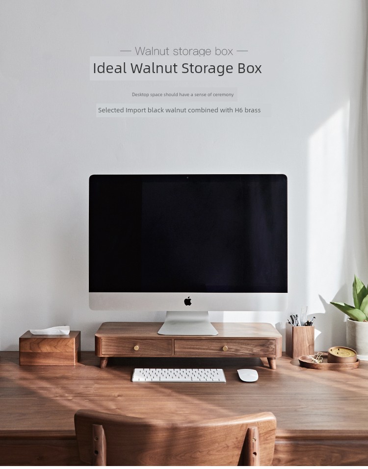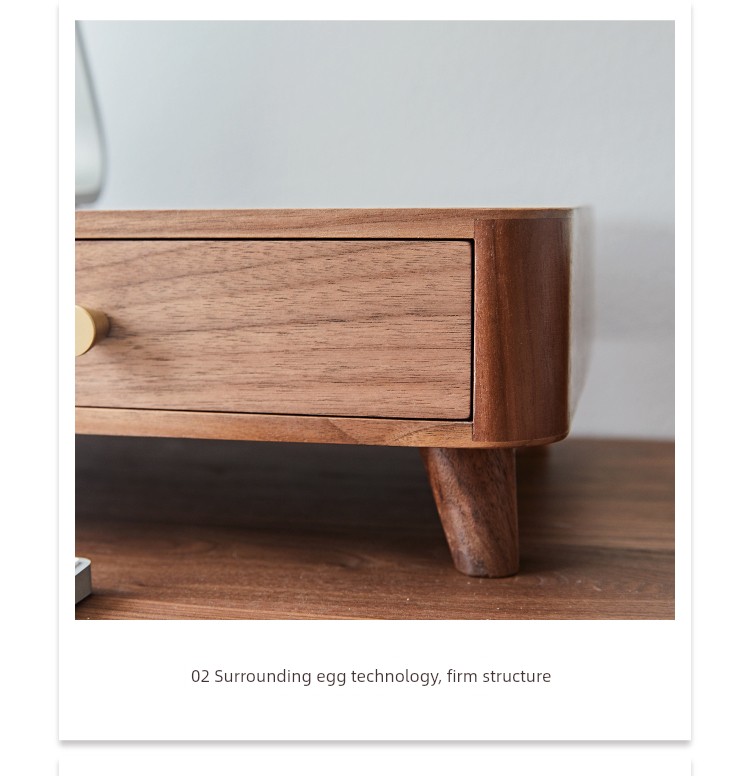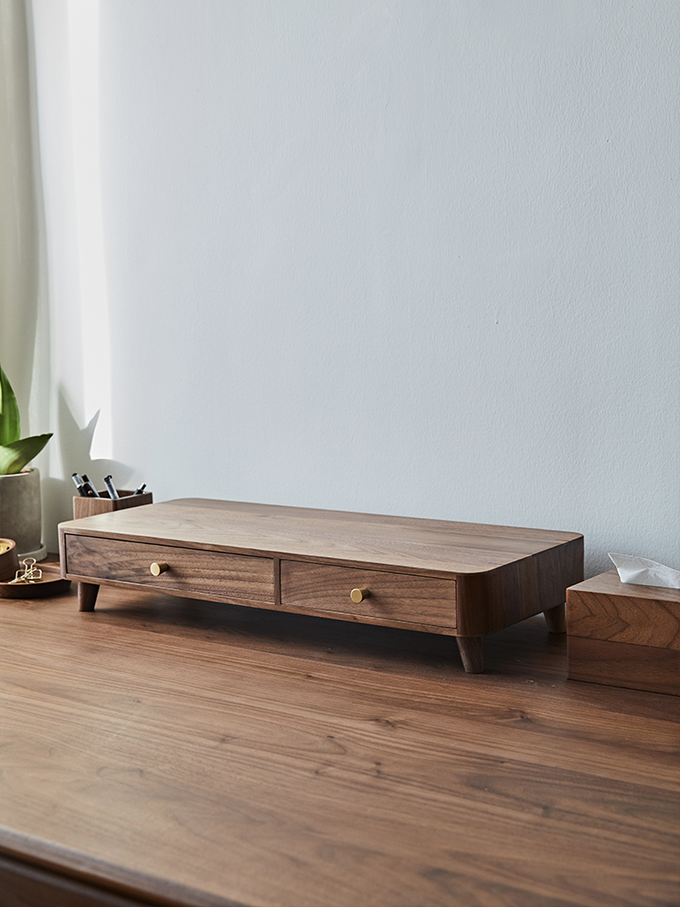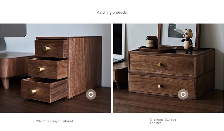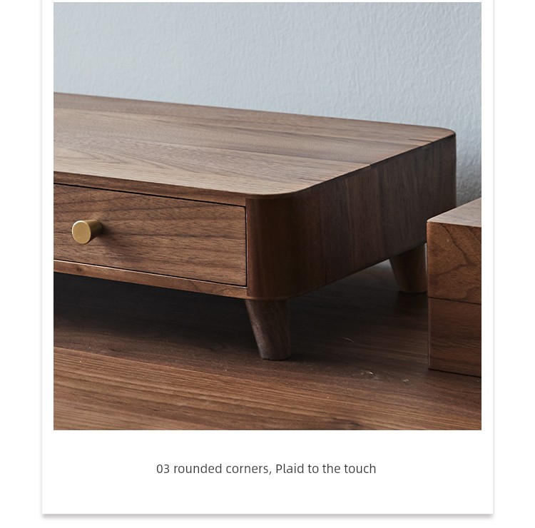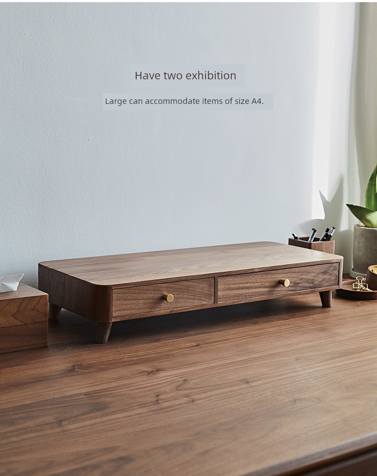 Fanhan Solid Wood Drawer Style Storage Rack Office For Home Computer Riser Walnut Desktop Storage Cabinet