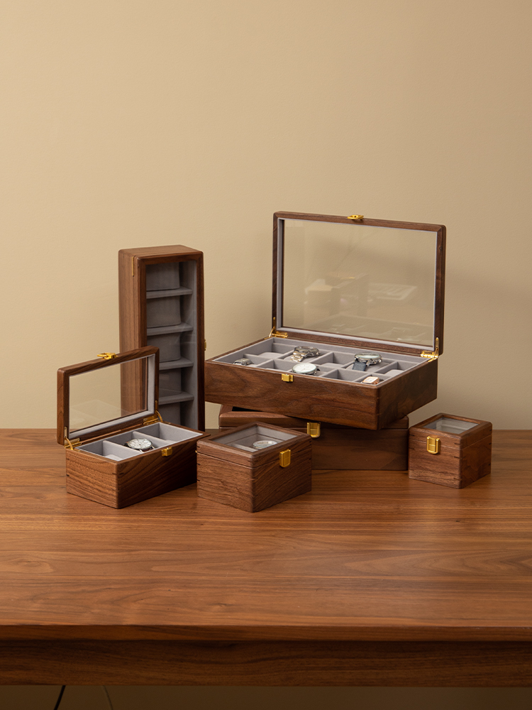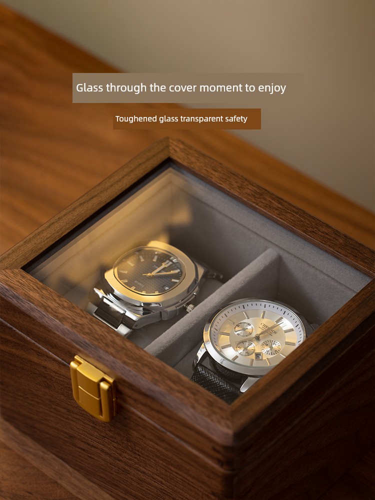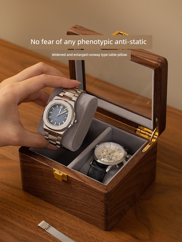 Fanhan Black Walnut Solid Wood High-end Watch Box Exquisite Couple Watch Display Drawer Storage