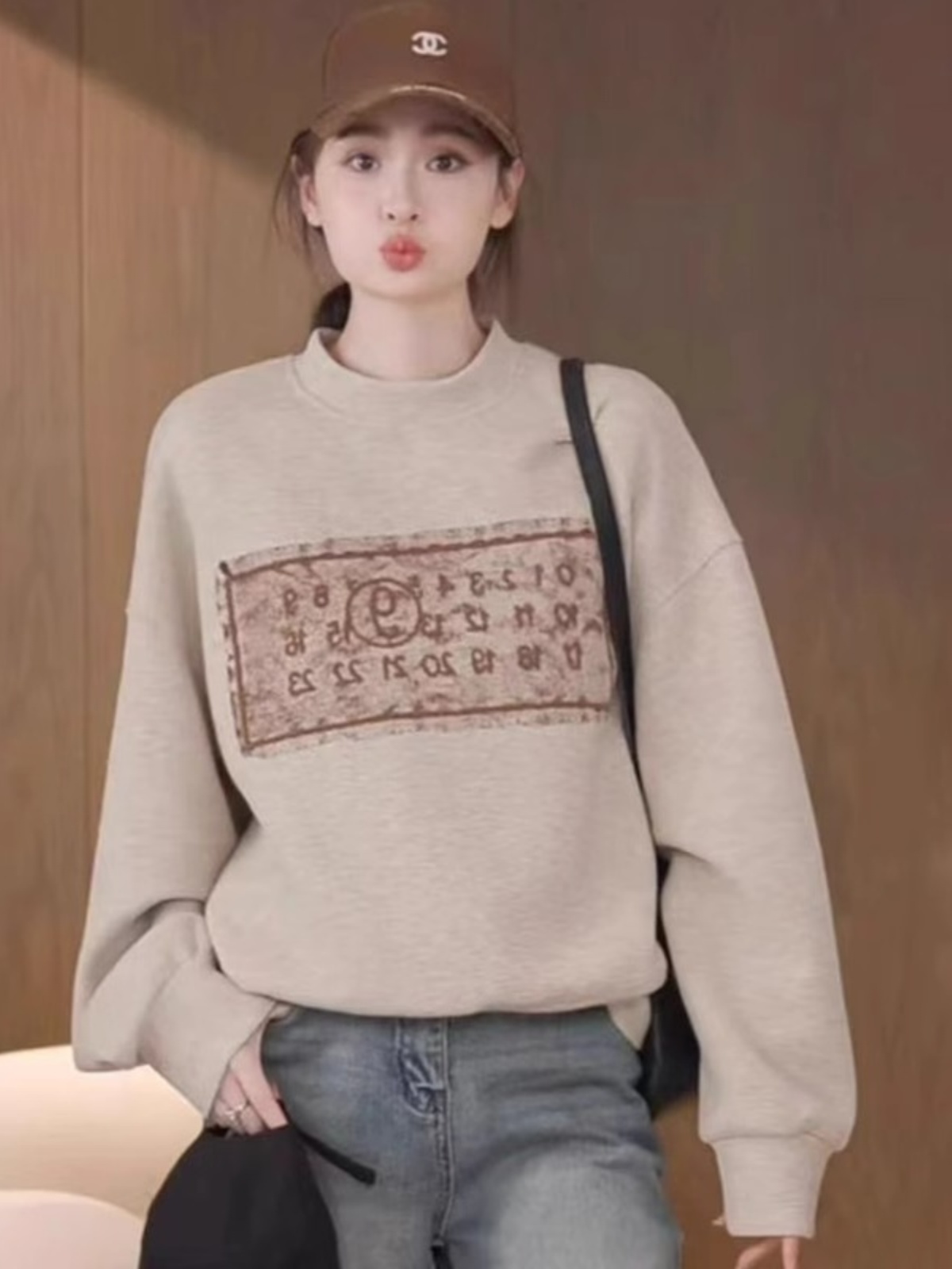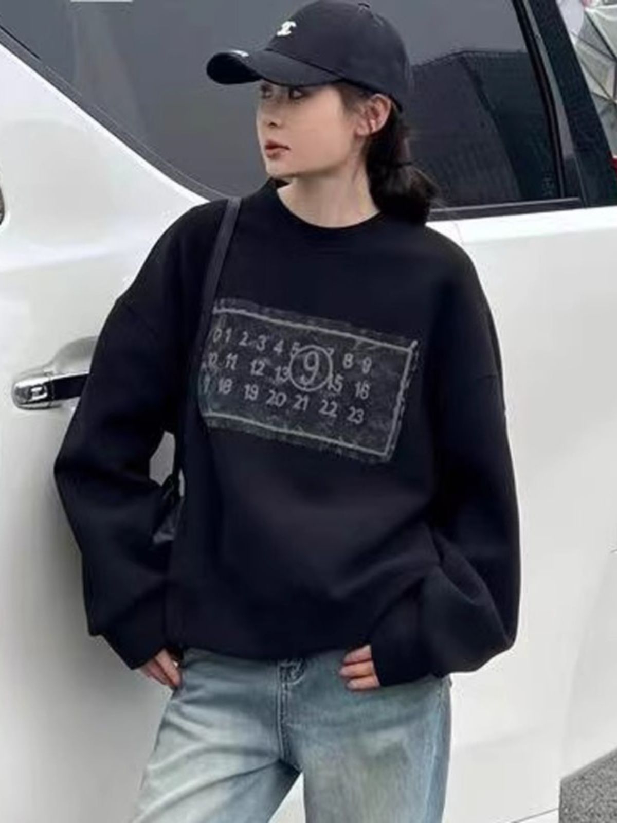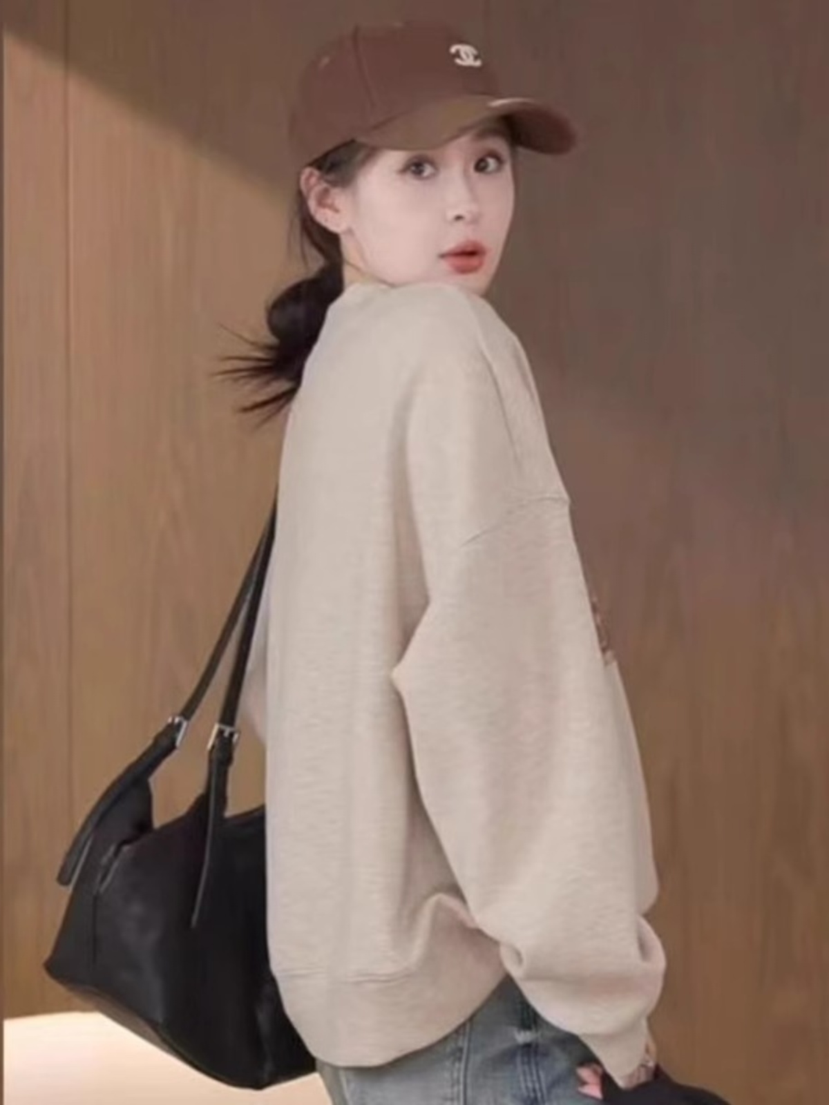 Fashion-Black Hooded Brushed Hoody Women's Spring and Autumn 2025 New Arrival Top-Selling Product Fashion Loose Western Style Lazy Top