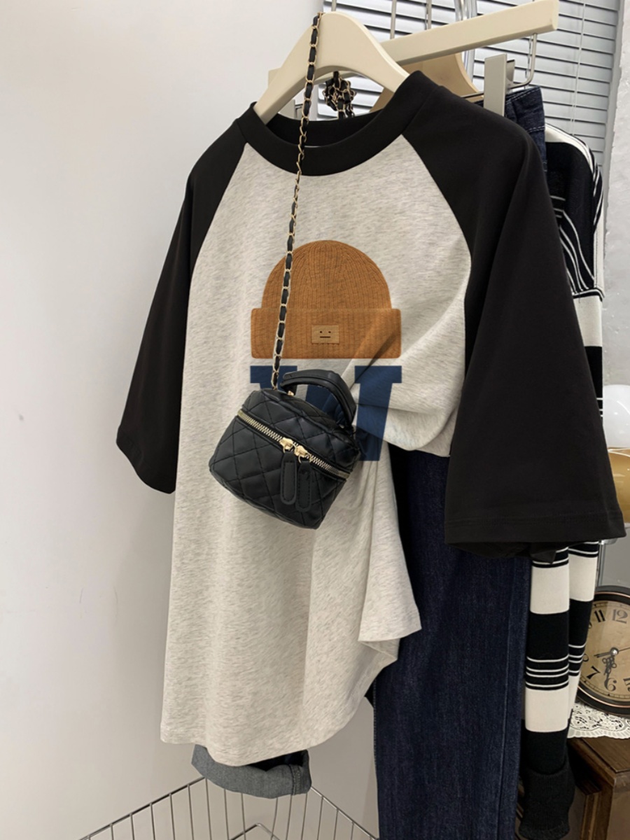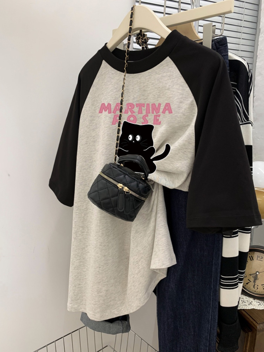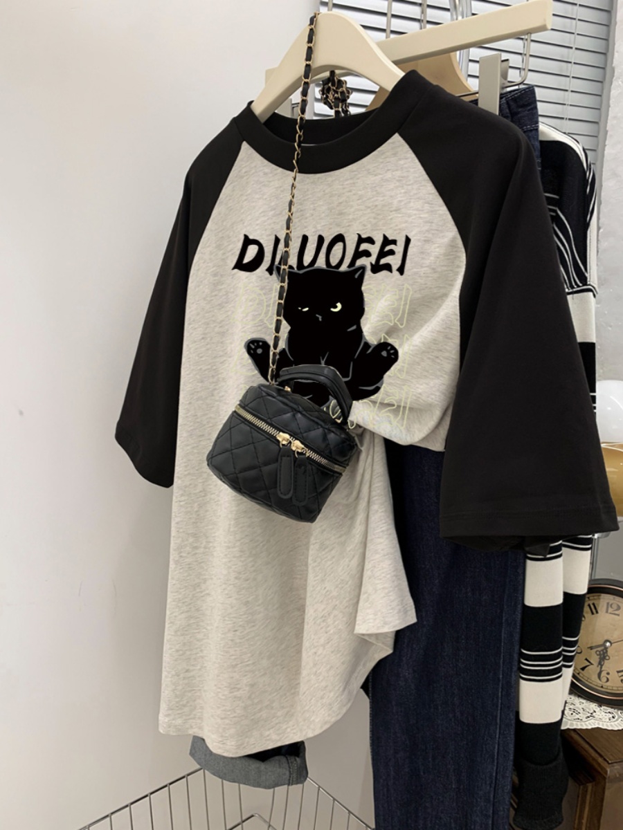 Fashion Brand T-shirt Women's Summer New Arrival Best Selling Plus Size Women's Raglan Sleeve Tops Ins Trendy Retro Cartoon Print Short Sleeve