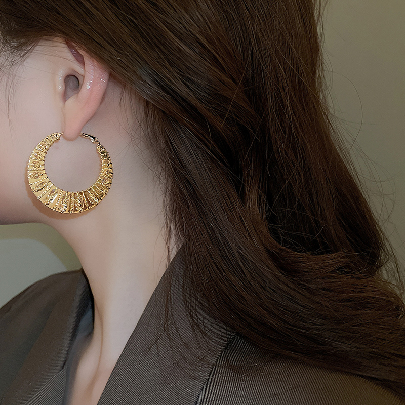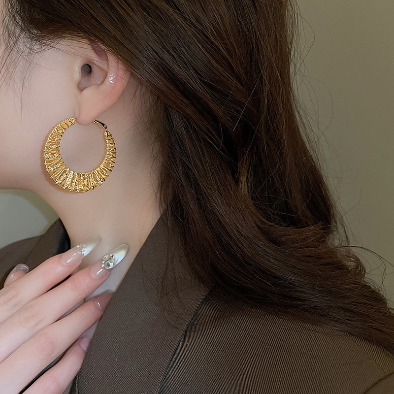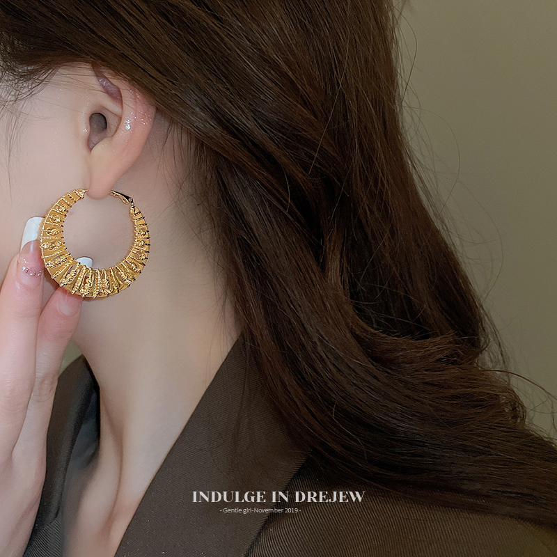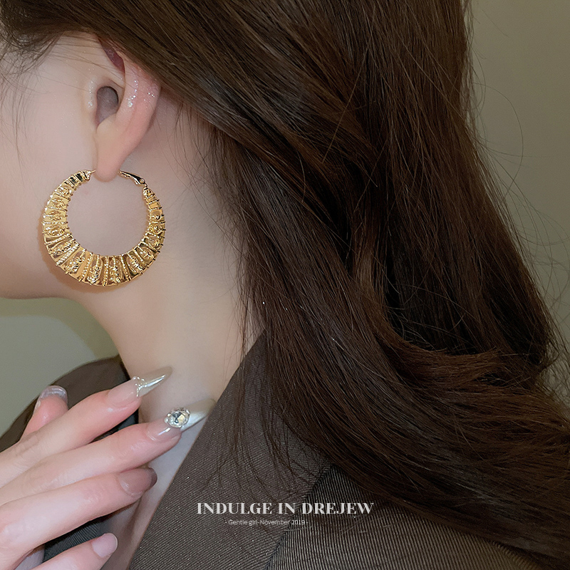 Fashion Exaggerated Thread Large Hoop Earrings New Arrival Western Style Ear Studs Accessible Luxury Fancy Dignified Generous Style Golden Earrings