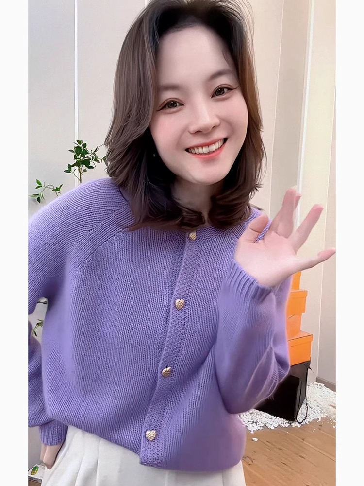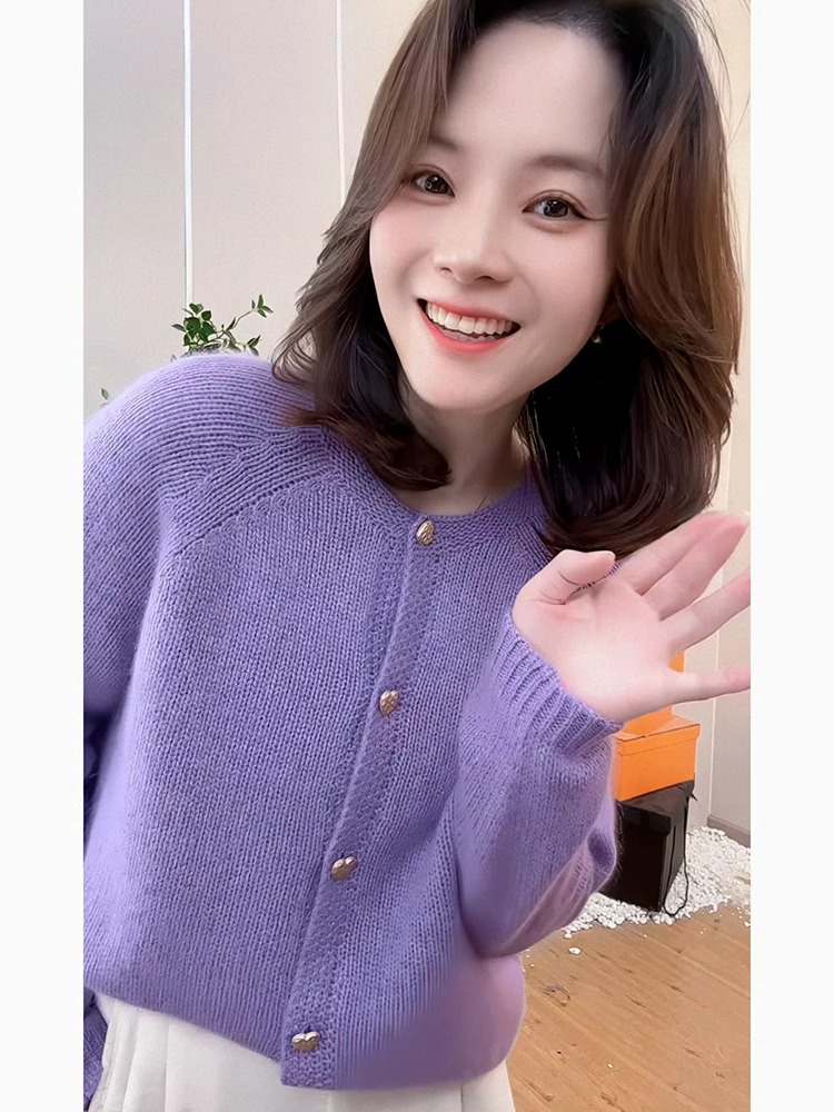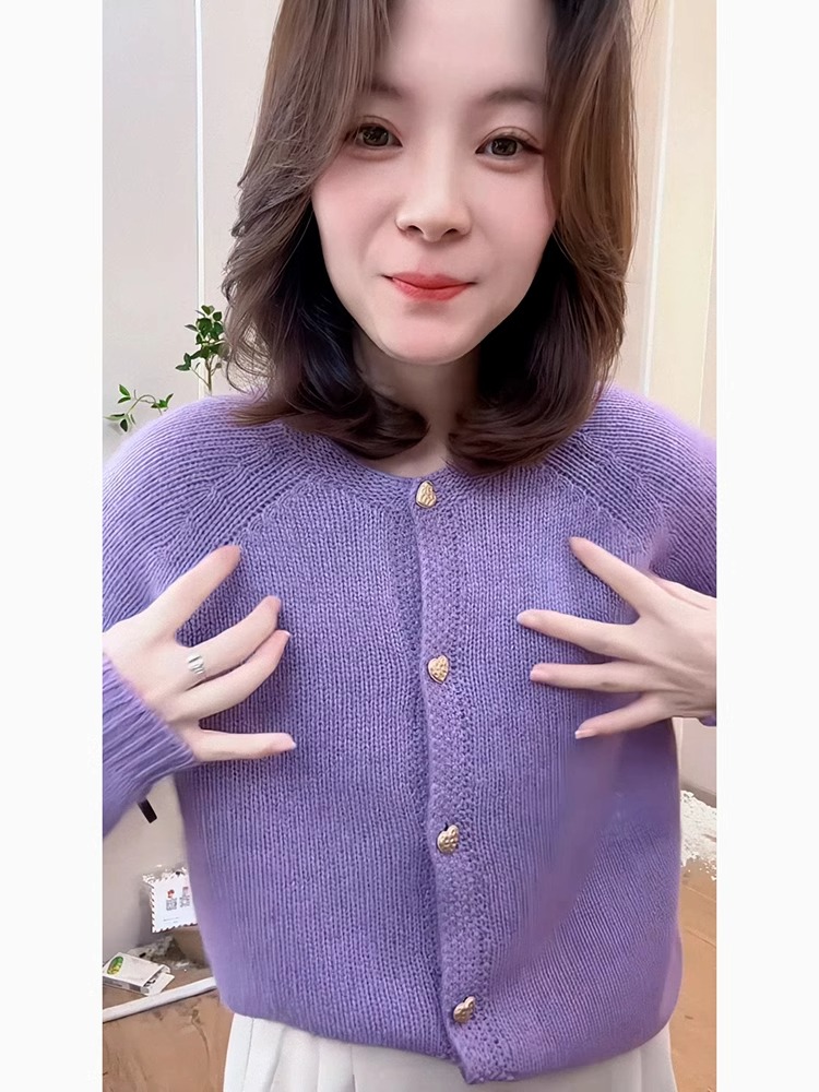 Fashion Unique Super Nice round Neck Purple Sweater Female 2025 Spring & Fall New Arrival Casual Slim Looking Fancy Knitwear