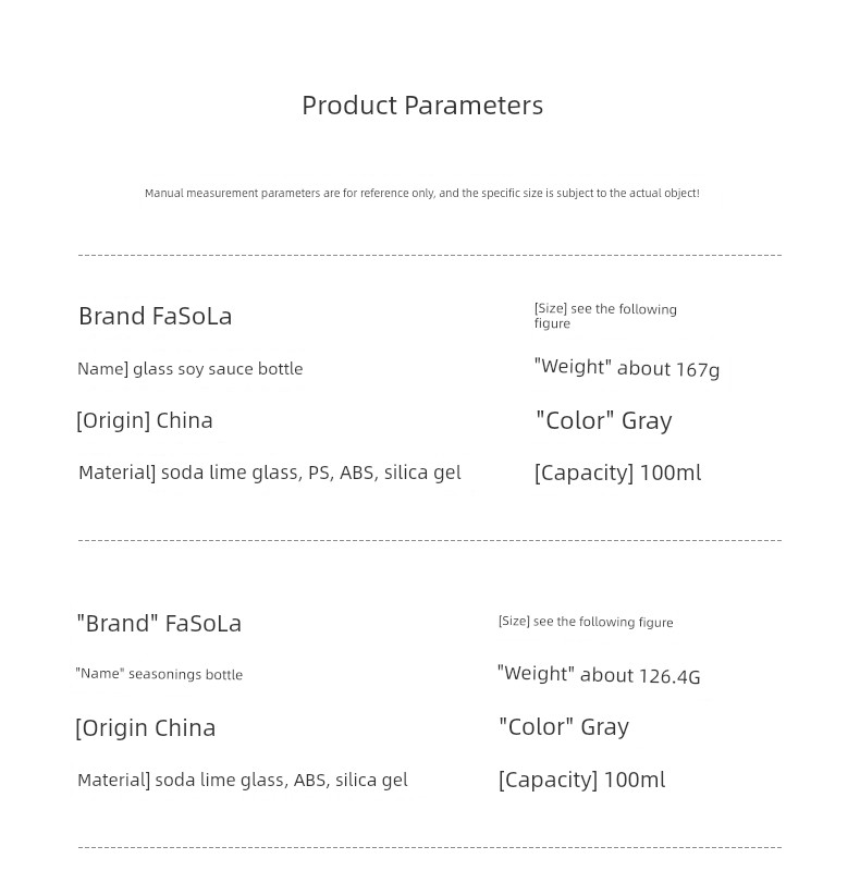 Fasola Kitchen Glass Oiler Oil Bottle Leak-Proof Soy Sauce Bottle Oil Pots Vinegar Seasoning Oil Bottle Combination Seasoning Jar