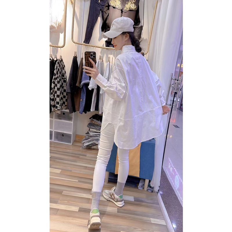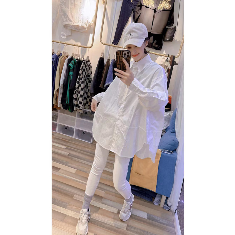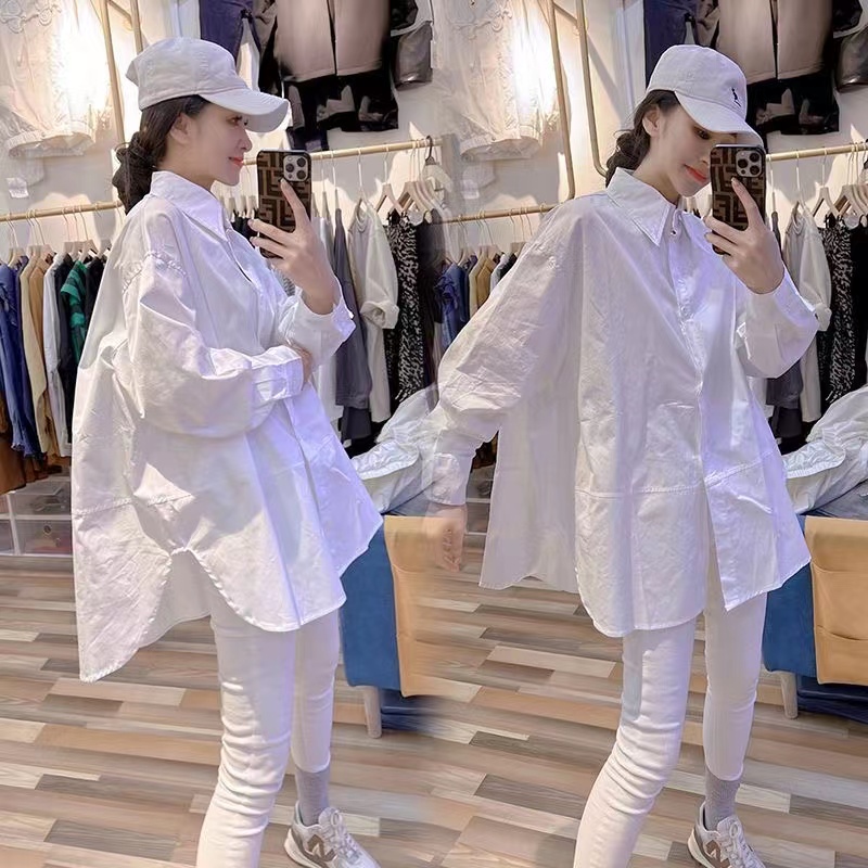 Fat M 150.00kg Plus Size White Shirt for Women Spring and Autumn New Arrival Casual Fashion All-Matching Loose Long Sleeve Shirt Coat