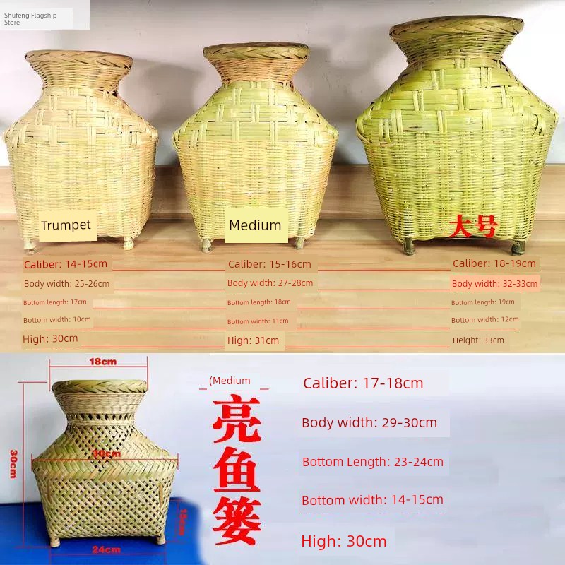Fish Basket Guizhou Traditional Bamboo Products Three Ears Bamboo Woven Fish Basket Bamboo Basket Leaf Basket Bamboo Cage Tea Barei Large Size Hot