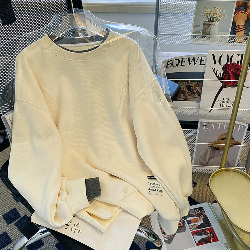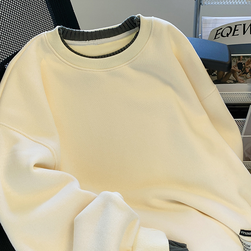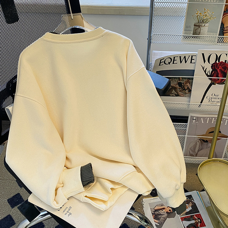 Fleece-lined Printed Crew Neck Sweatshirt Female Autumn and Winter Wild Oversize Small Retro Design Fake Two-Piece Tops