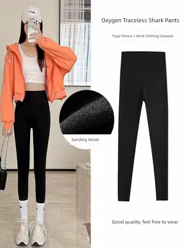 Fleece-lined Thickened High Waist Shaping Shark Pants Outwear Fitness Yoga Pants Fall and Winter New Arrival Weight Loss Pants Leggings