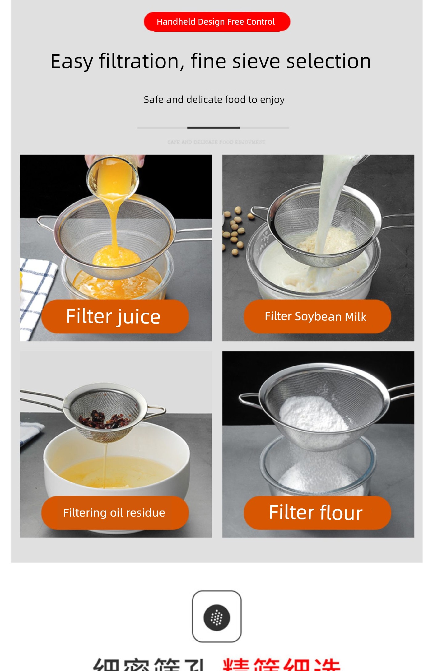 Flour Sifter Large Fruit Milk Stainless Steel Colander