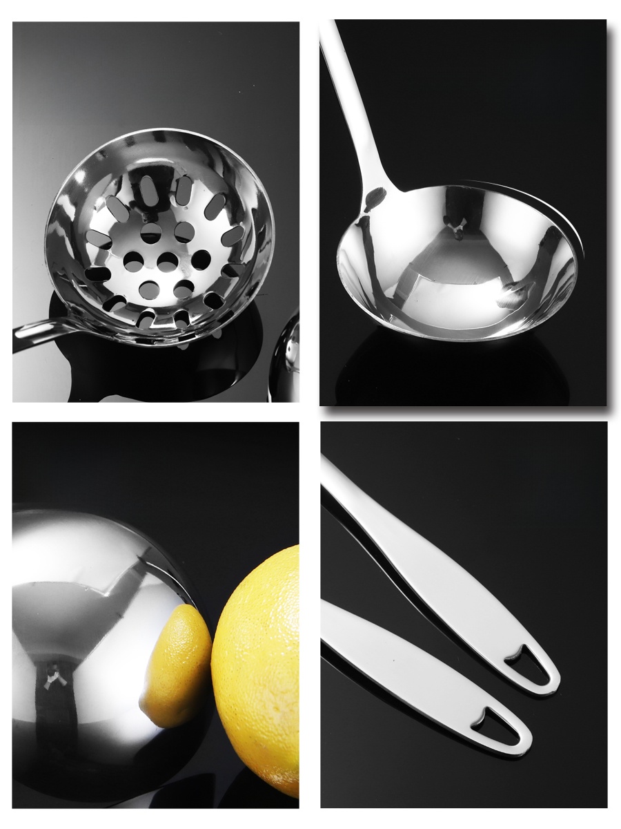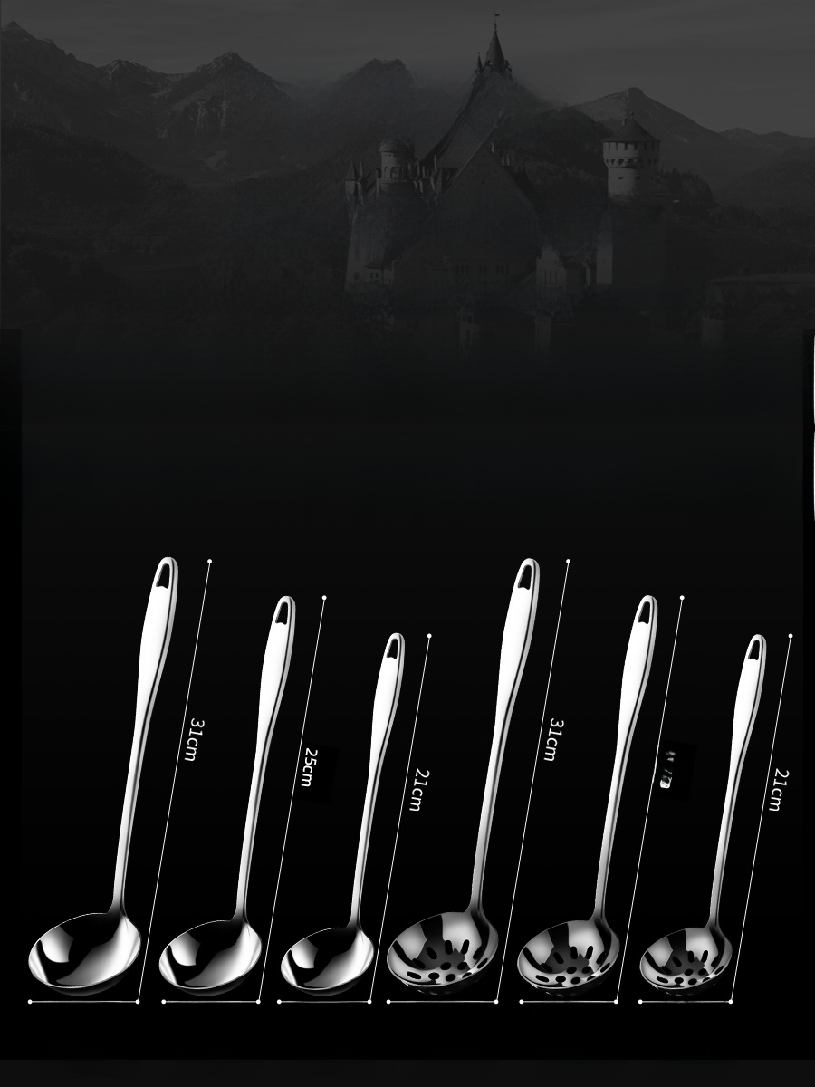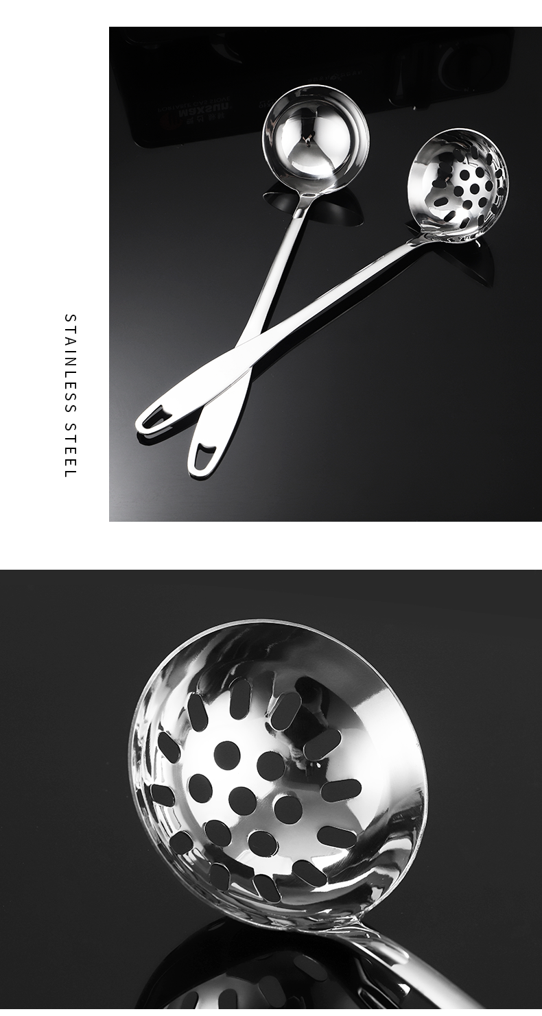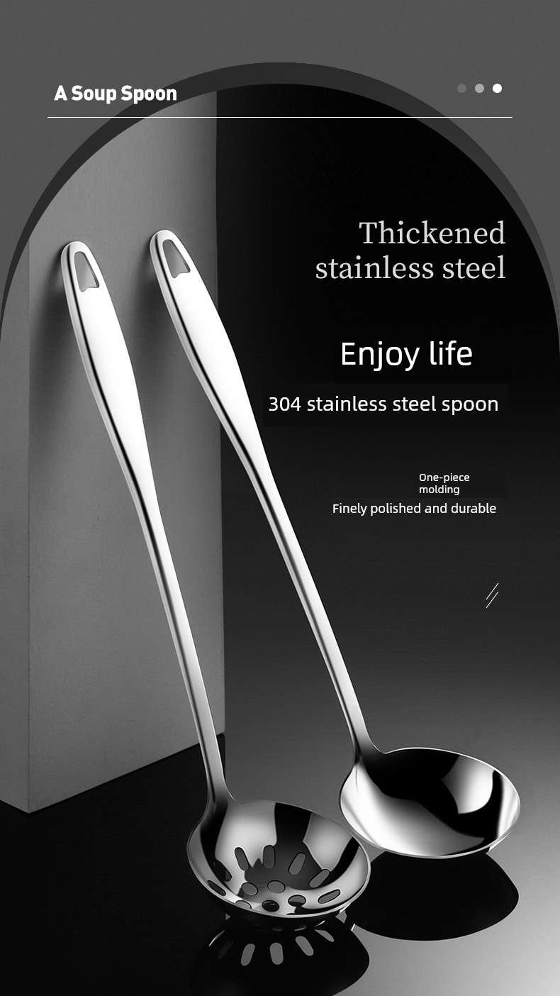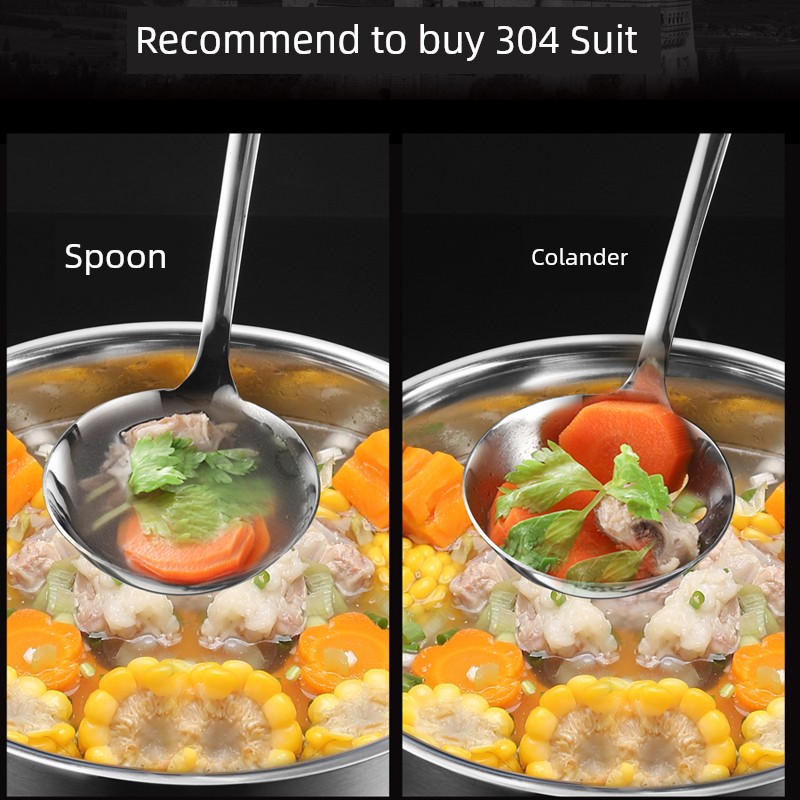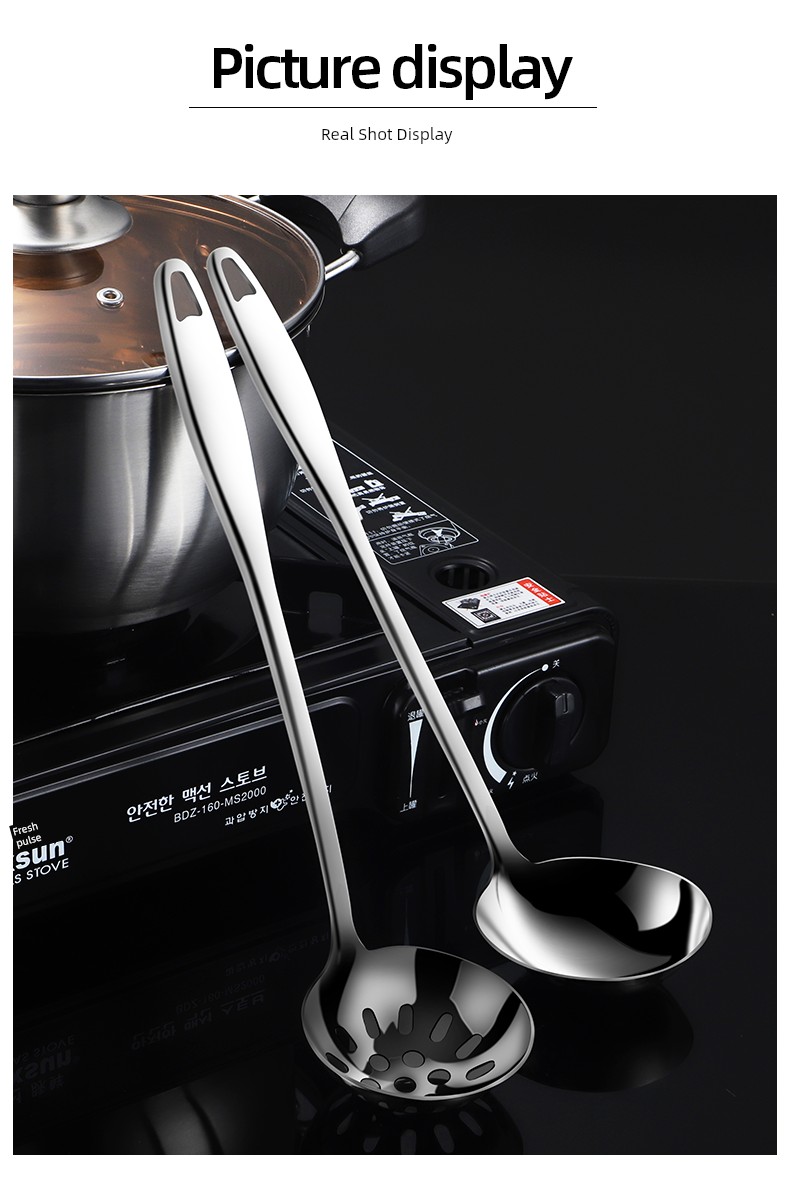 For Home 304 Food Grade Stainless Steel Long Handle Hot Pot Spoon Soup Spoon Colander Suit Large Soup Spoon Fried