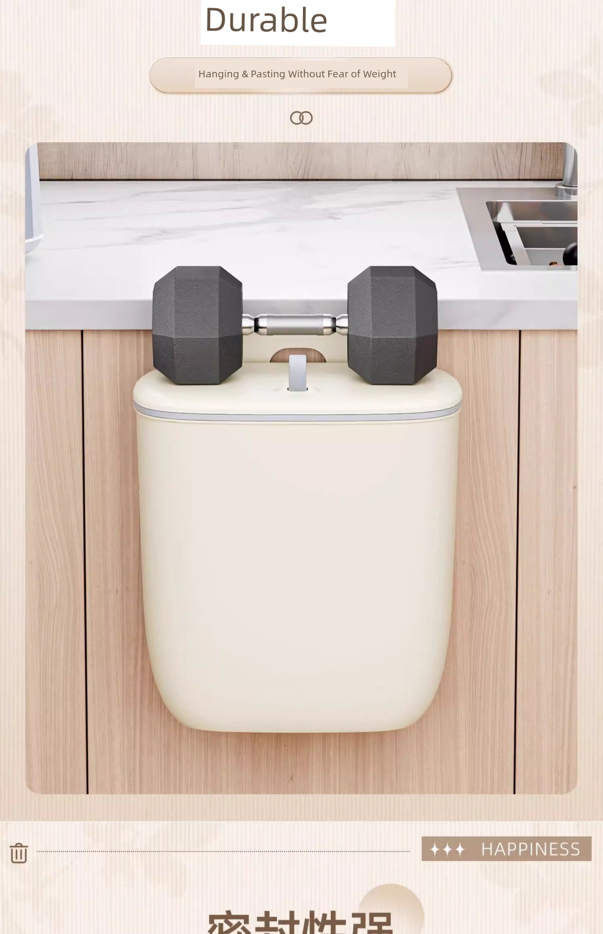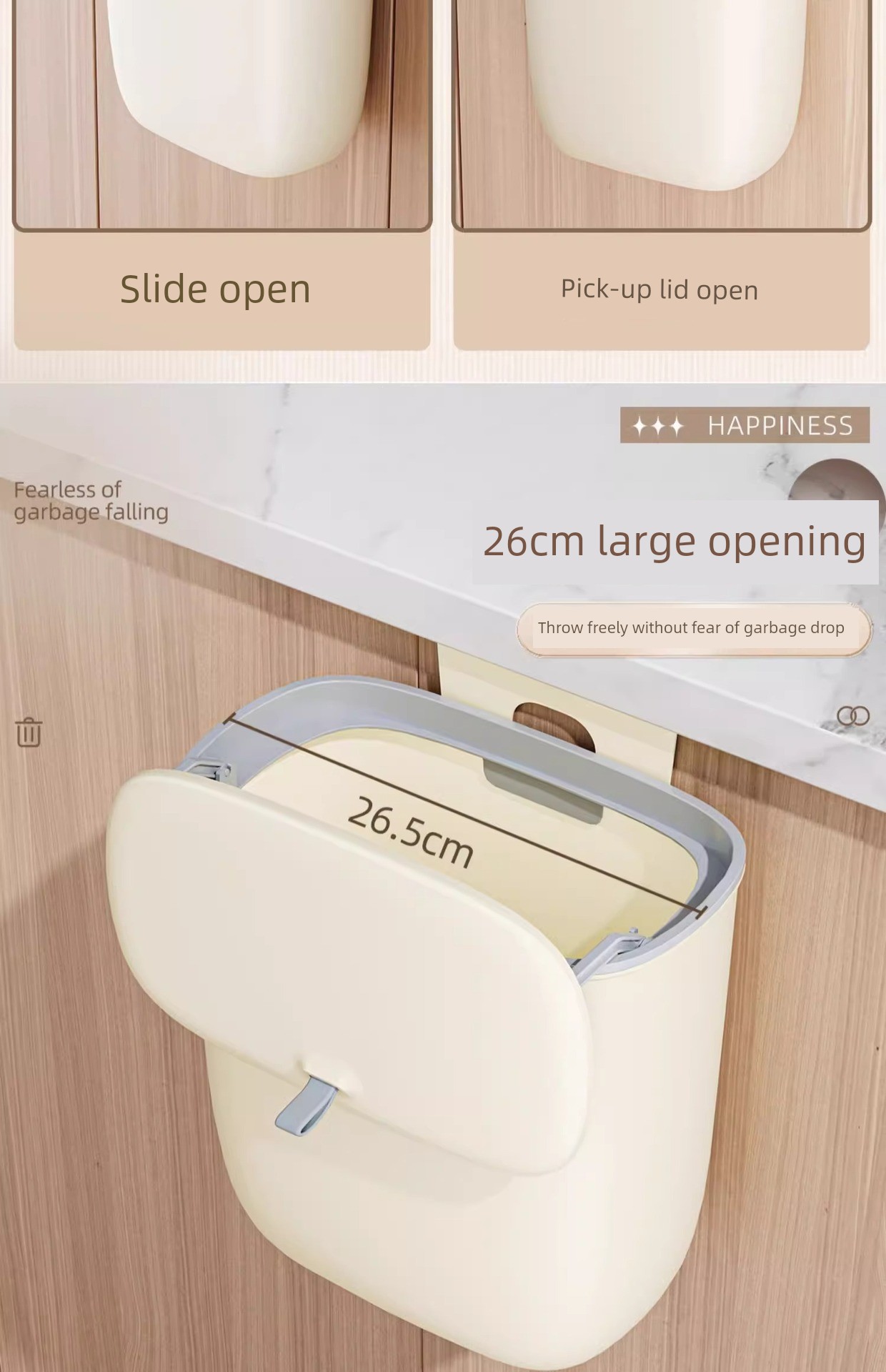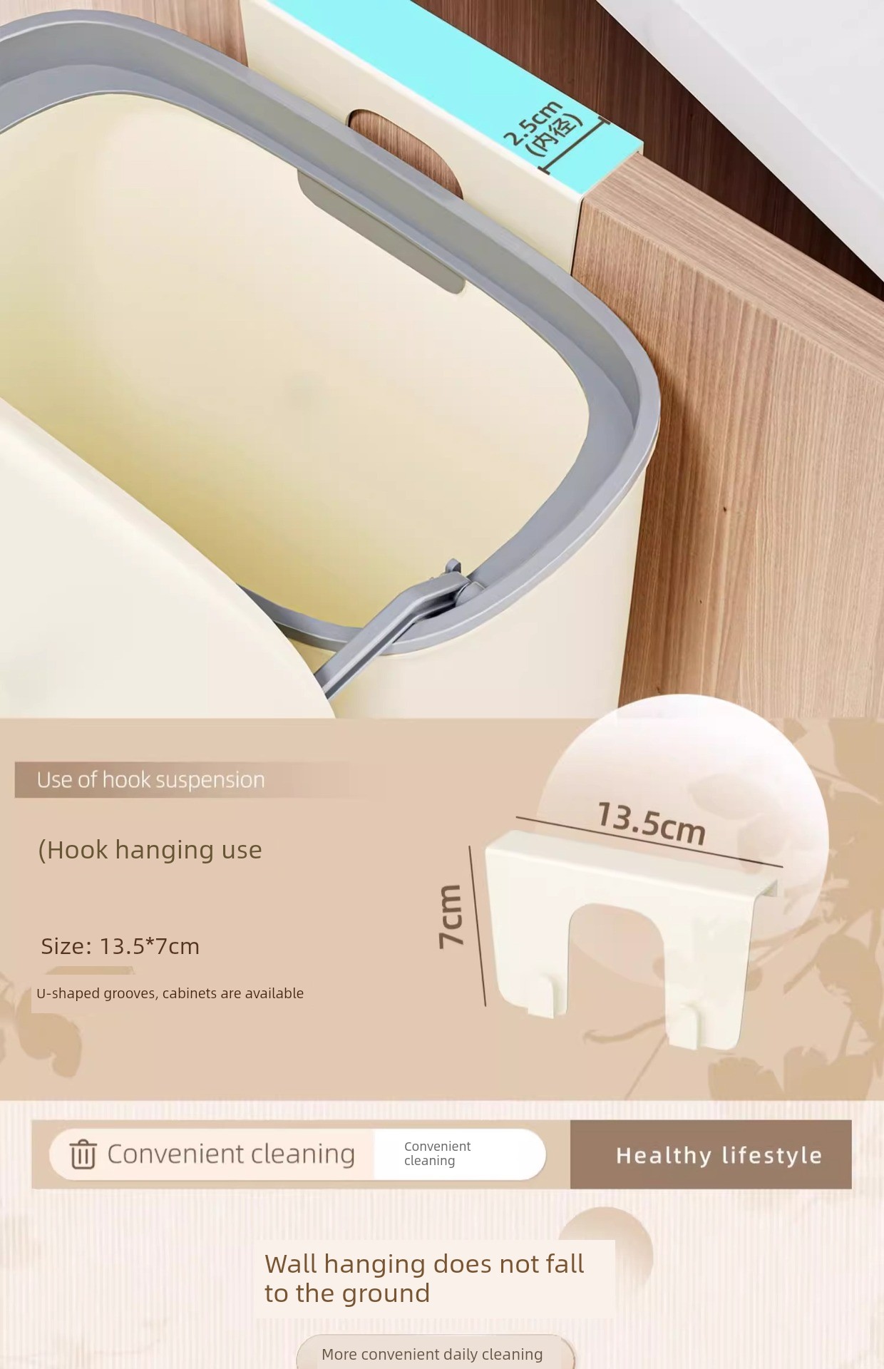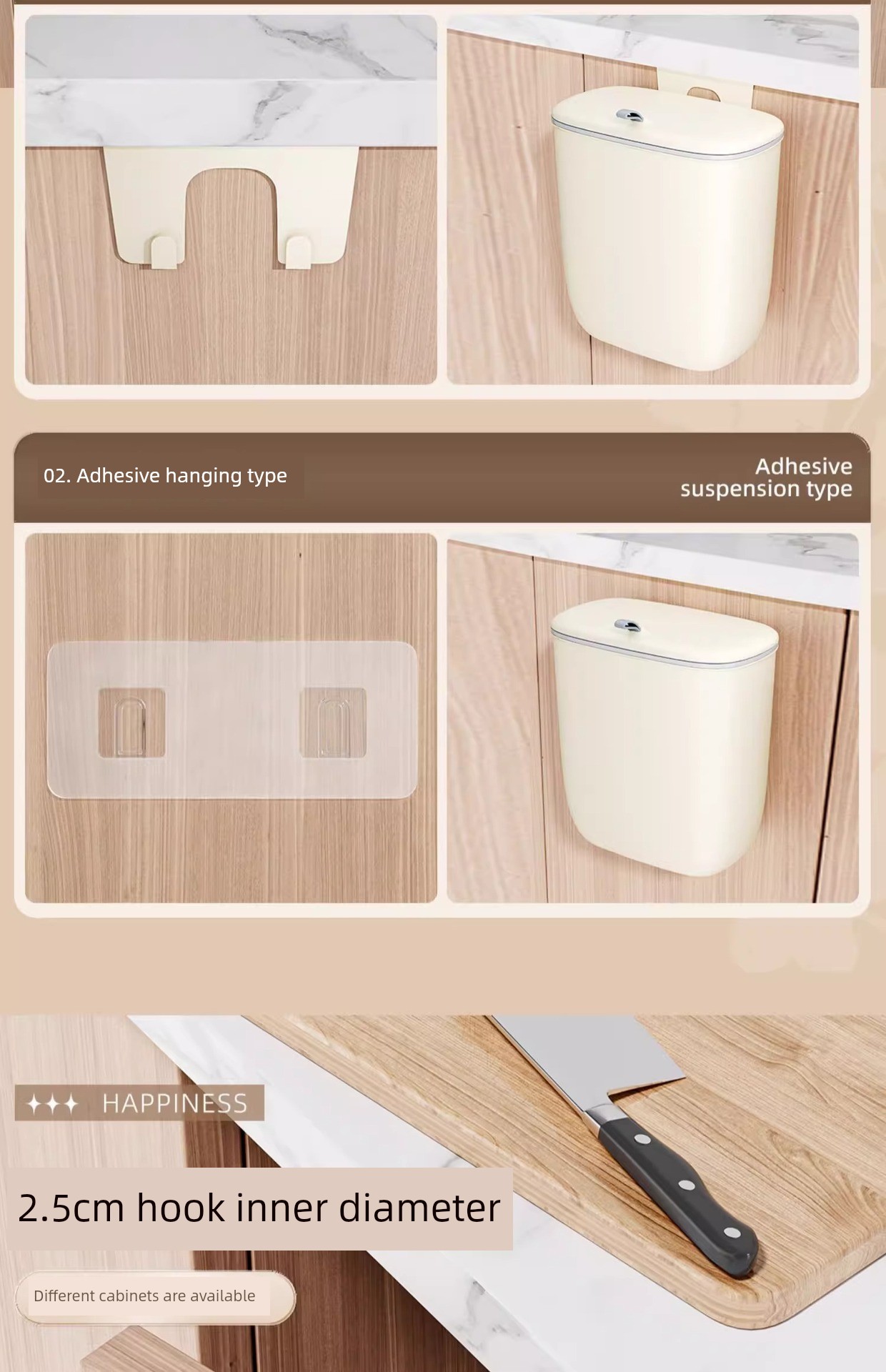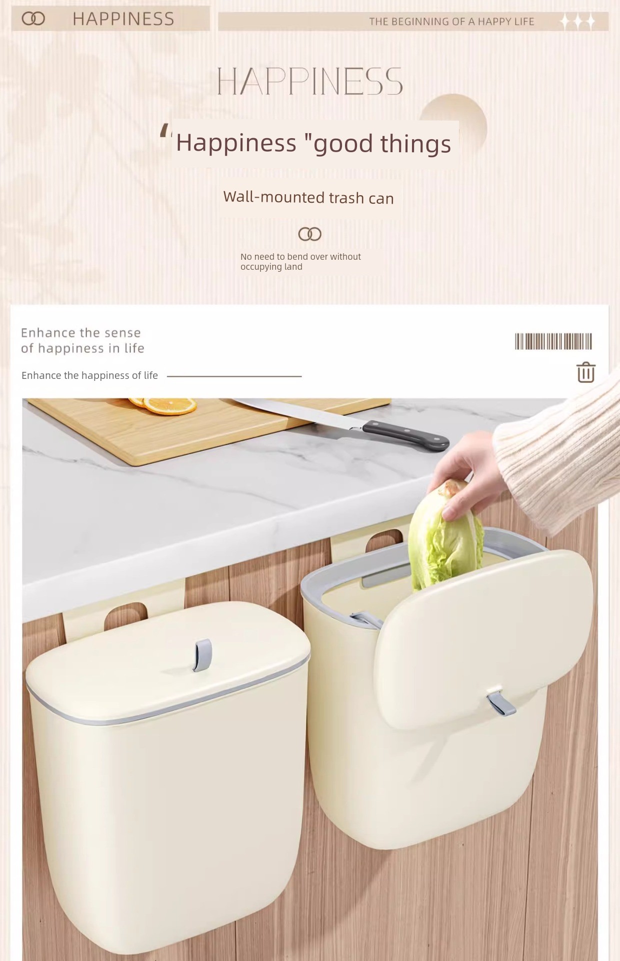 For Home Kitchen Special Wall-Mounted Trash Can Bathroom Punch-Free Hanging Cream Style Large Capacity with Lid Wastebasket