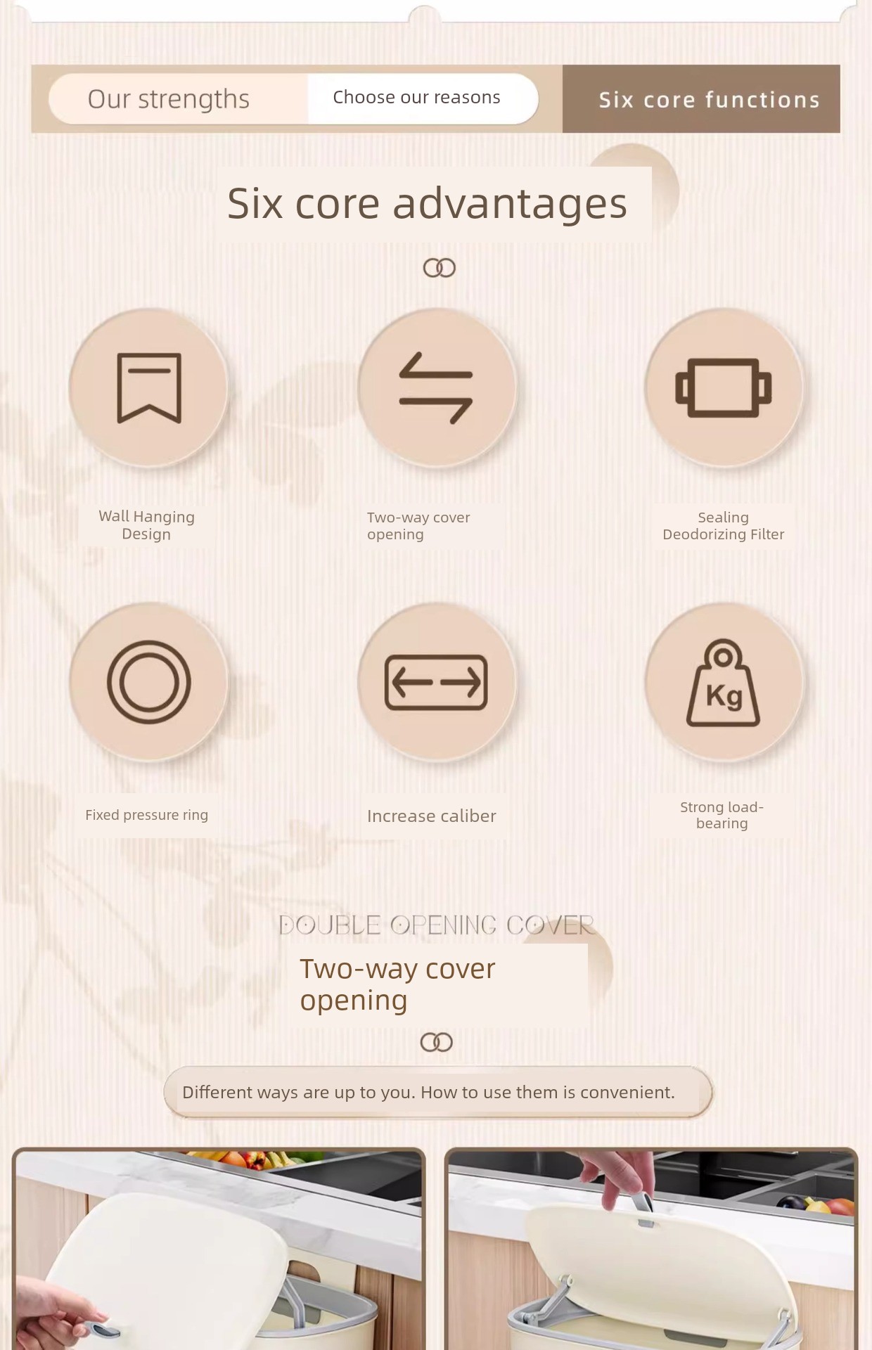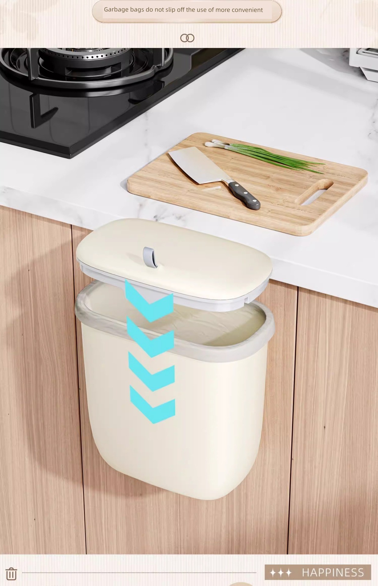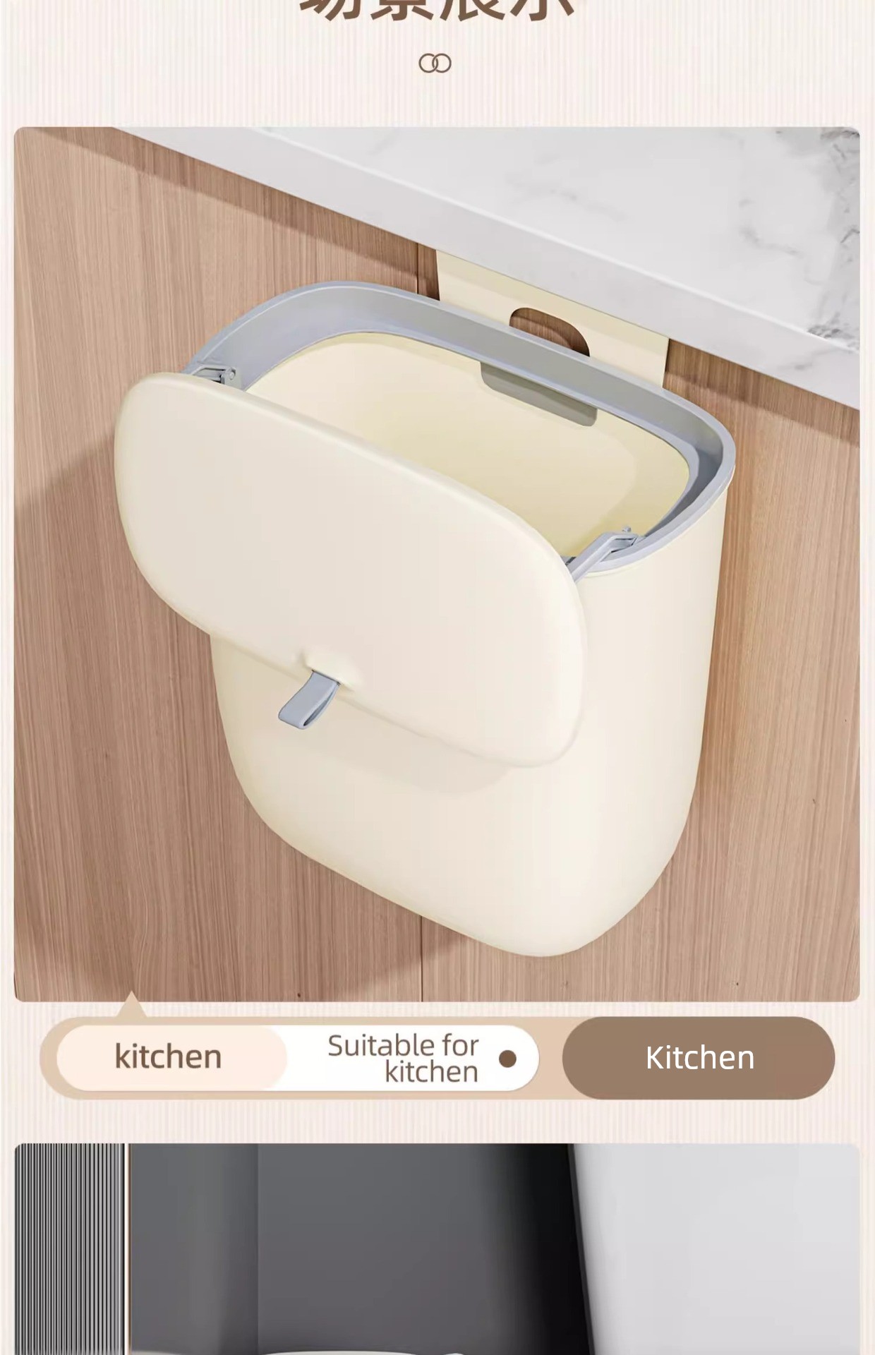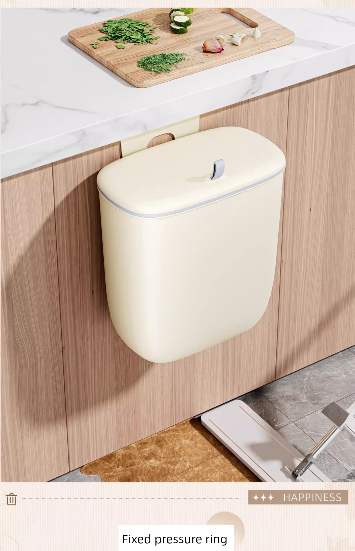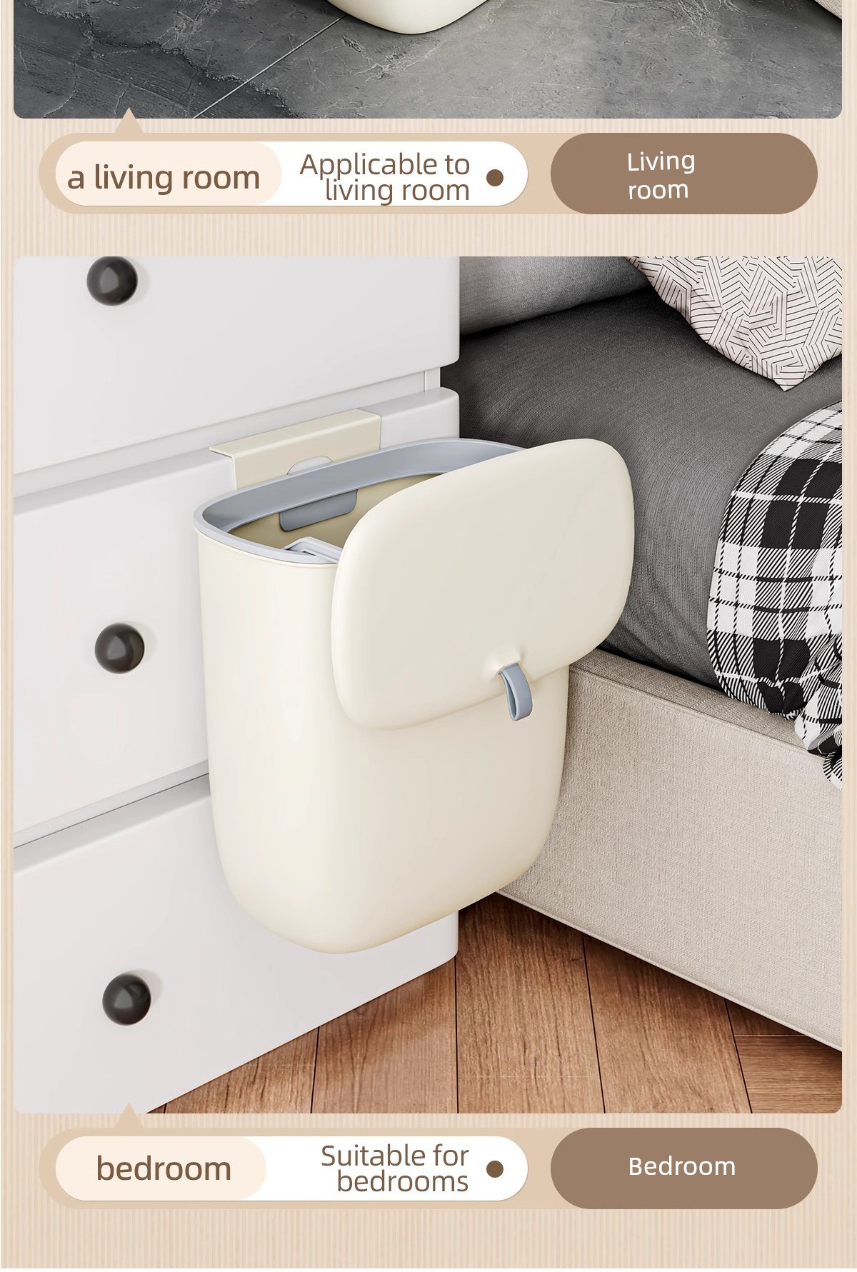 For Home Kitchen Special Wall-Mounted Trash Can Bathroom Punch-Free Hanging Cream Style Large Capacity with Lid Wastebasket