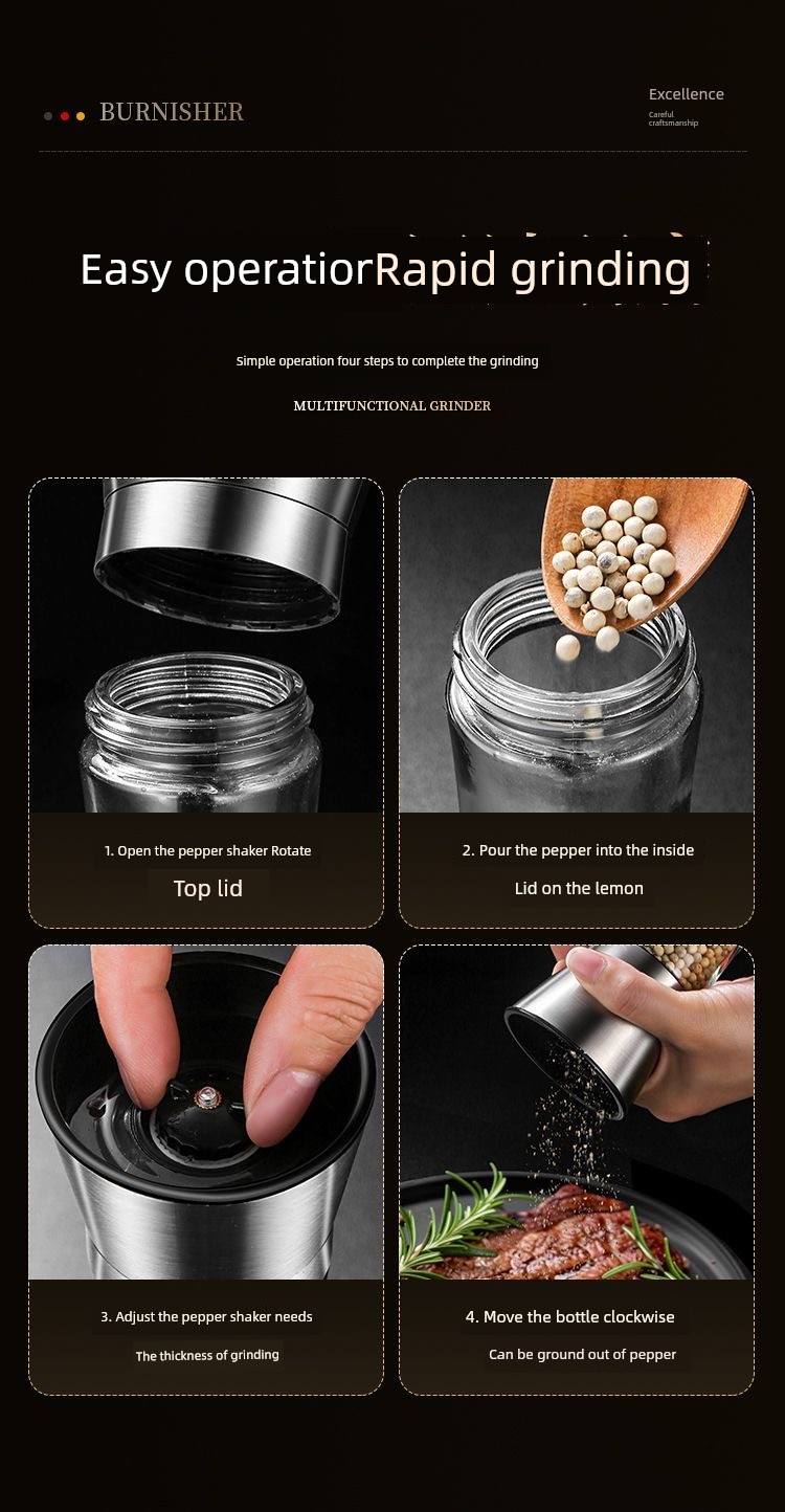 For Home Manual Freshly Ground Sea Salt White Pepper Stainless Steel