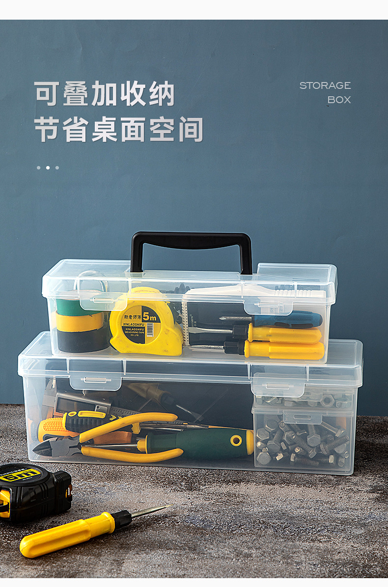 For Home Multifunctional Hardware Toolbox Transparent Hand Tool Box Wrench Screw Accessory Box Spare Parts Box
