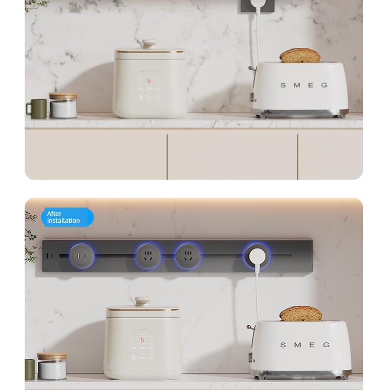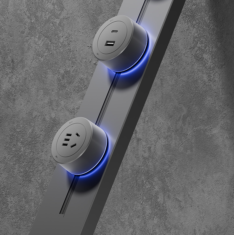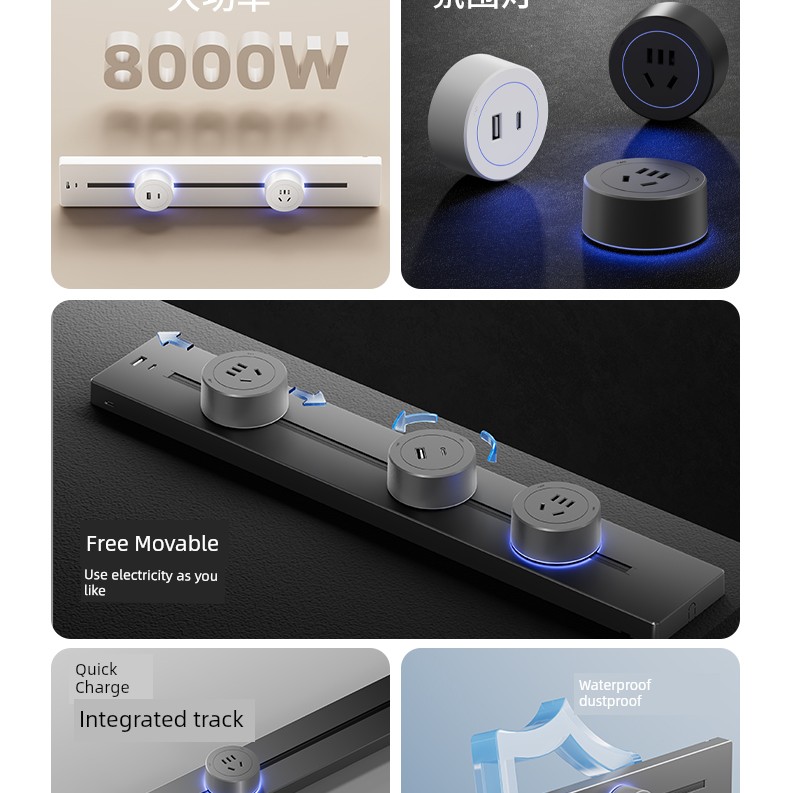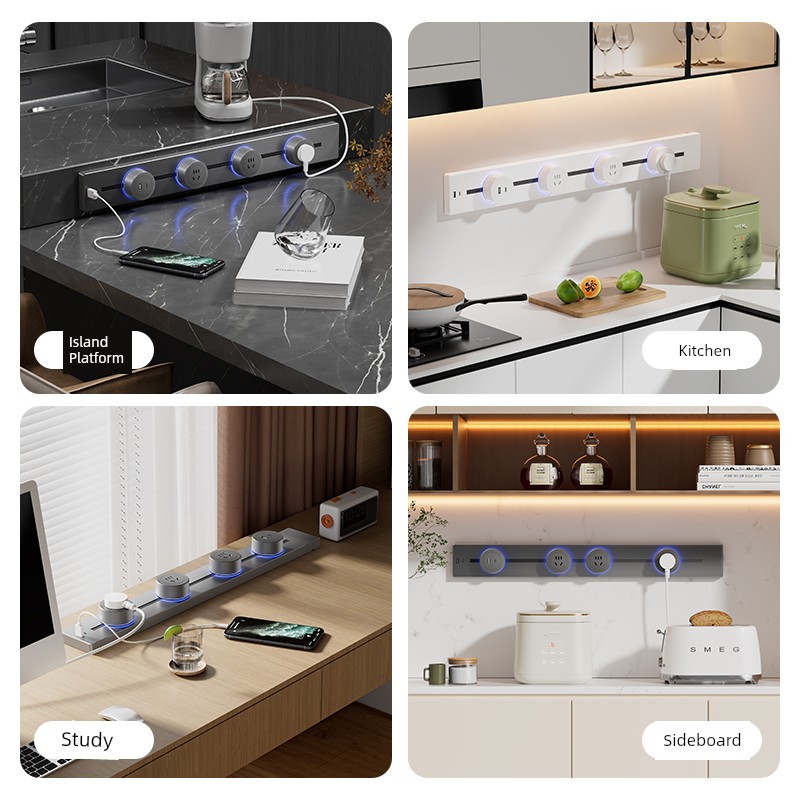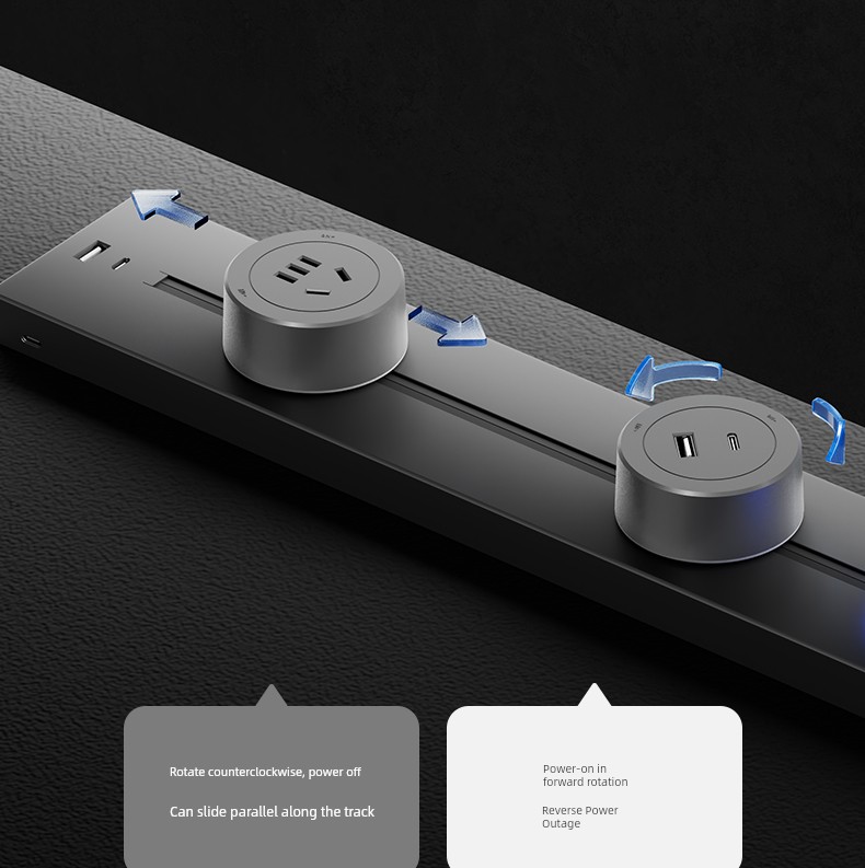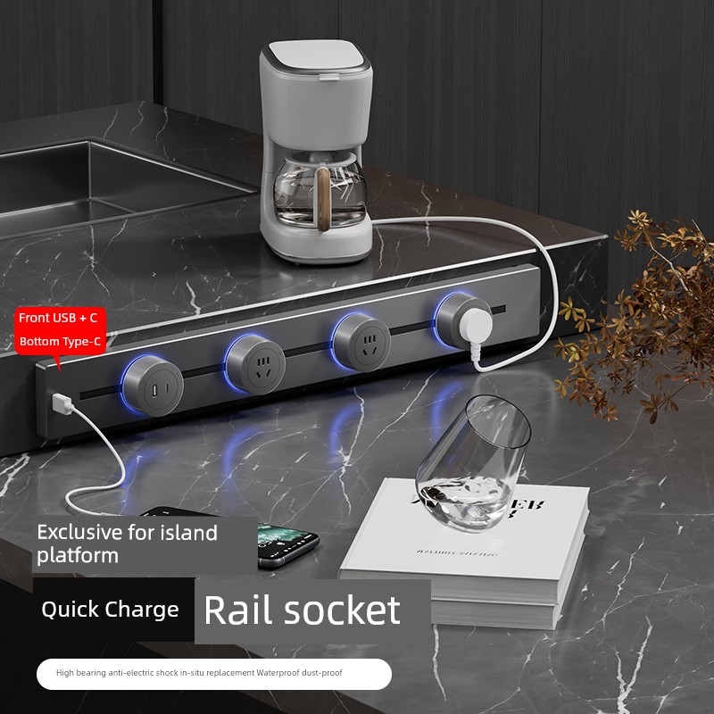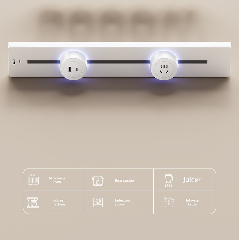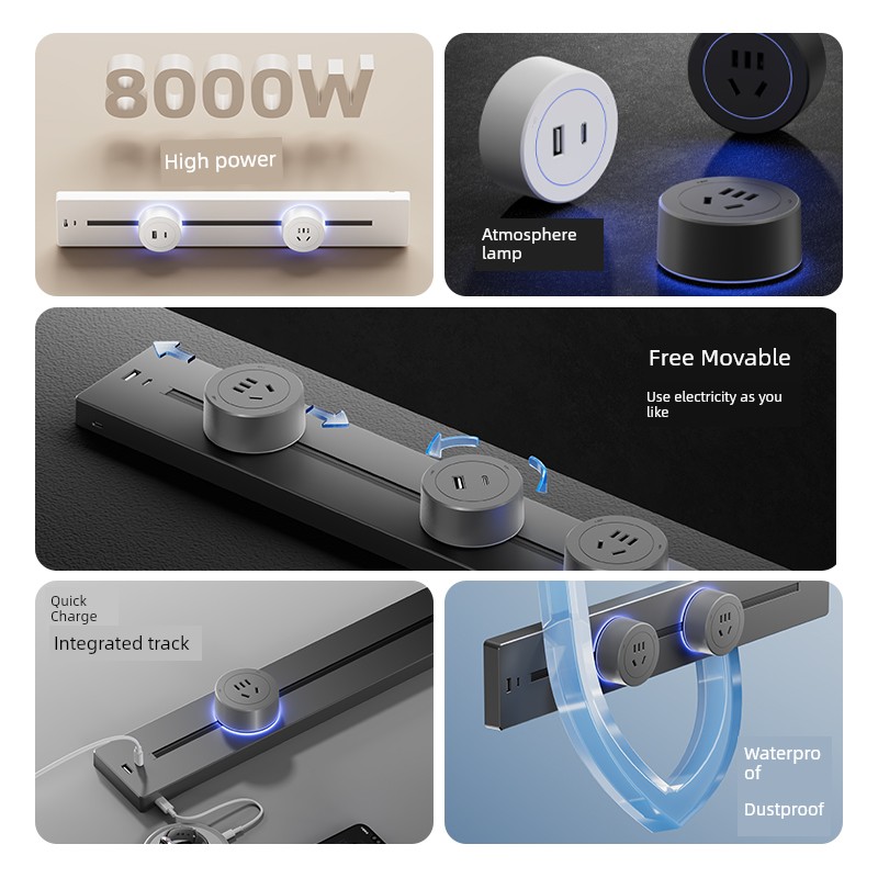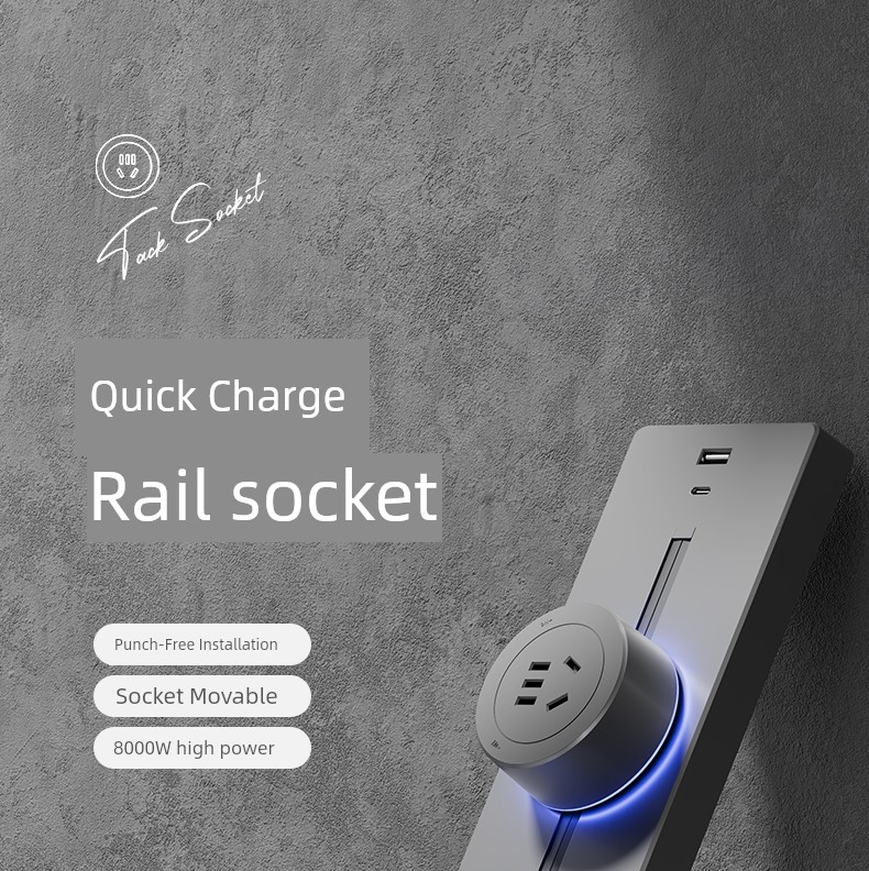 For Home Track Socket Kitchen Special Sideboard Cabinet Movable Slide Rail Magnetic Suction Surface Mounted Power Strip with Fast Charging USB Socket