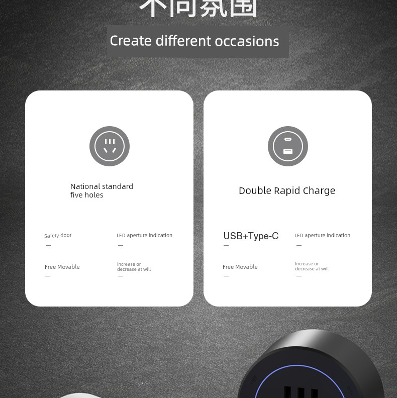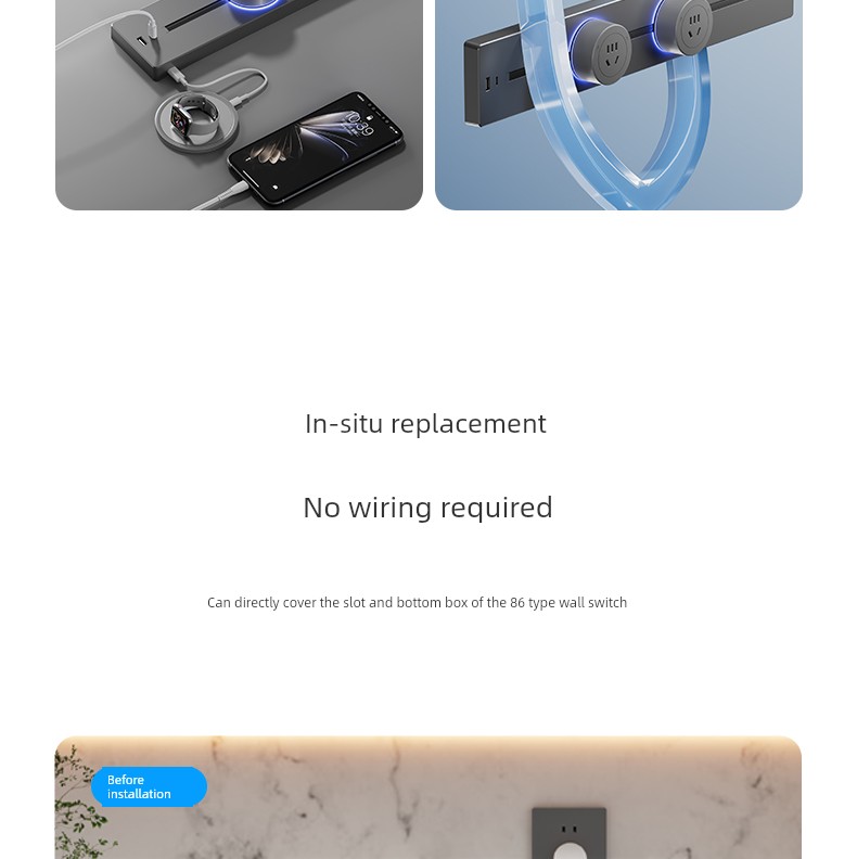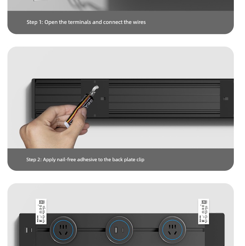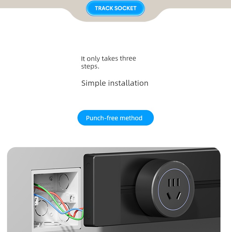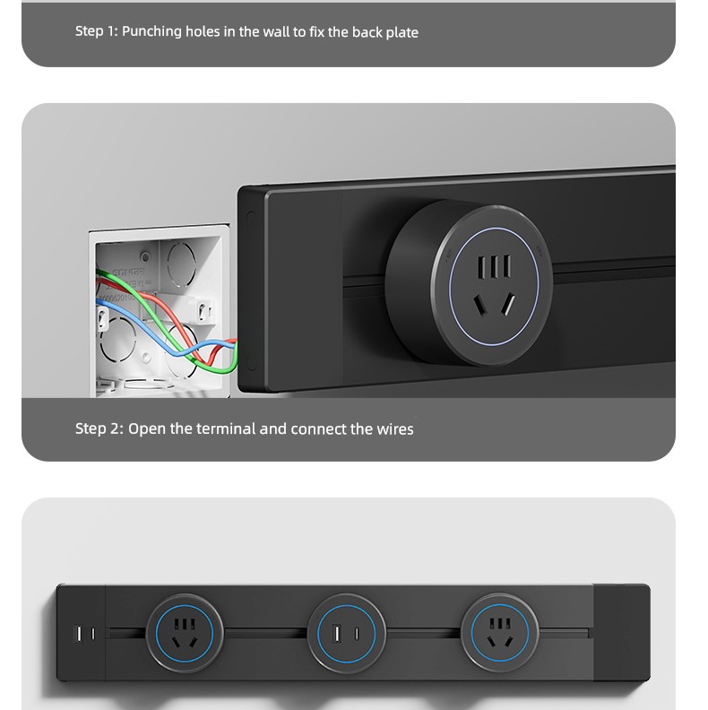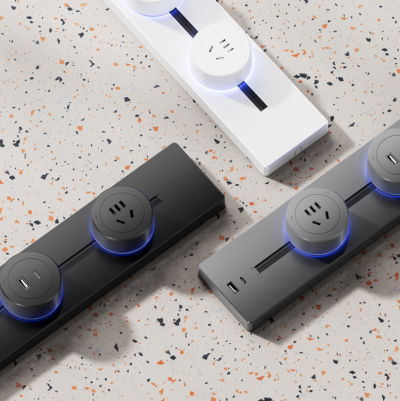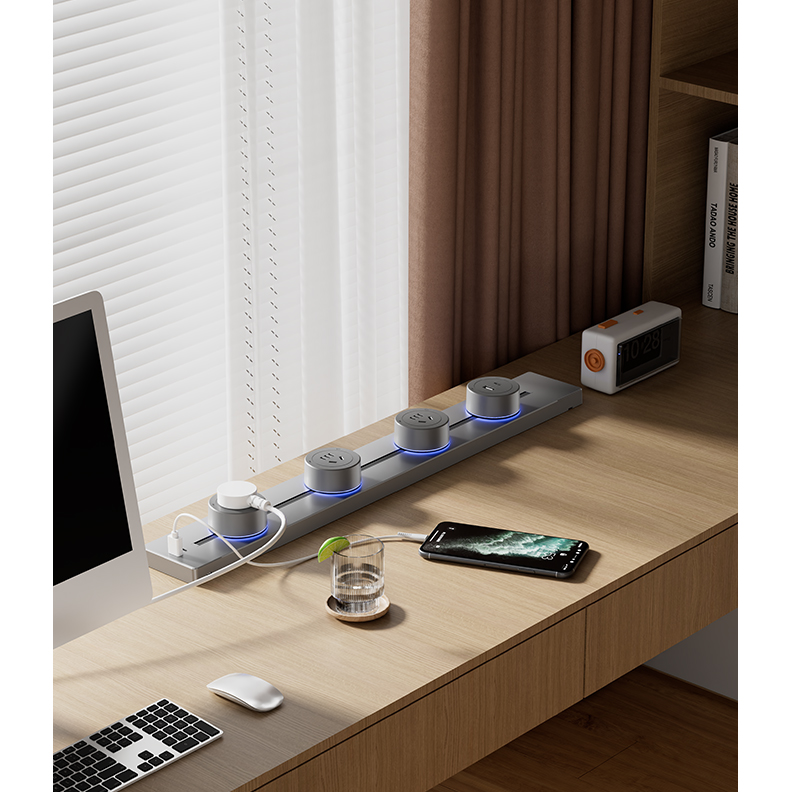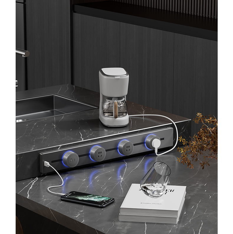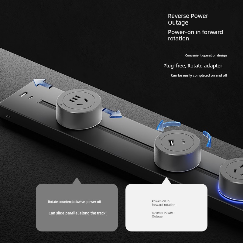 For Home Track Socket Kitchen Special Sideboard Cabinet Movable Slide Rail Magnetic Suction Surface Mounted Power Strip with Fast Charging USB Socket