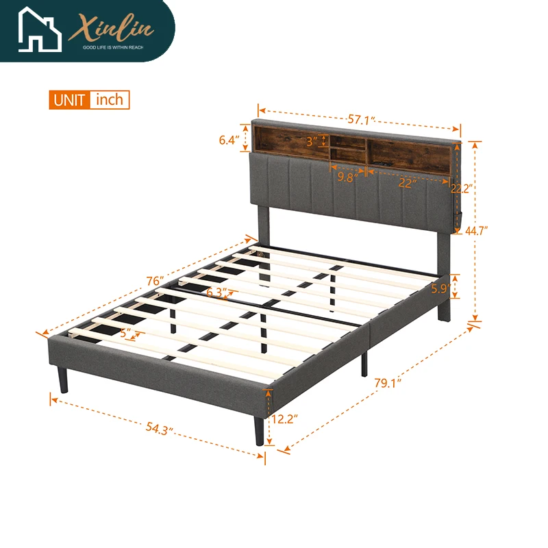 * Skin Friendly Fabric] This upholstered bed is made of skin-friendly linen fabric, which is comfortable, wear-resistant and