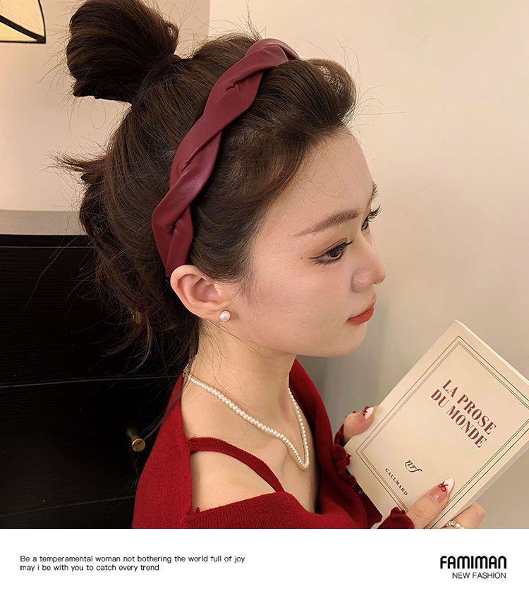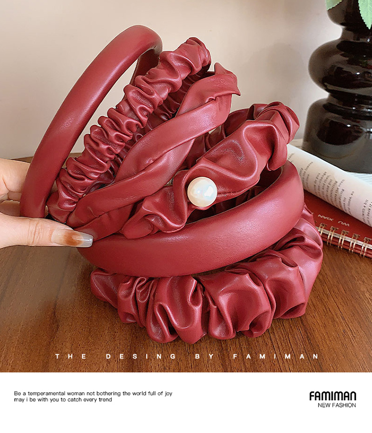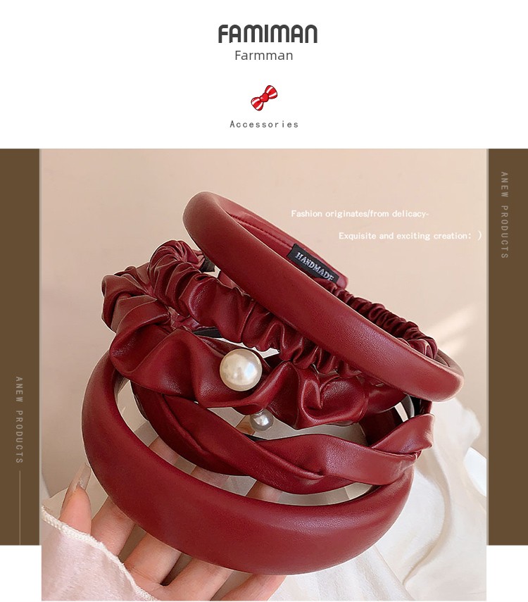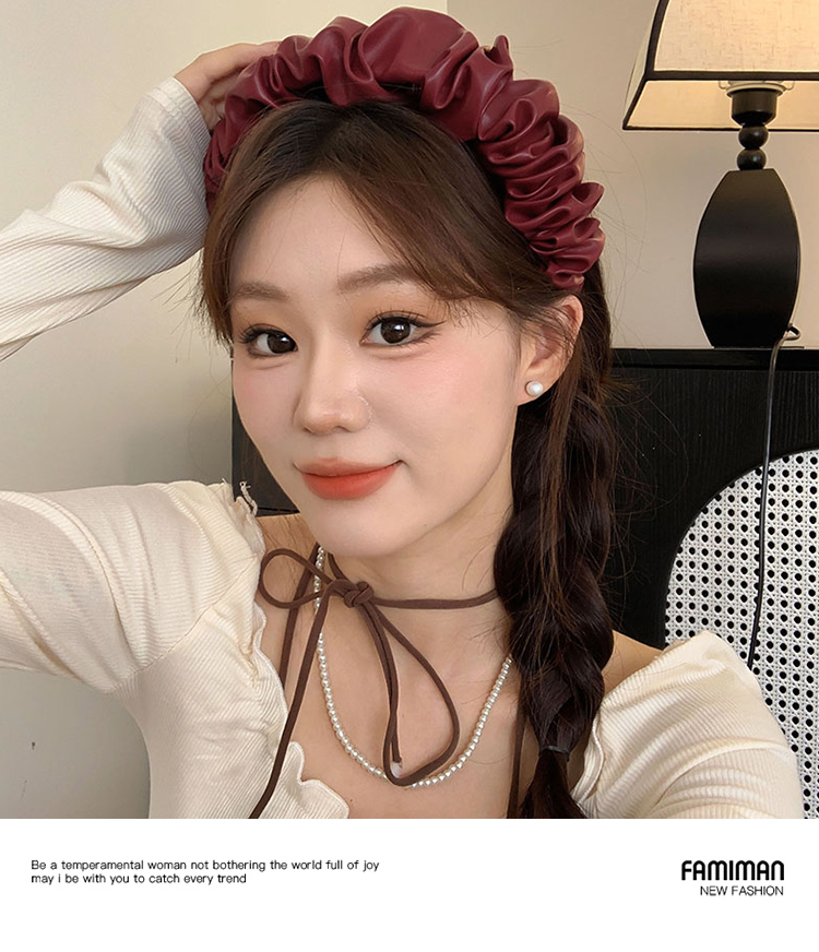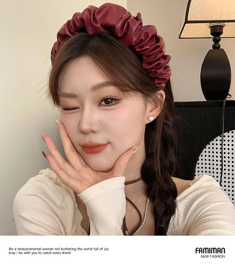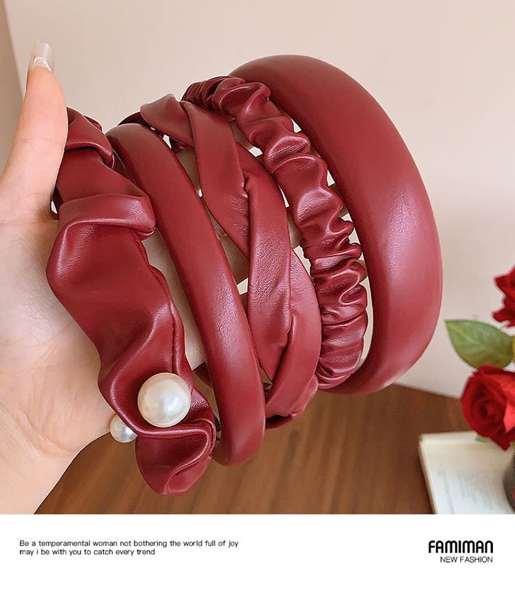 French Style Retro Red Leather Headband Female 2024 New Arrival High Skull Top Hair Fixer out Headband Hairpin for Hair Washing Headdress