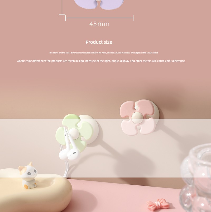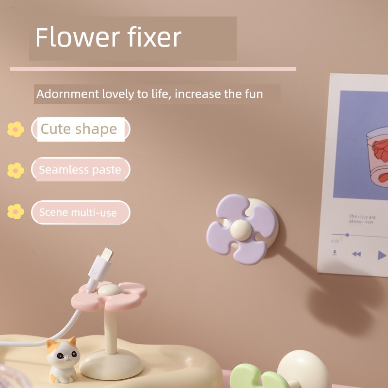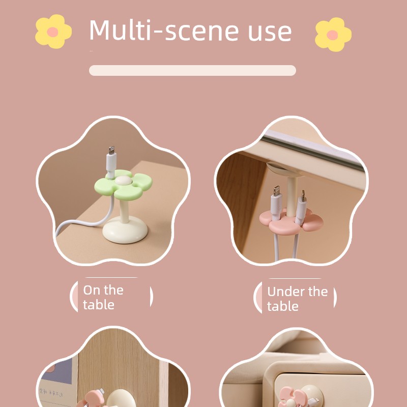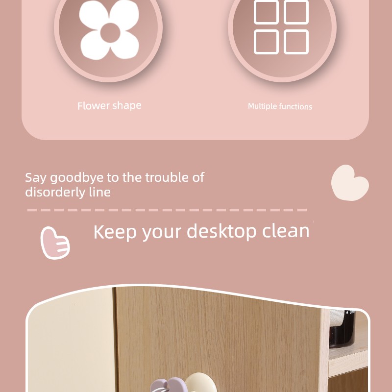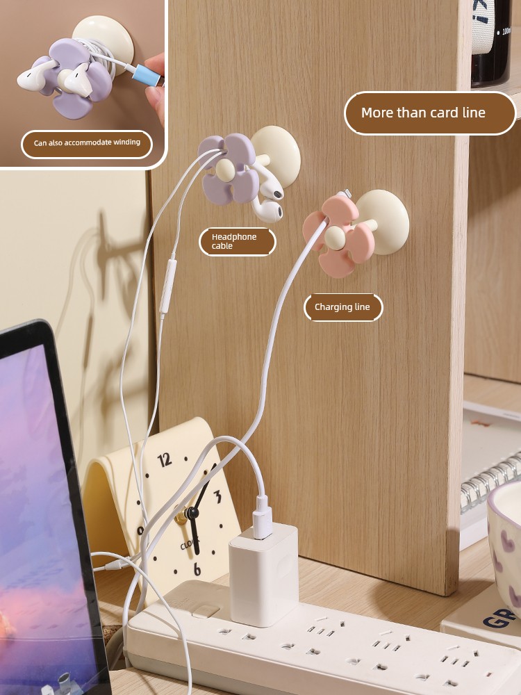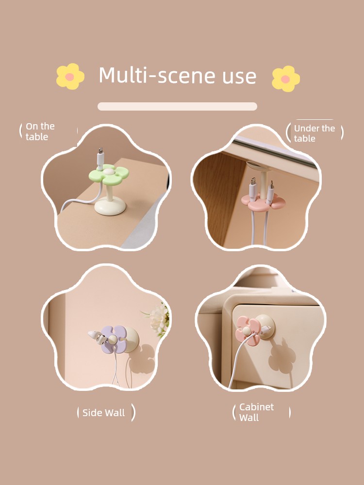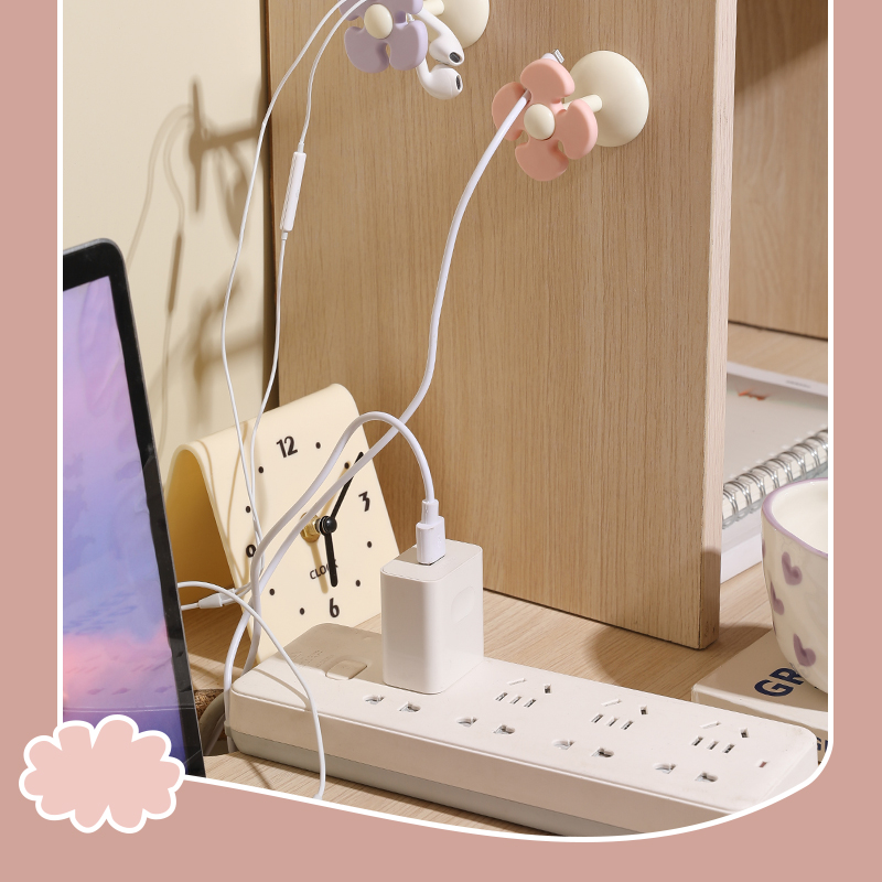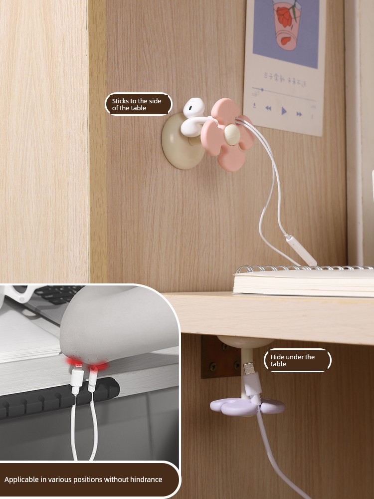 Fresh Flower Cord Manager Data Cable Neutral Student Dormitory Seamless No-Punch Sticky Hook Desktop Storage Fixed