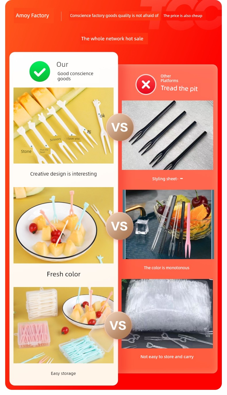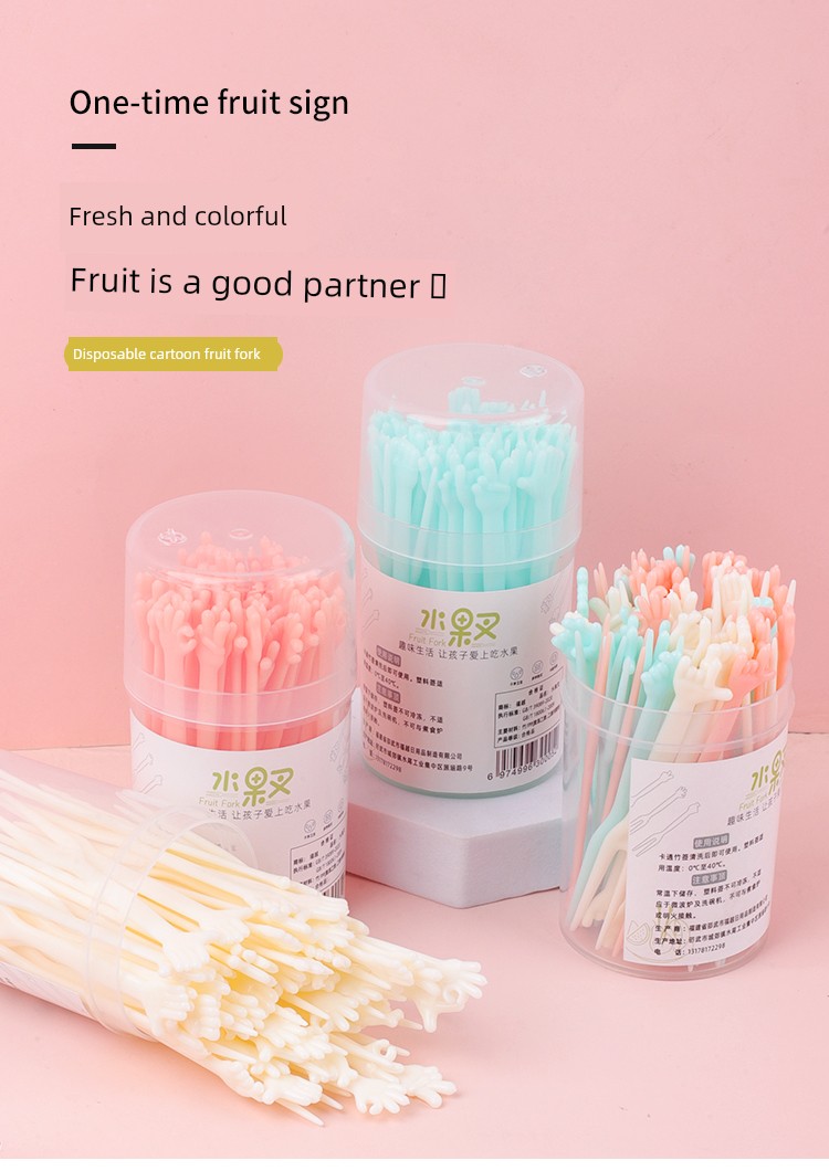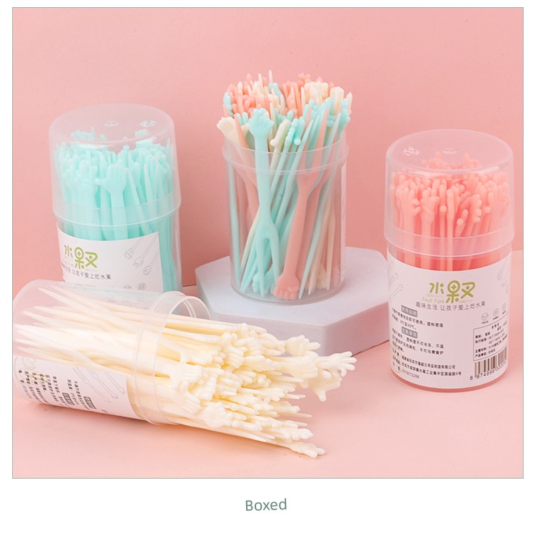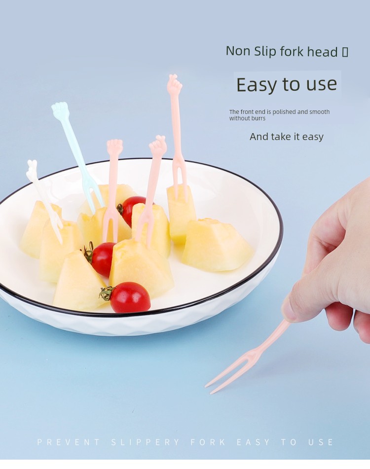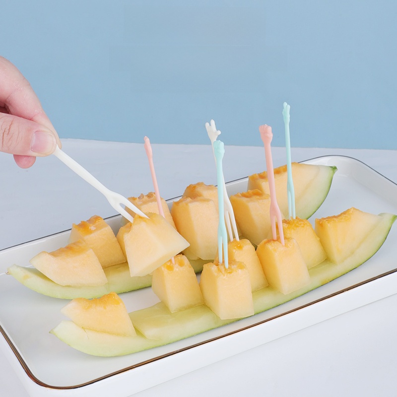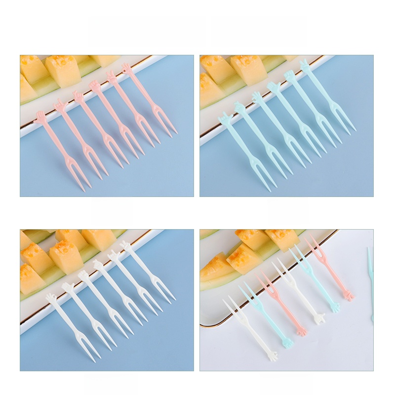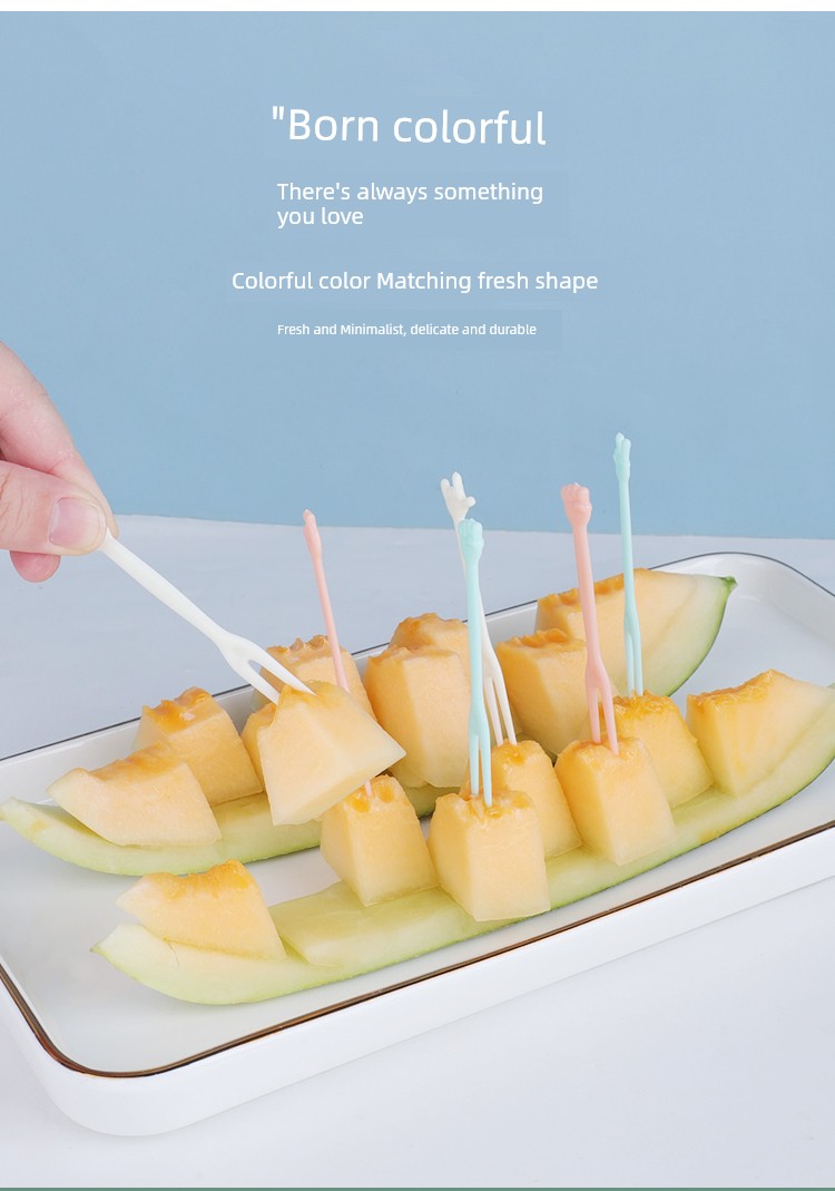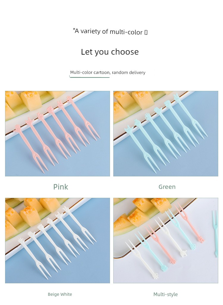 Fruit Fork Set Fruit Toothpick Disposable Plastic Two Teeth For Home Eat Fruit Cake Dessert Fork Dessert Small Fork