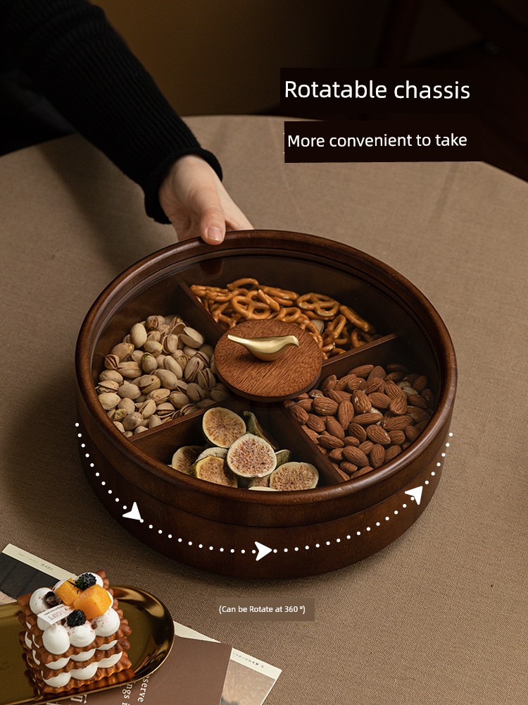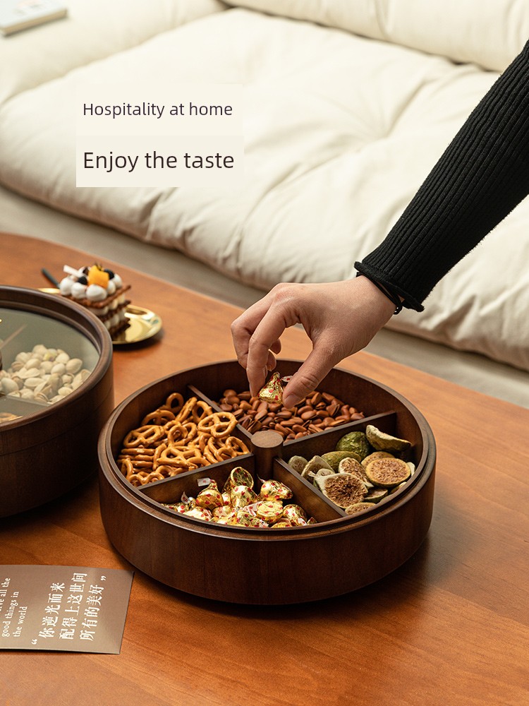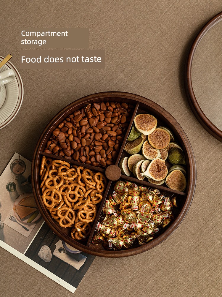 Fruit Plate For Home Living Room Coffee Table Solid Wood Dried Fruit Tray New Year Partitioned Candy Tray Snack Nuts Sealed Storage Box