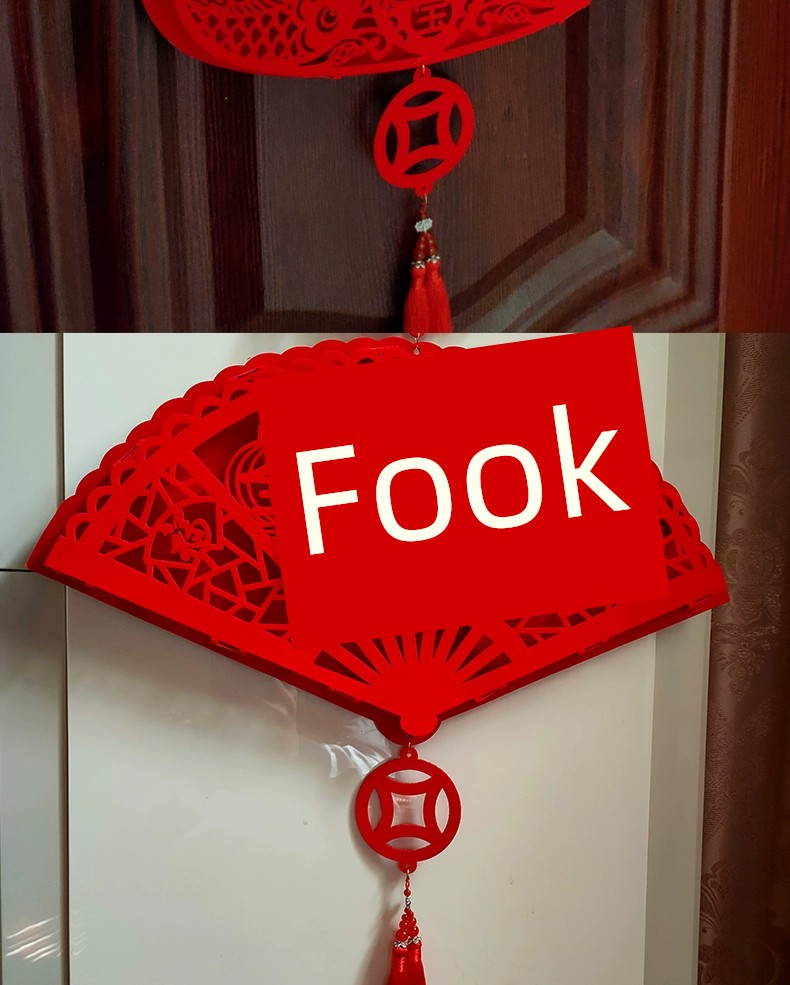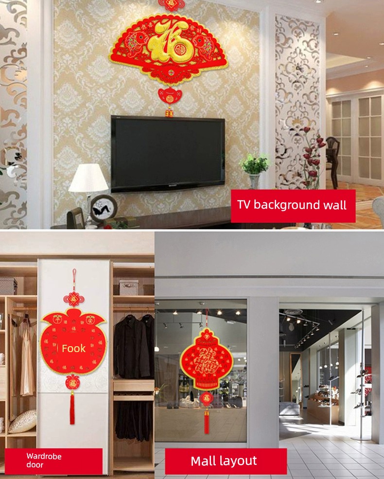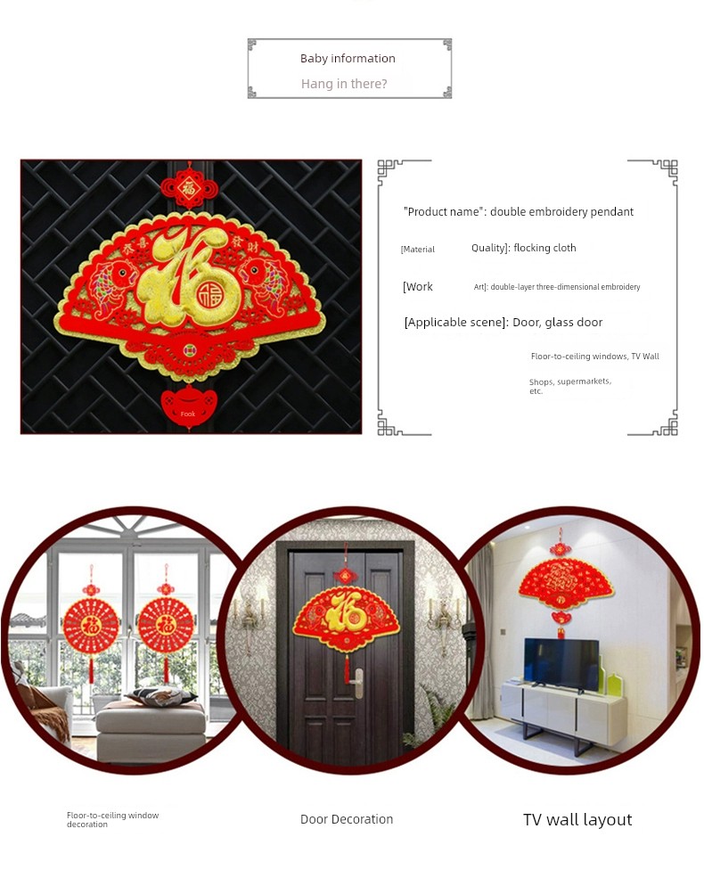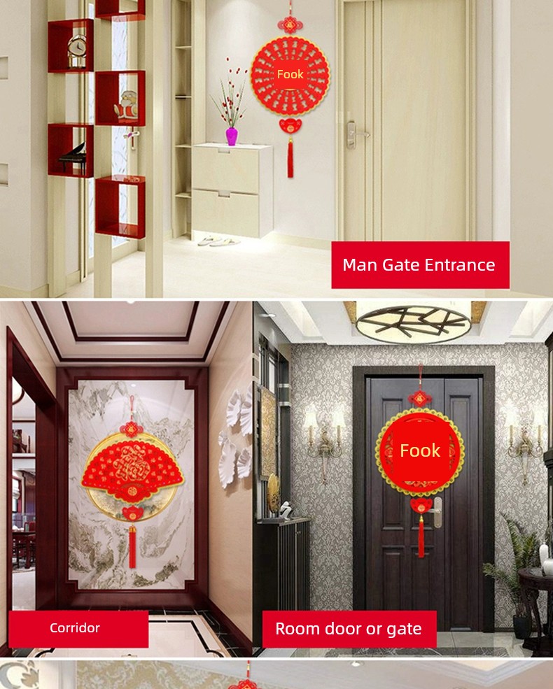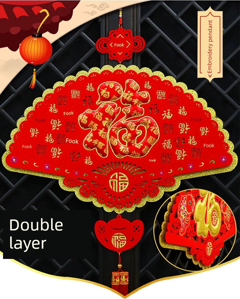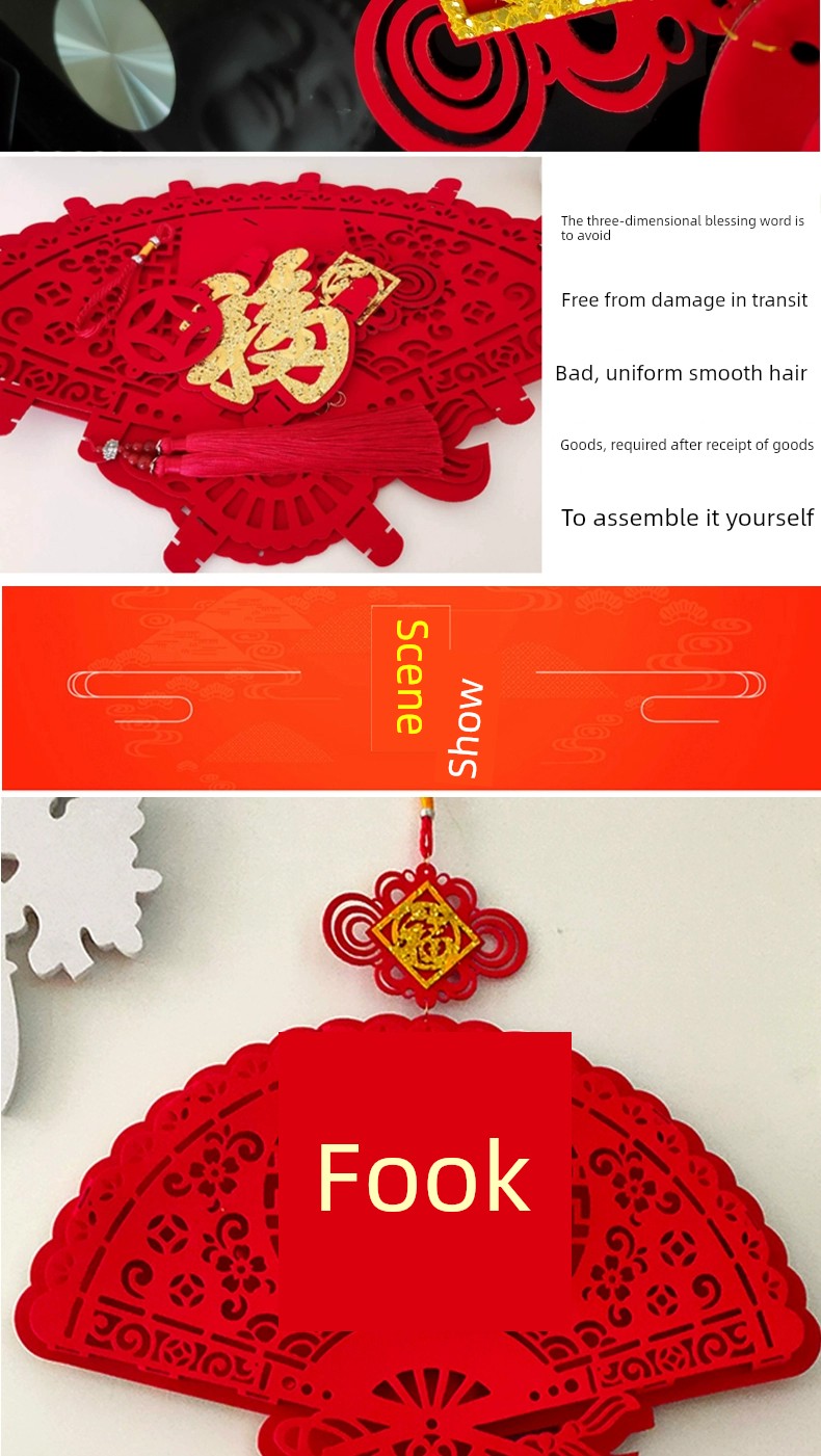 Fu Chinese Knot Hanging Decoration Housewarming New Year Living Room Decoration New Year Door Pendant Spring Festival Fan-Shaped Wall Painting Wall.