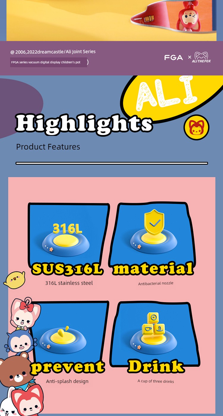 Fuguang Children's Thermos Mug Male and Female Students Food Grade 316L Water Cup School Dedicated Cup Water Kettle Kindergarten