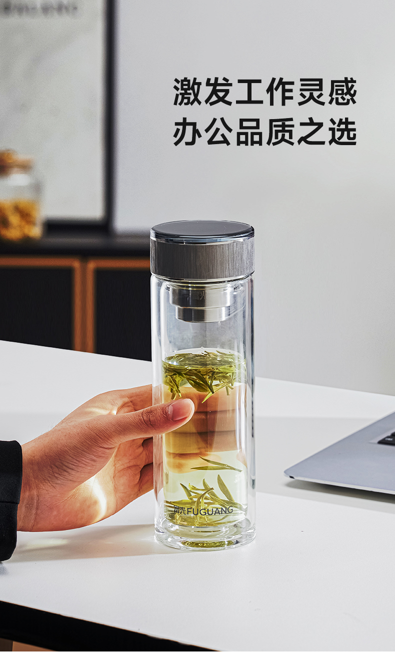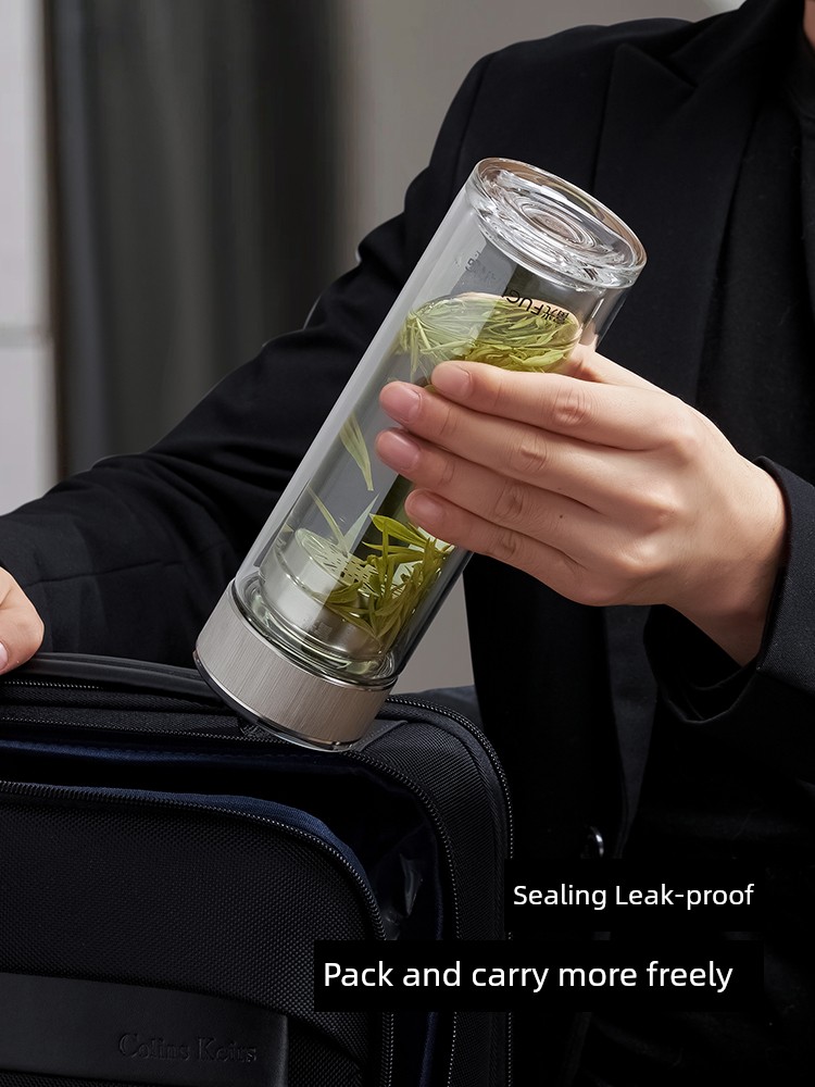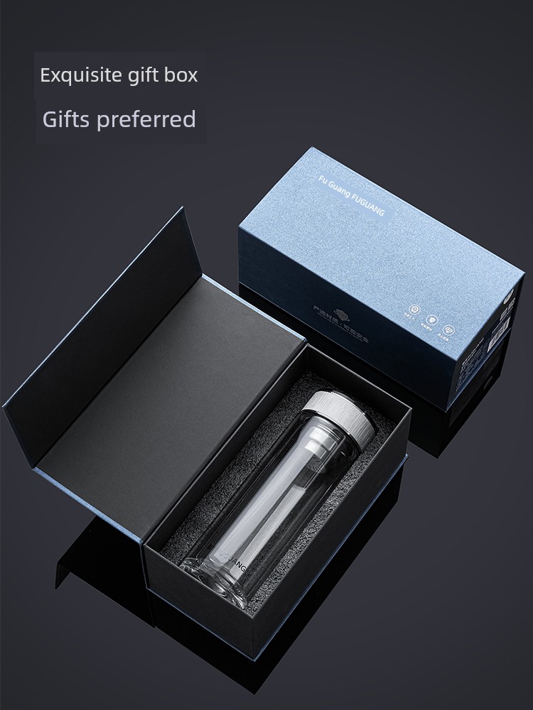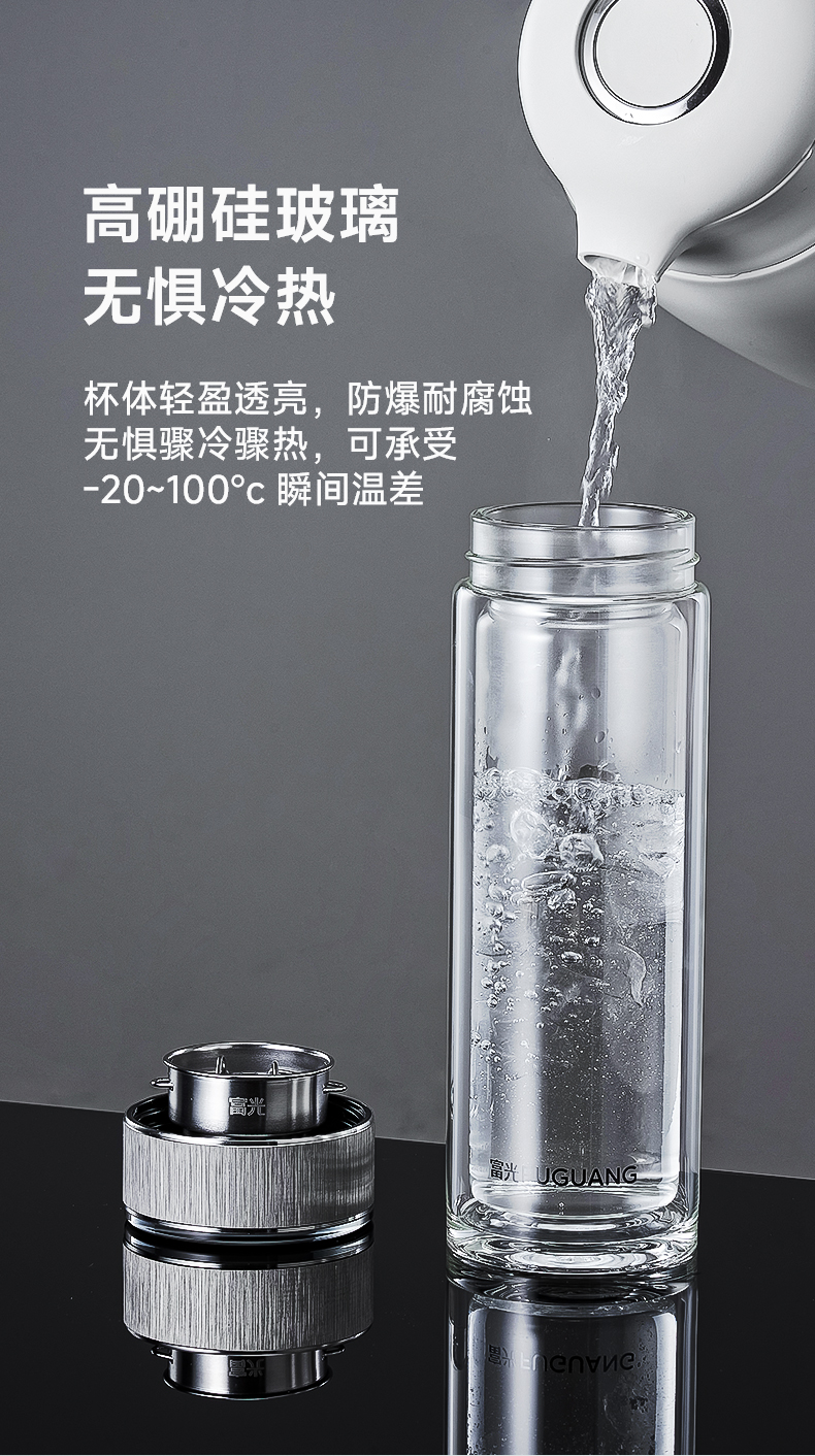 Fuguang Double Layer High Borosilicate Glasses Men Tea Water Separation Portable Tea Brewing Cup Business High-Grade Water Cup 2024