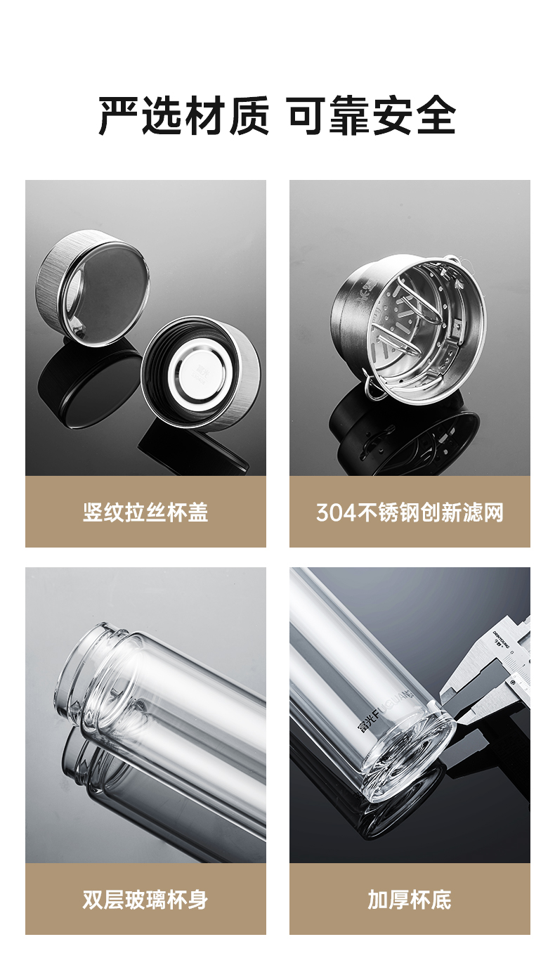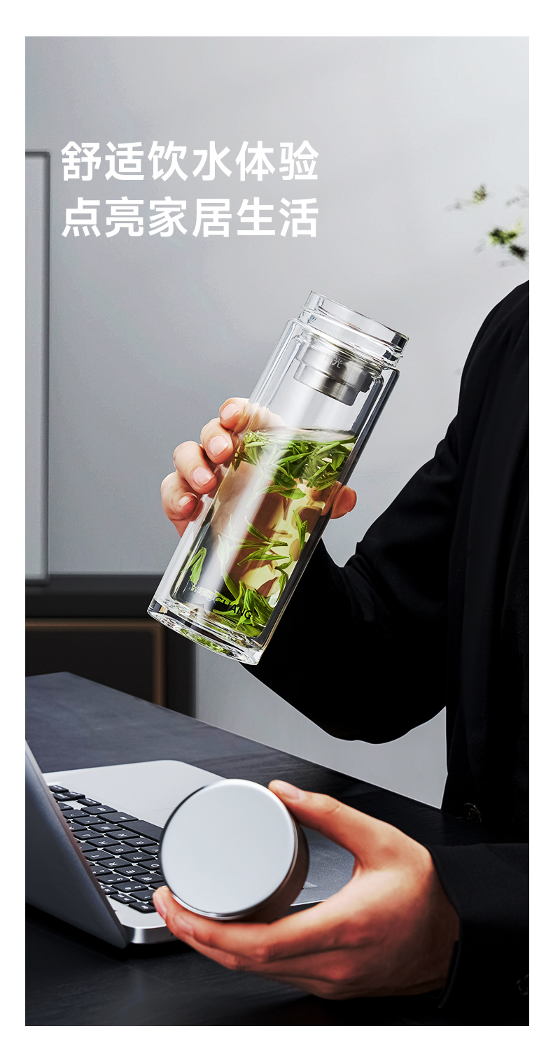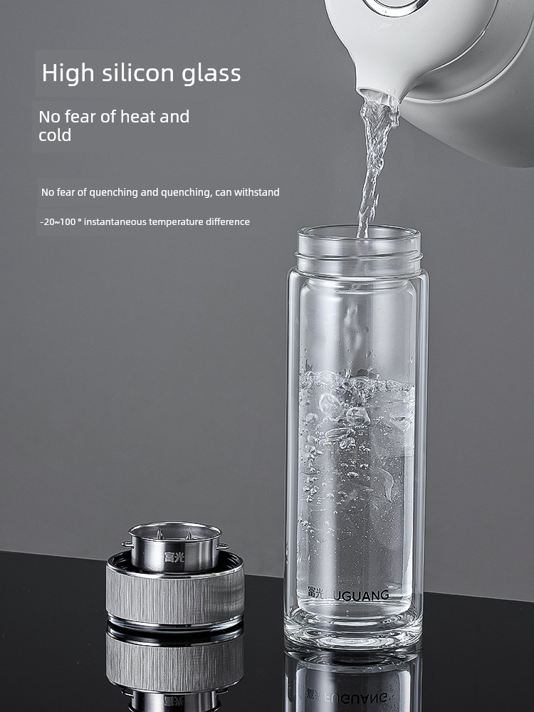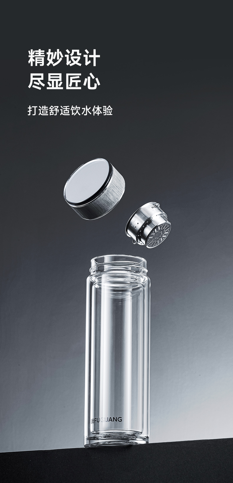 Fuguang Double Layer High Borosilicate Glasses Men Tea Water Separation Portable Tea Brewing Cup Business High-Grade Water Cup 2024