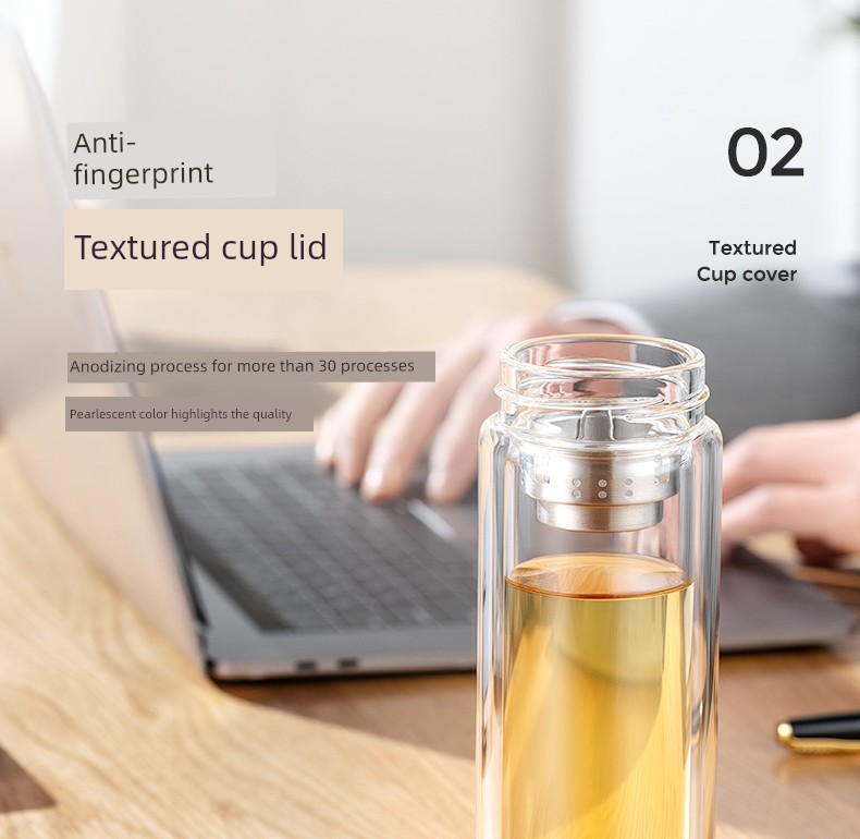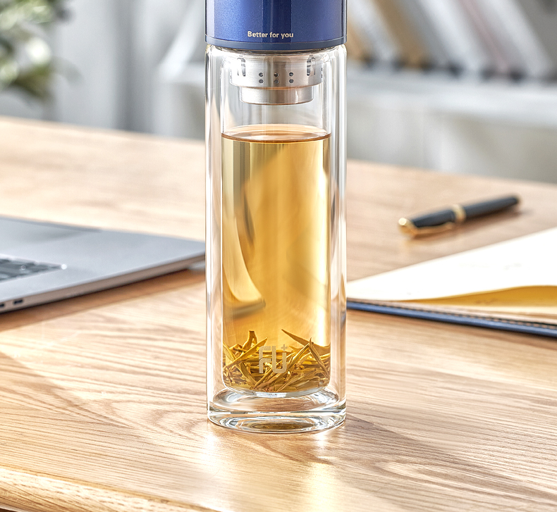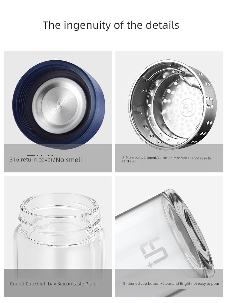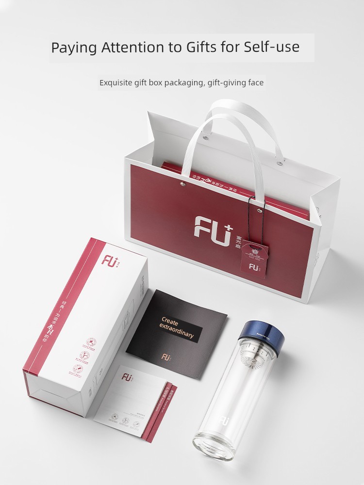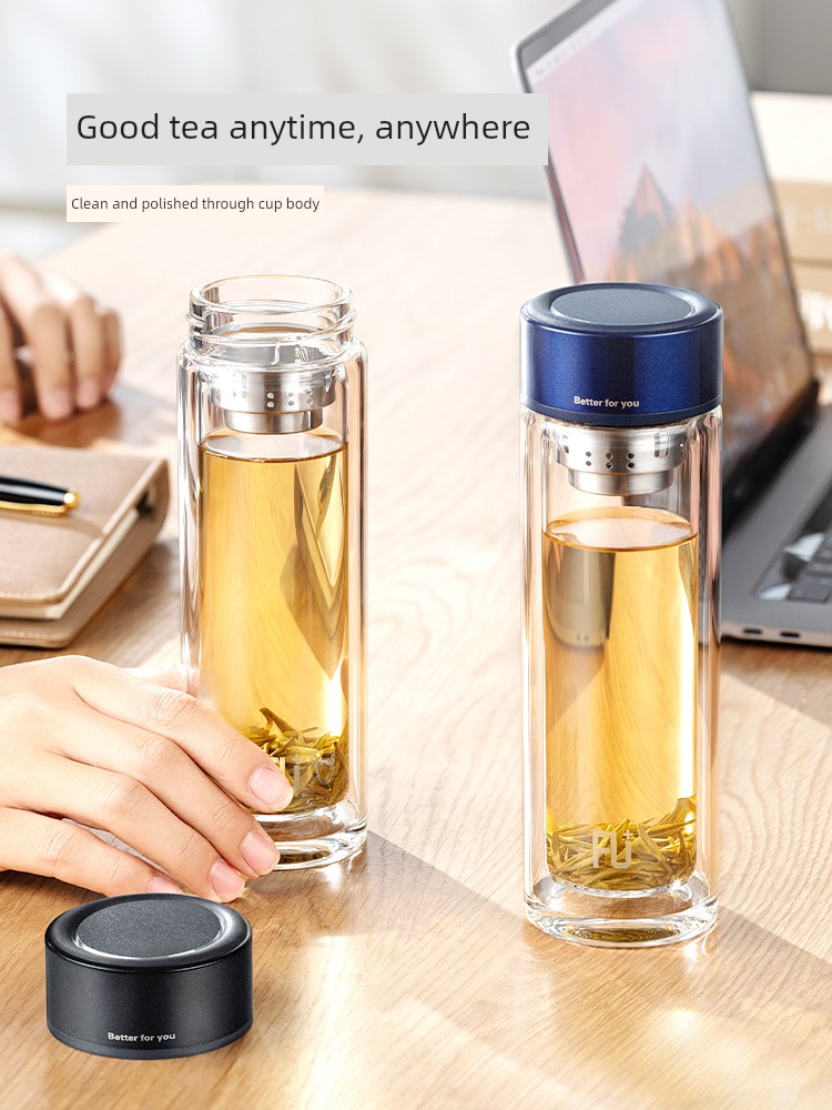 Fuguang Fu + Men Double Layer Glass Cup For Home High Temperature Resistant Office Tea Infuser Men High Grade Car Water Cup